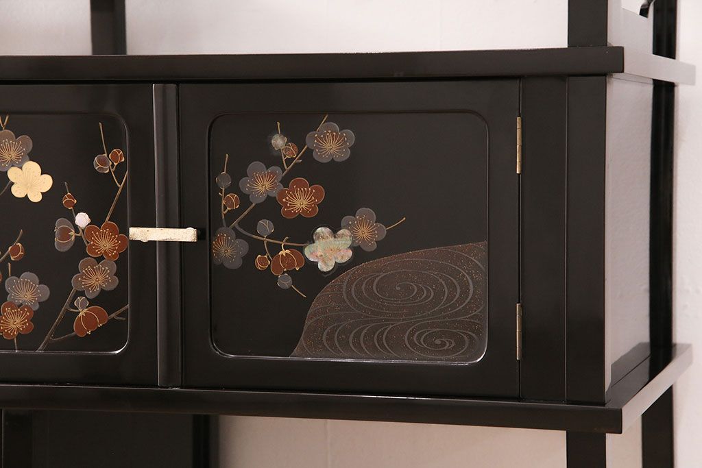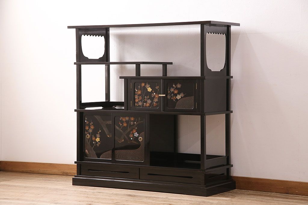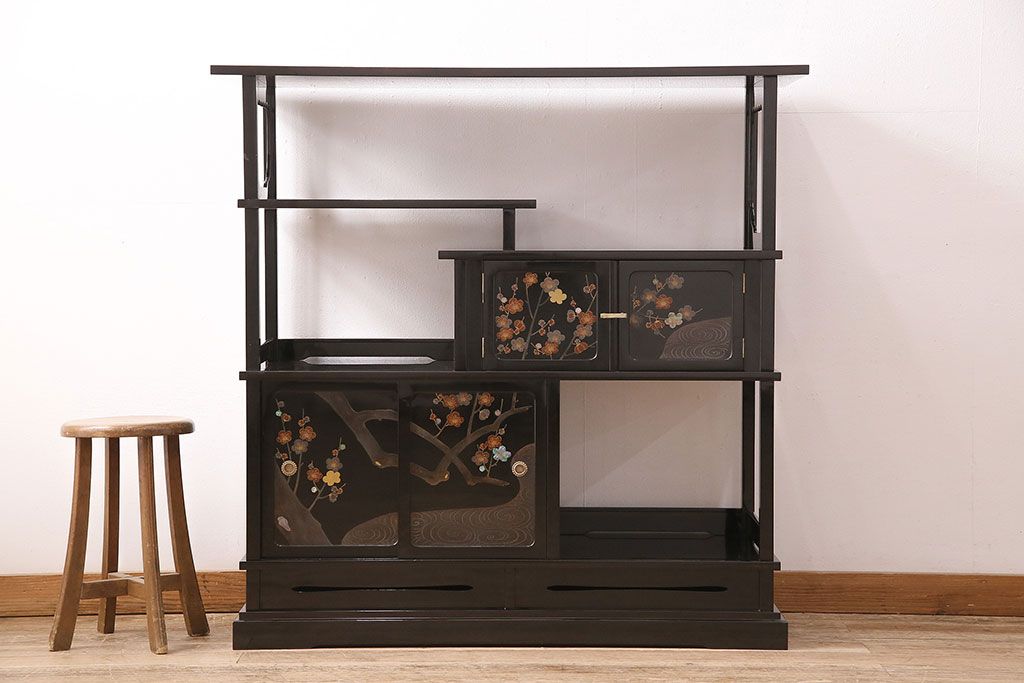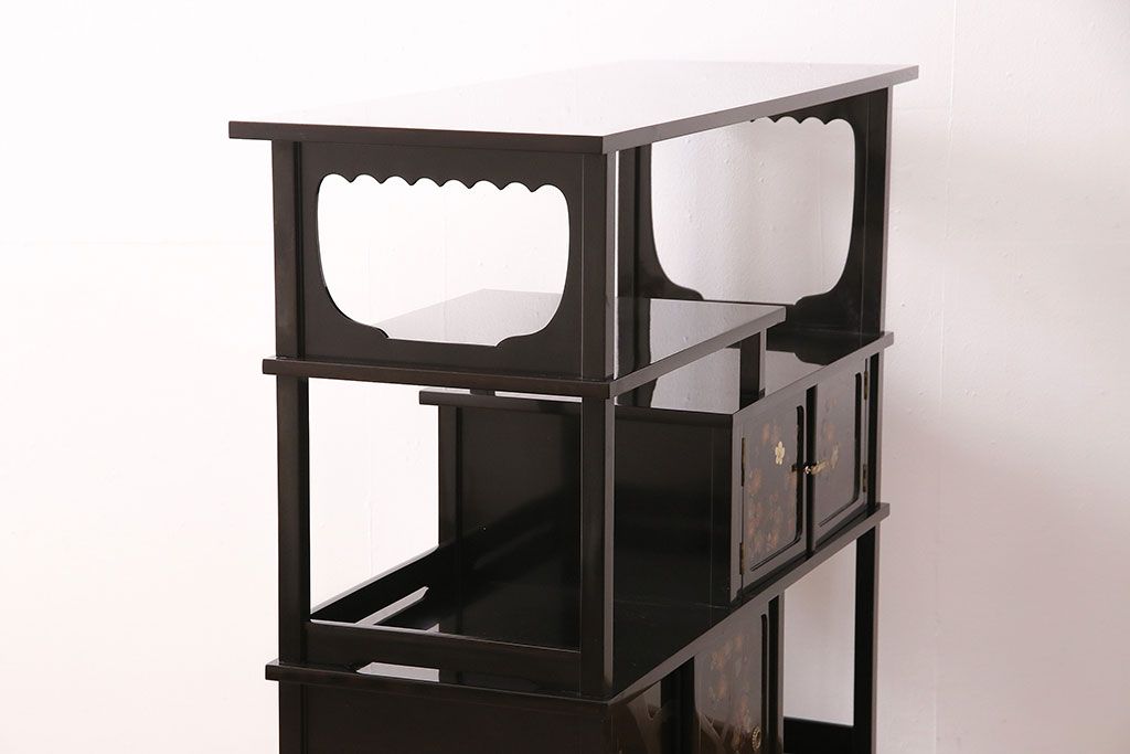 中古 輪島塗 和の趣溢れる上品な佇まいが魅力の飾り棚(茶棚、収納棚、違い棚)(R-048858)