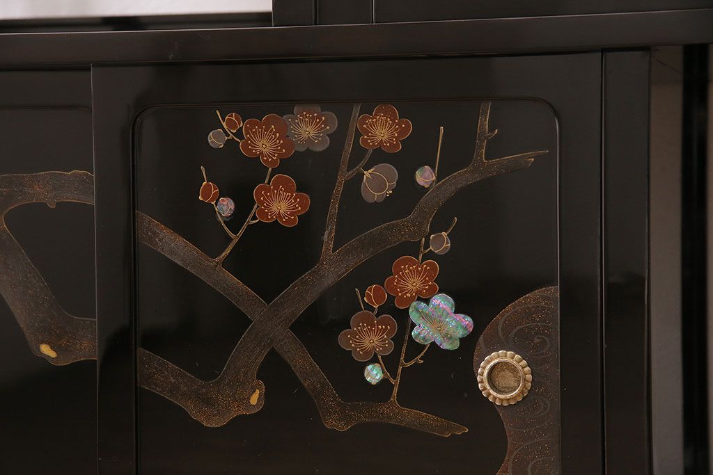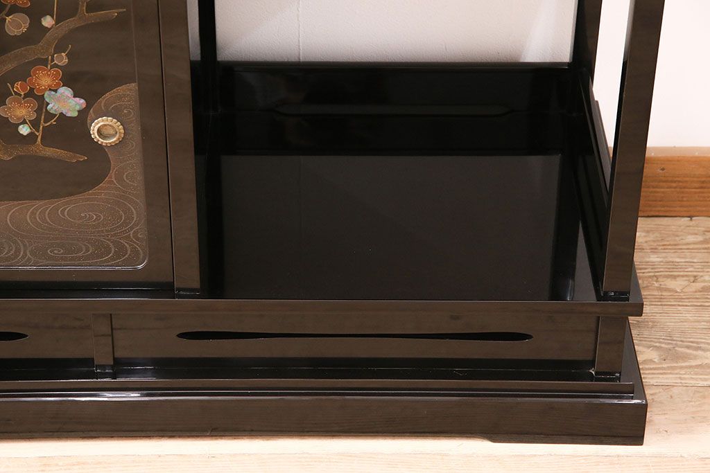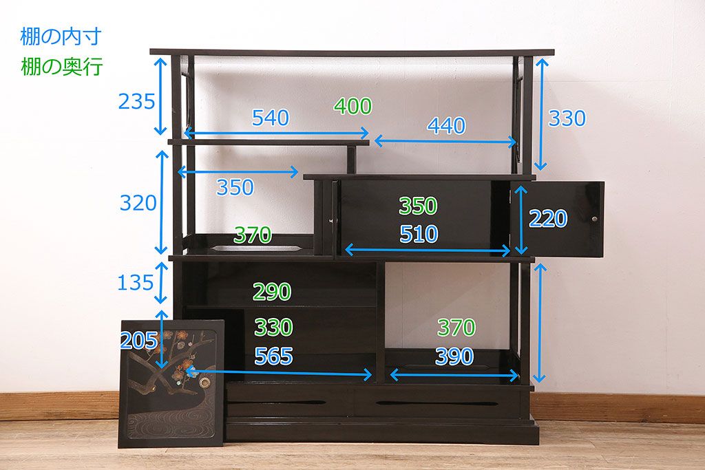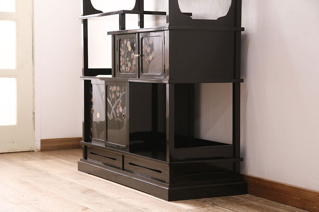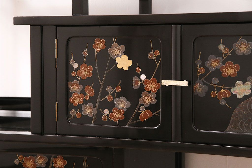 中古 輪島塗 和の趣溢れる上品な佇まいが魅力の飾り棚(茶棚、収納棚、違い棚)(R-048858)