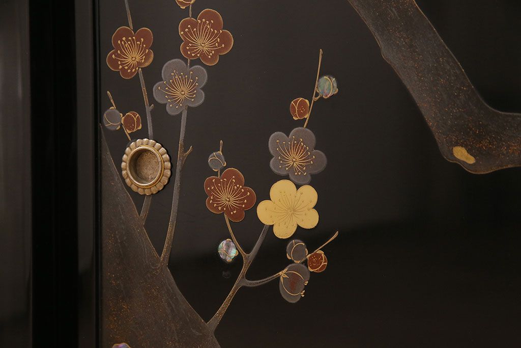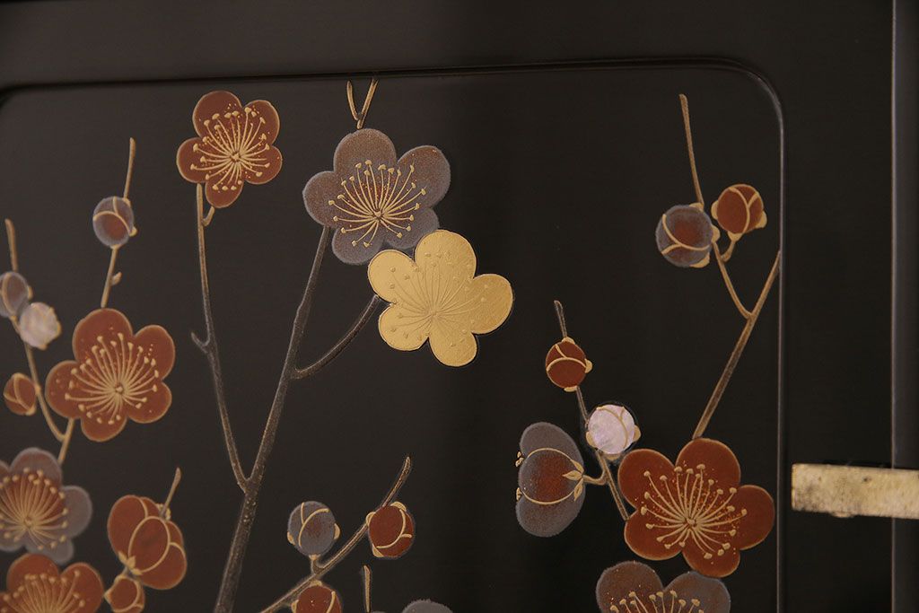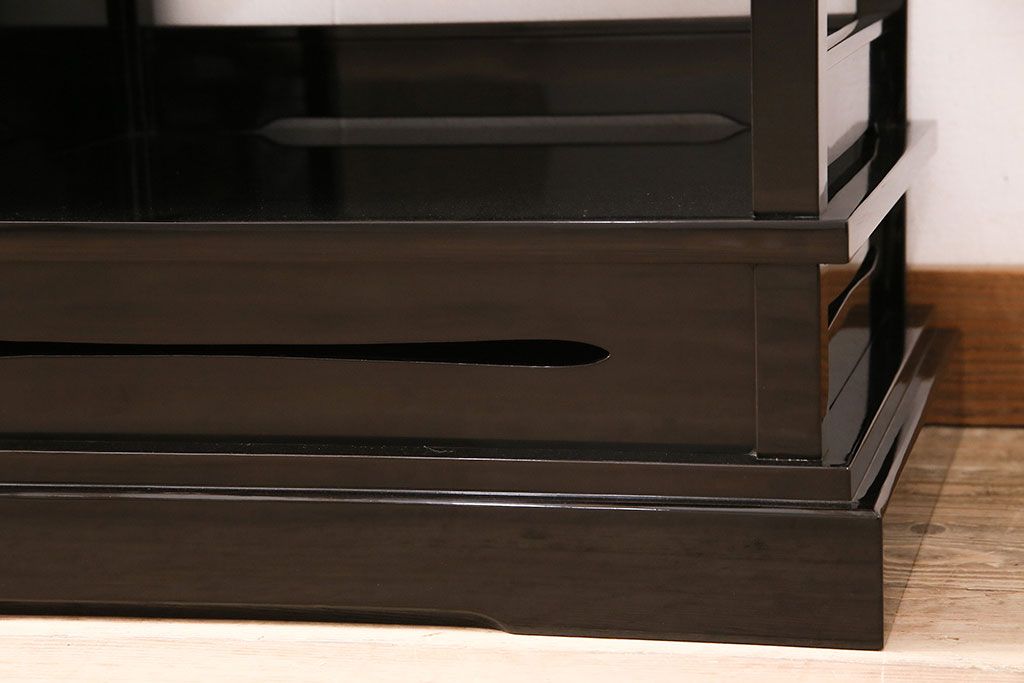 黒々とした艶が美しい輪島塗が飾り棚です。