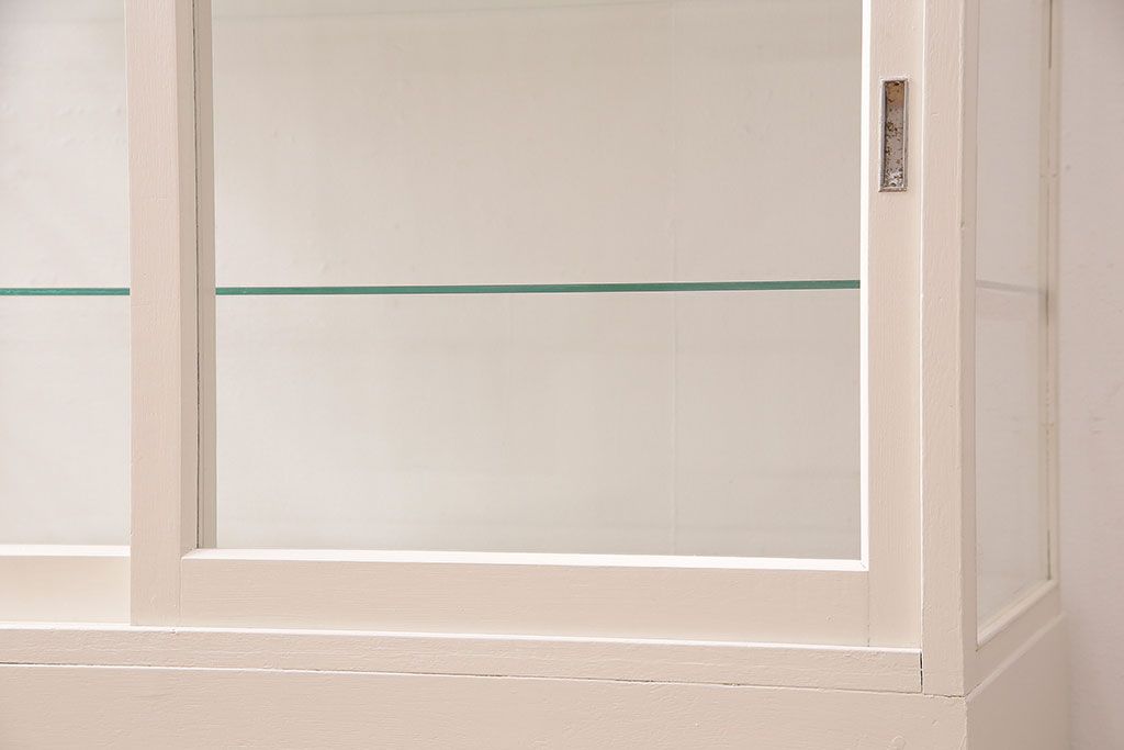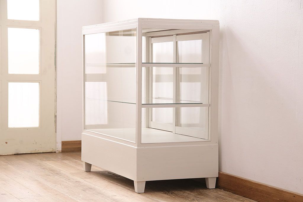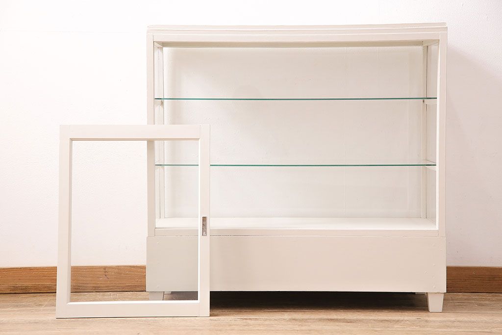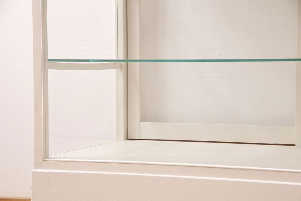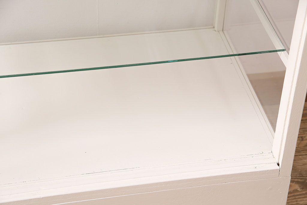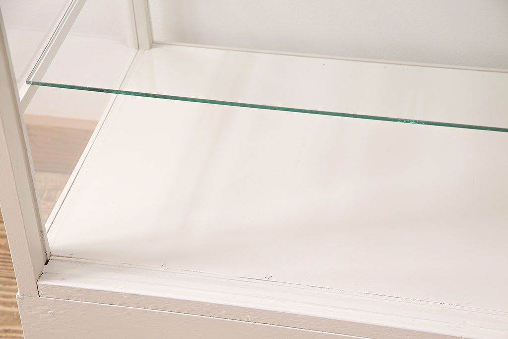 昭和中期のガラスケースをリペア&カスタム!棚板をガラス製へ変更。アンティークホワイトでペイント仕上げ。(ショーケース、陳列棚)