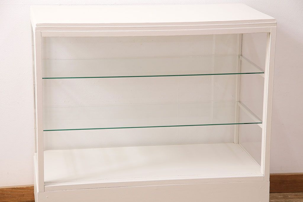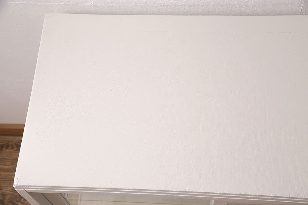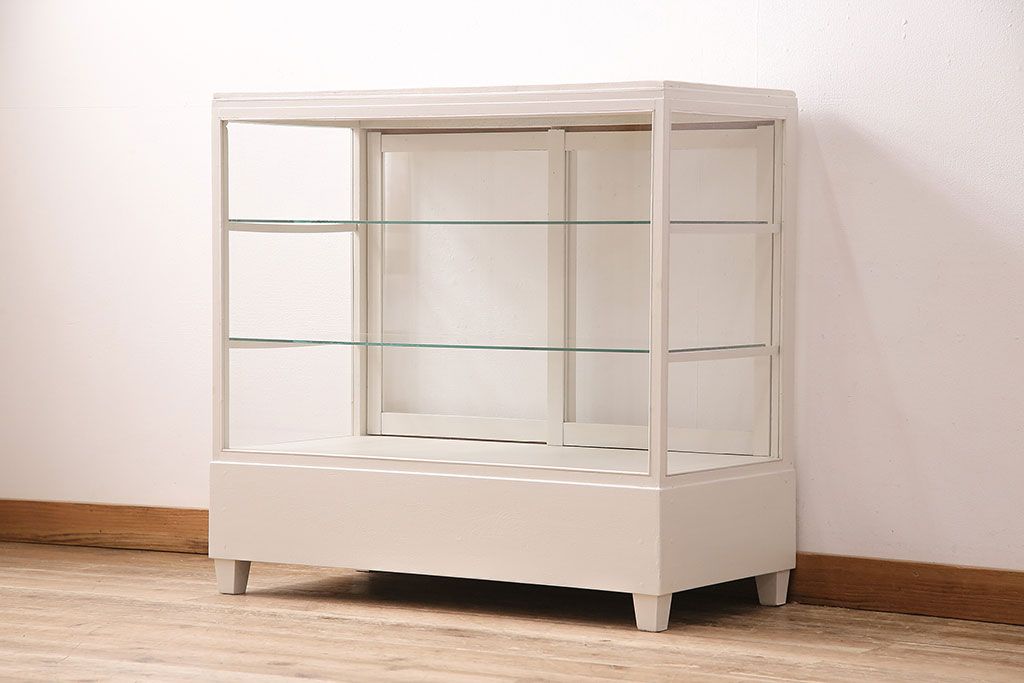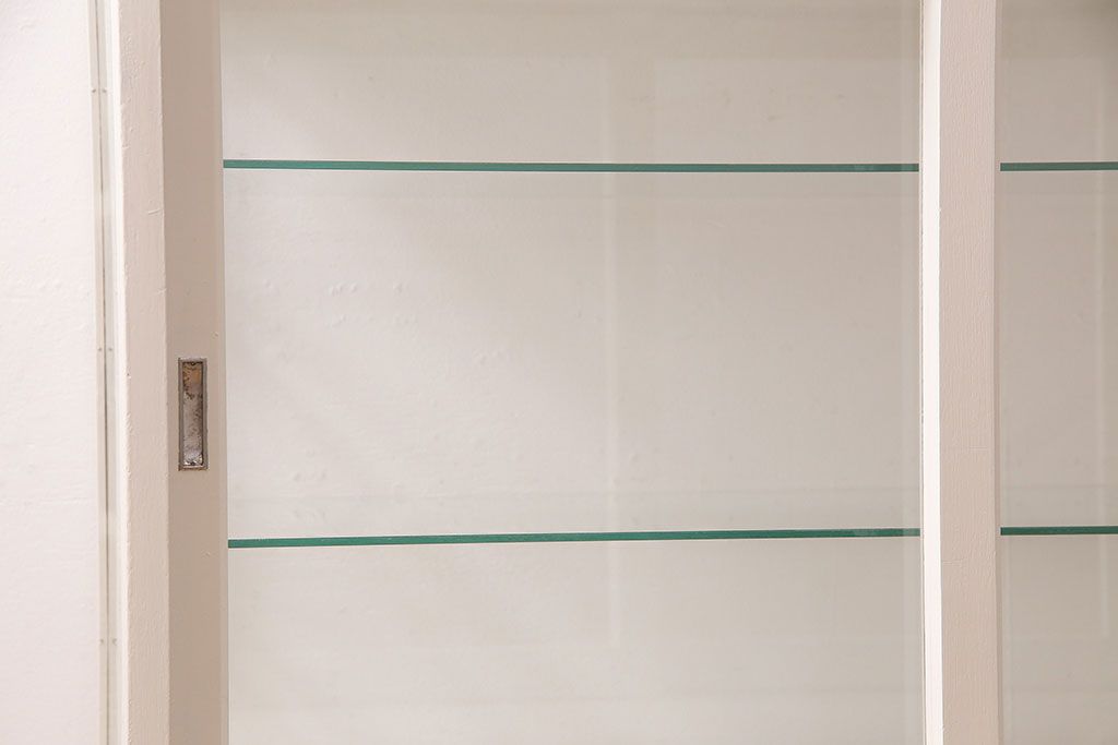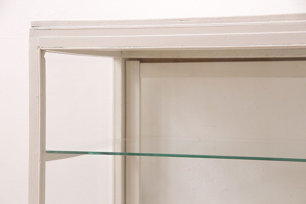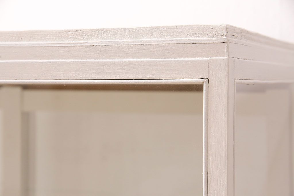 昭和中期のガラスケースをリペア&カスタム!棚板をガラス製へ変更。アンティークホワイトでペイント仕上げ。(ショーケース、陳列棚)