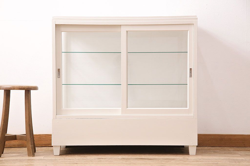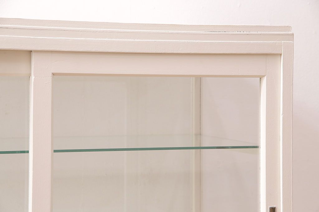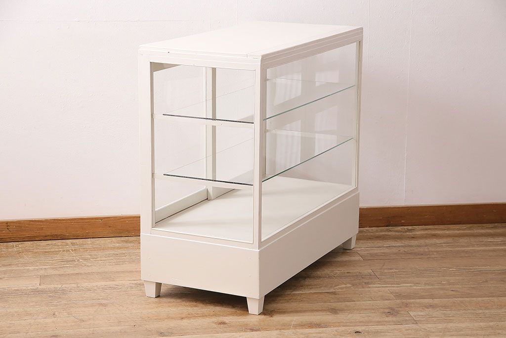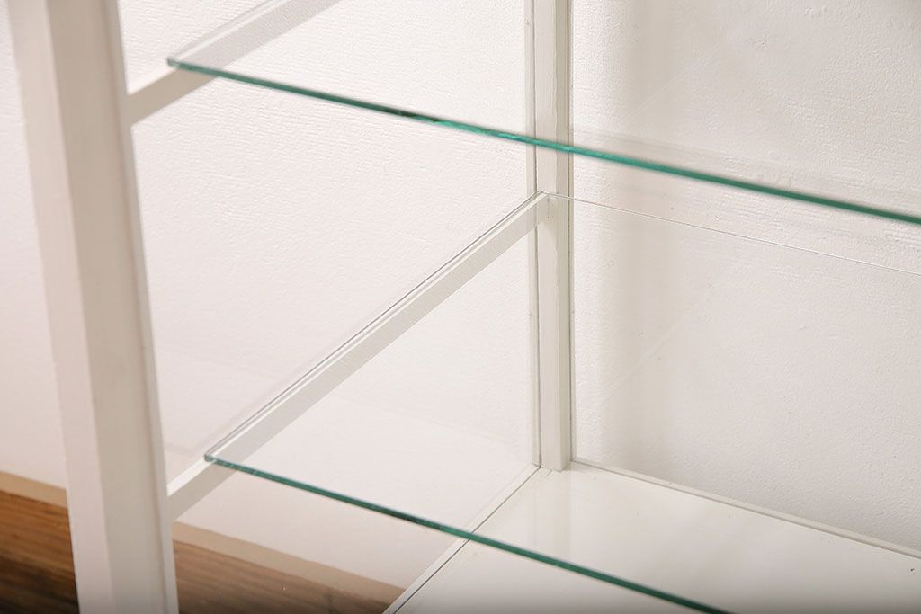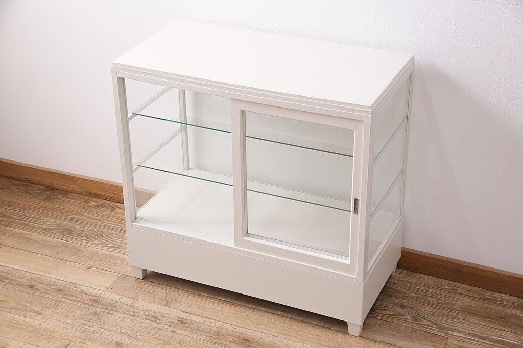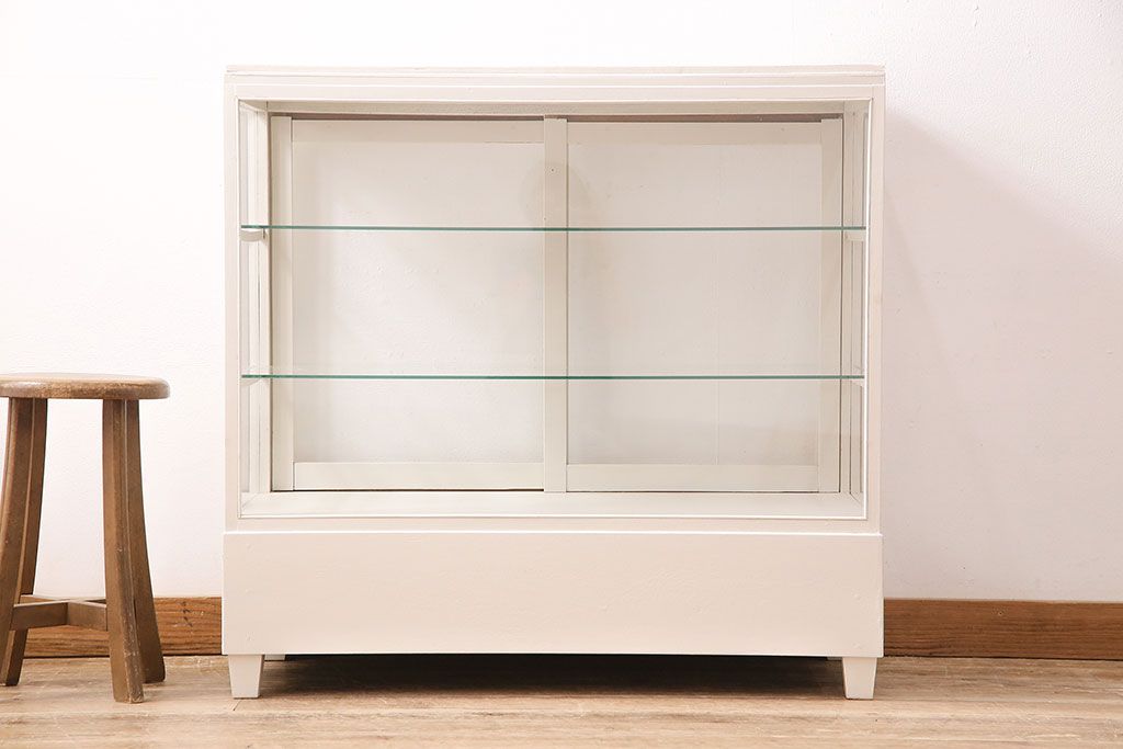 昭和中期のガラスケースをリペア&カスタム!棚板をガラス製へ変更。アンティークホワイトでペイント仕上げ。(ショーケース、陳列棚)