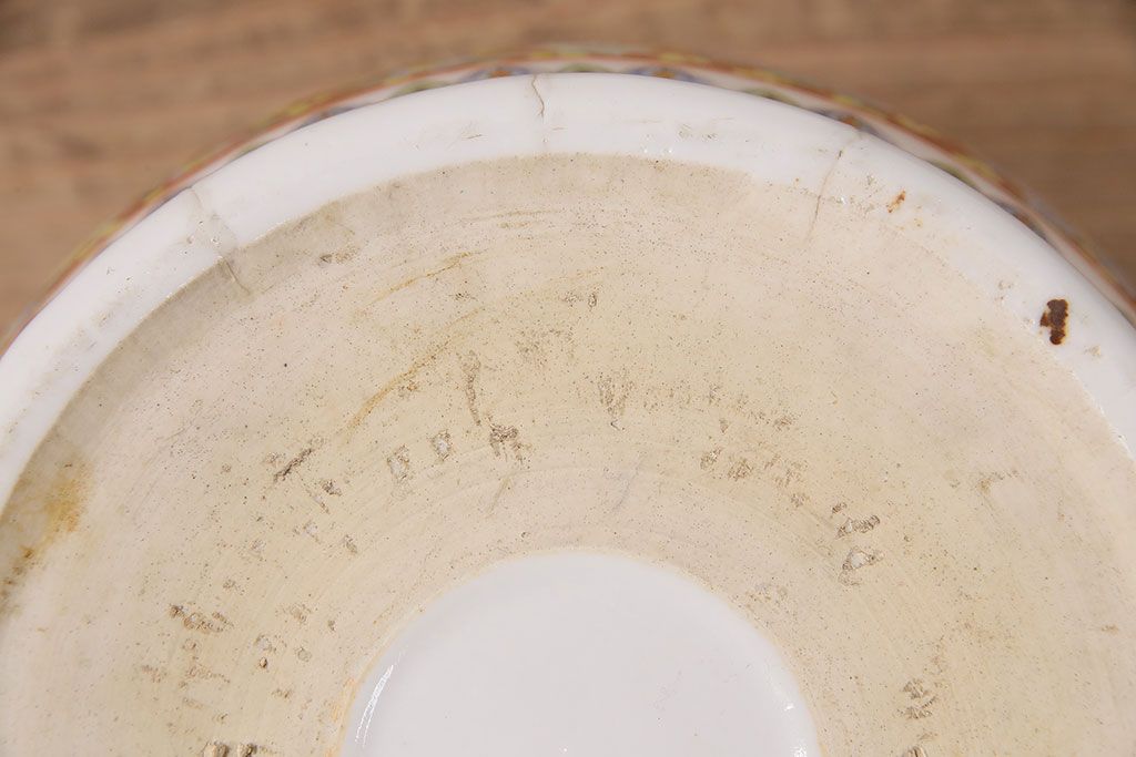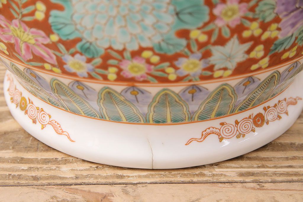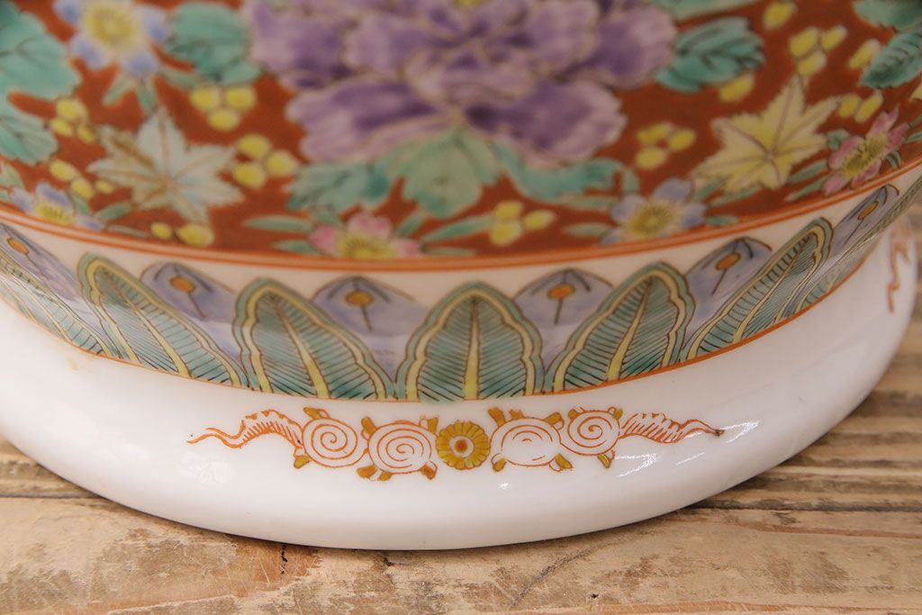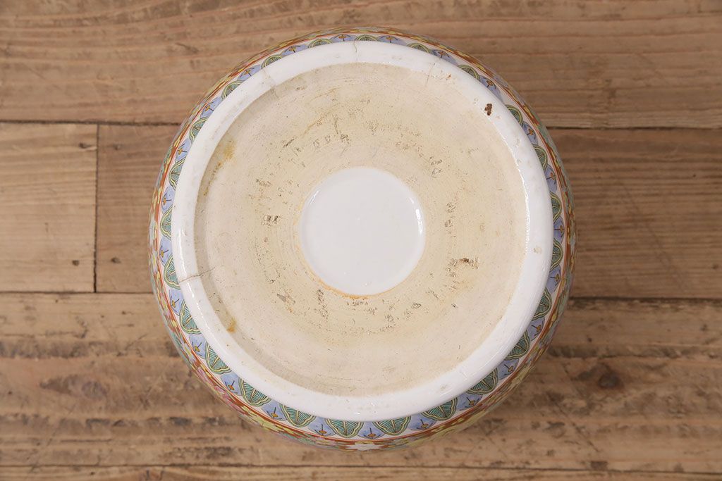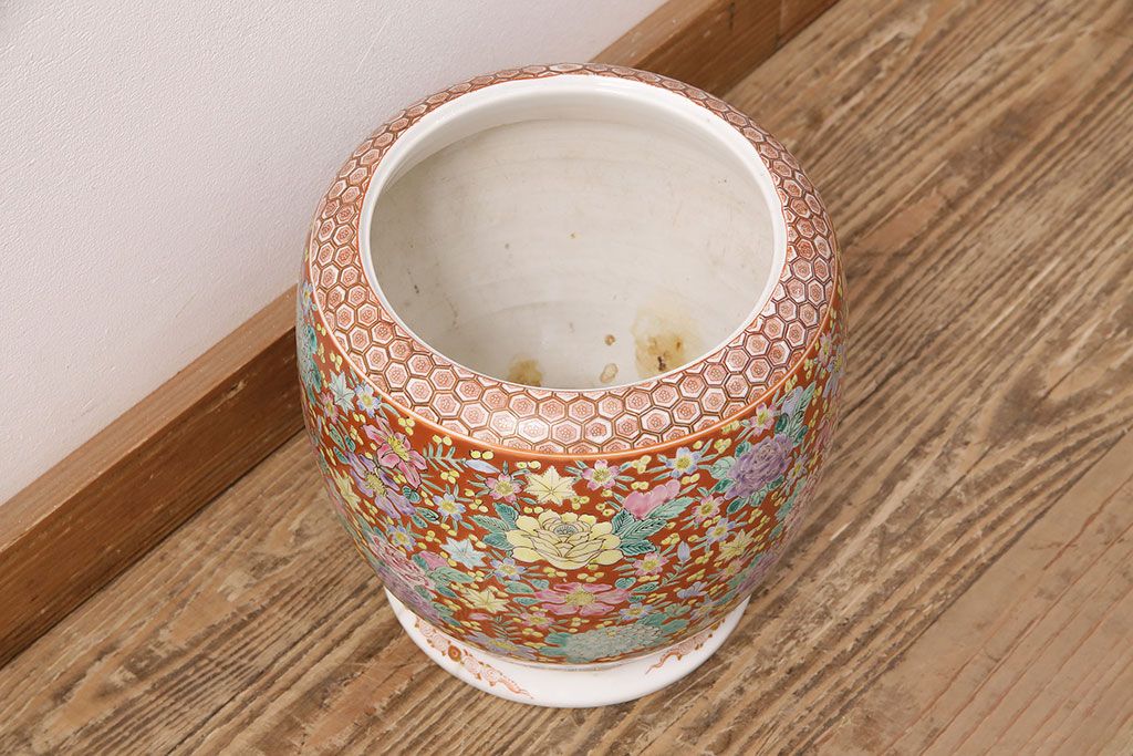 アンティーク雑貨 多彩な花尽くしの図が華やかな十錦手の瀬戸火鉢(鉢カバー)(R-048896)