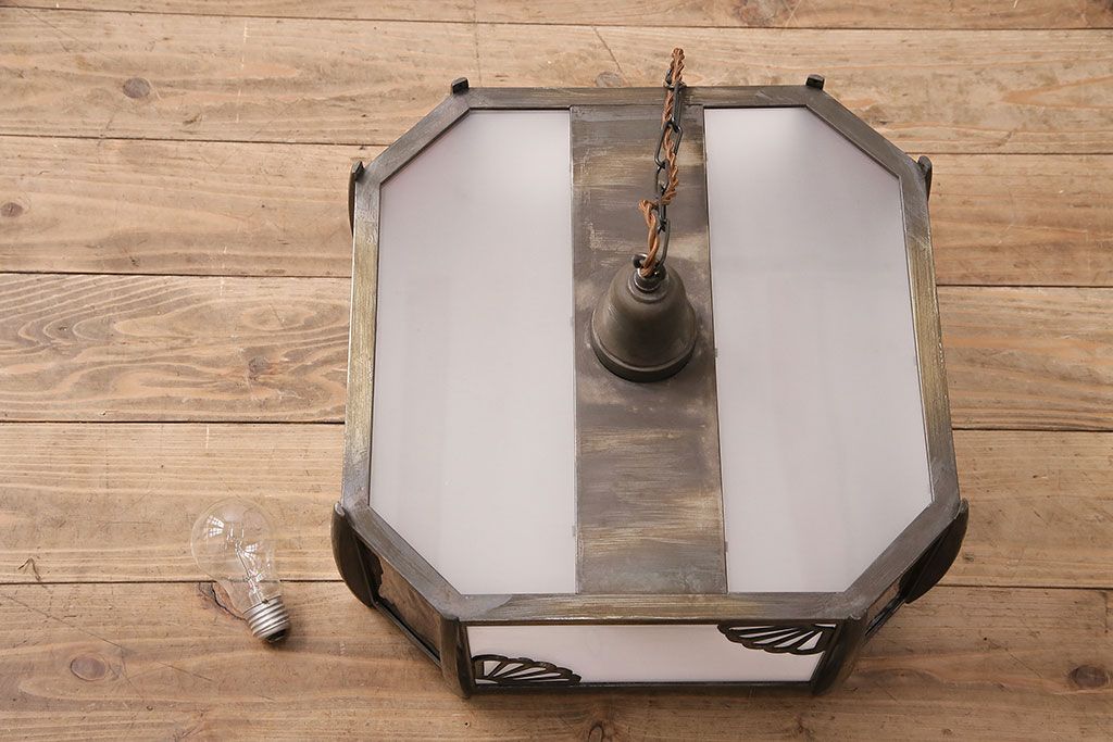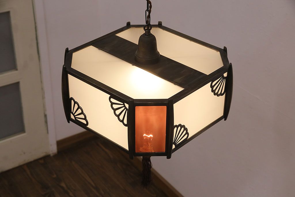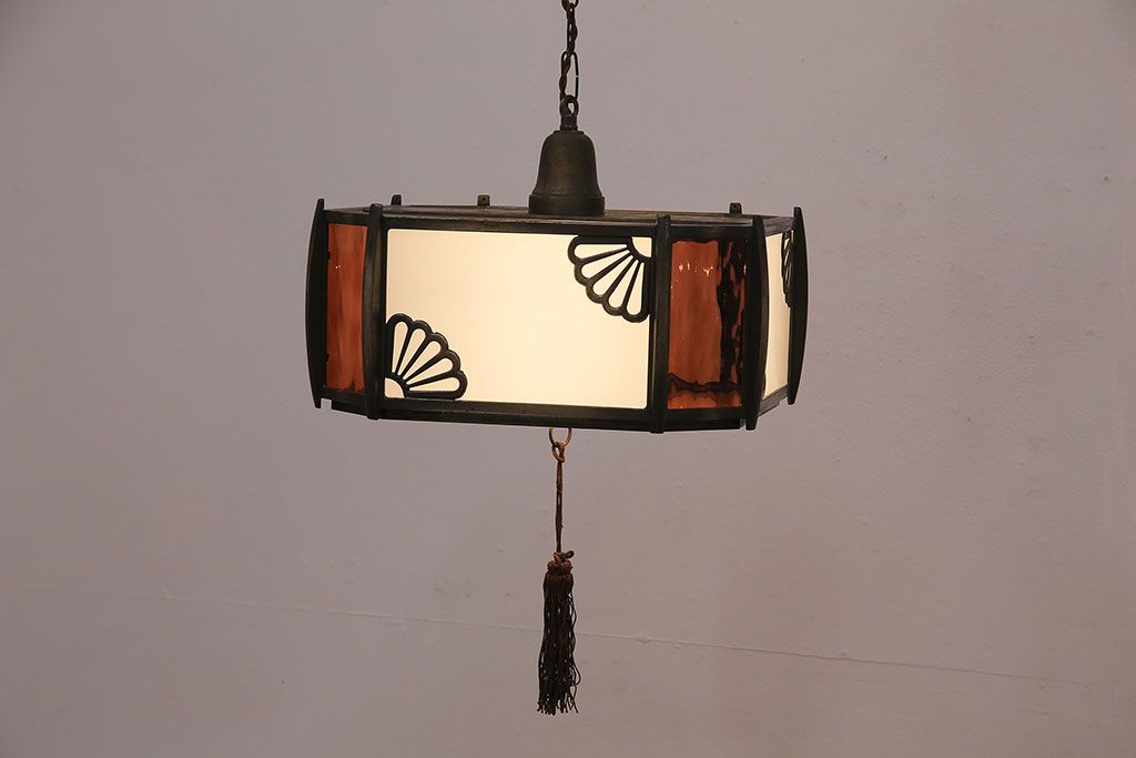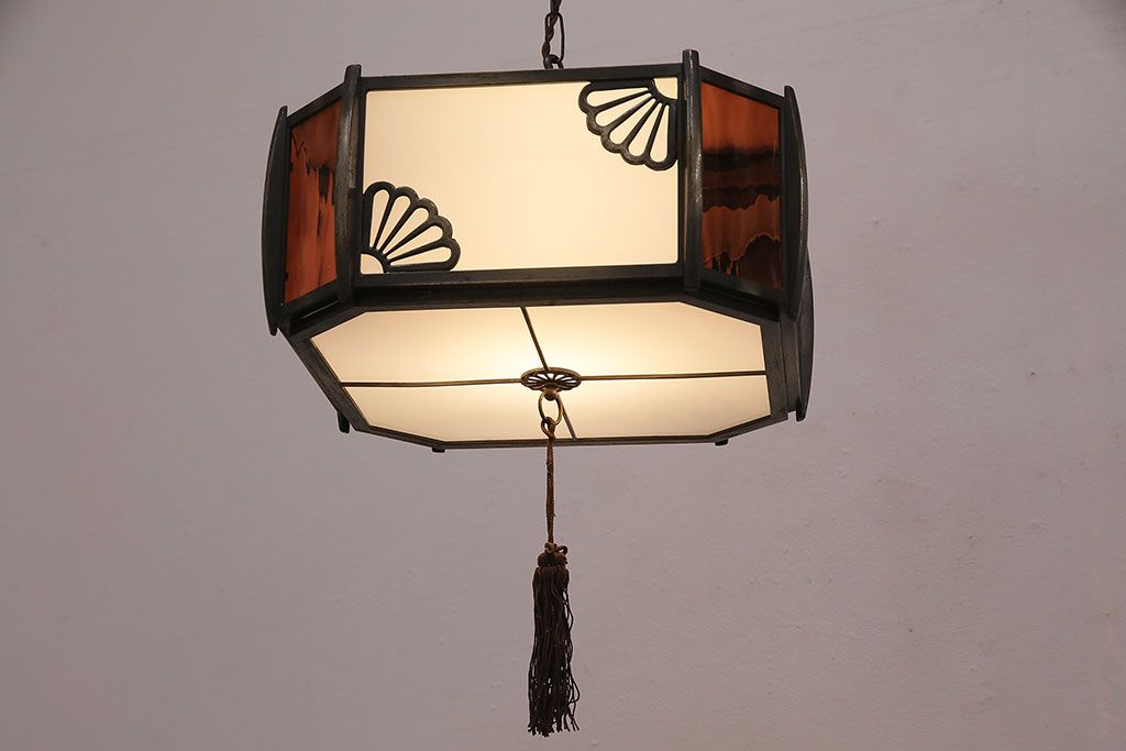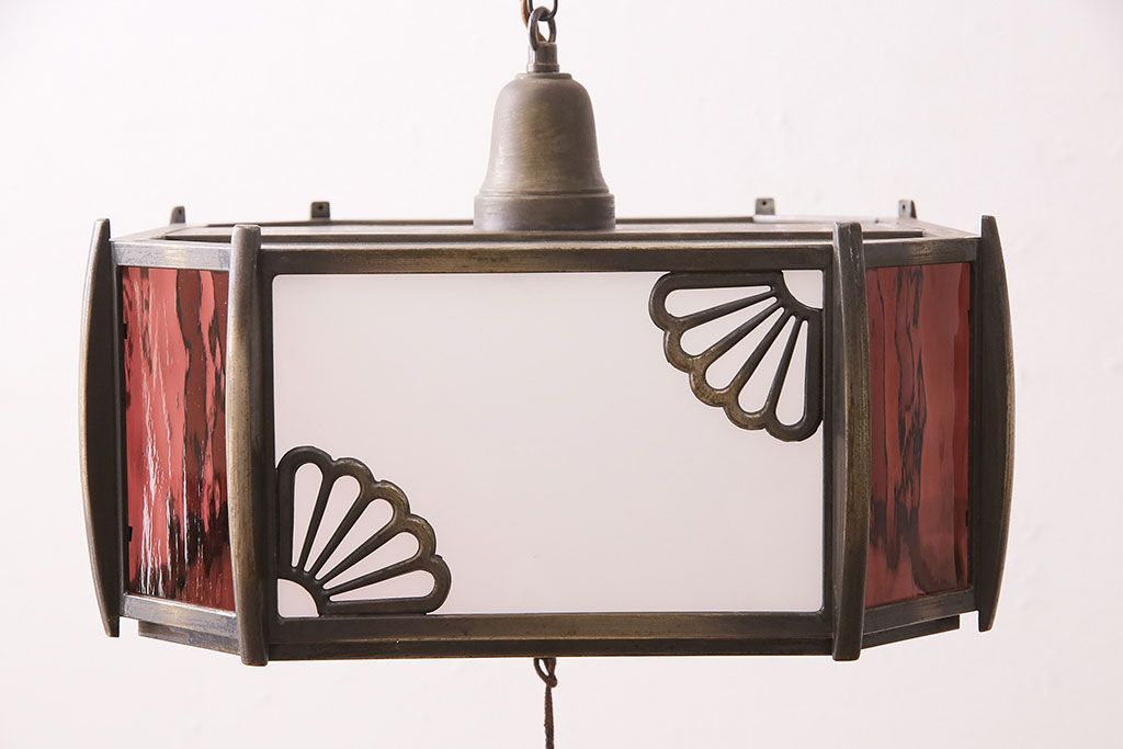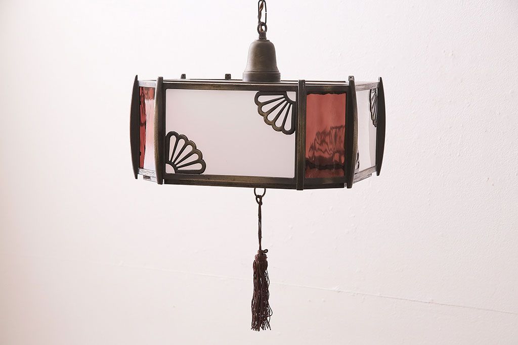 照明・ランプ > 昭和レトロ 特大 レトロな空間づくりにおすすめ!色ガラス入り天井照明(吊り下げ照明、ペンダントライト)(R-048868)