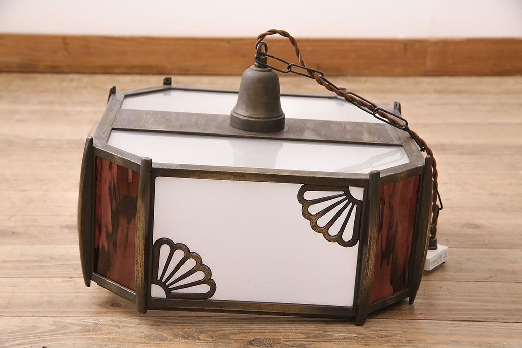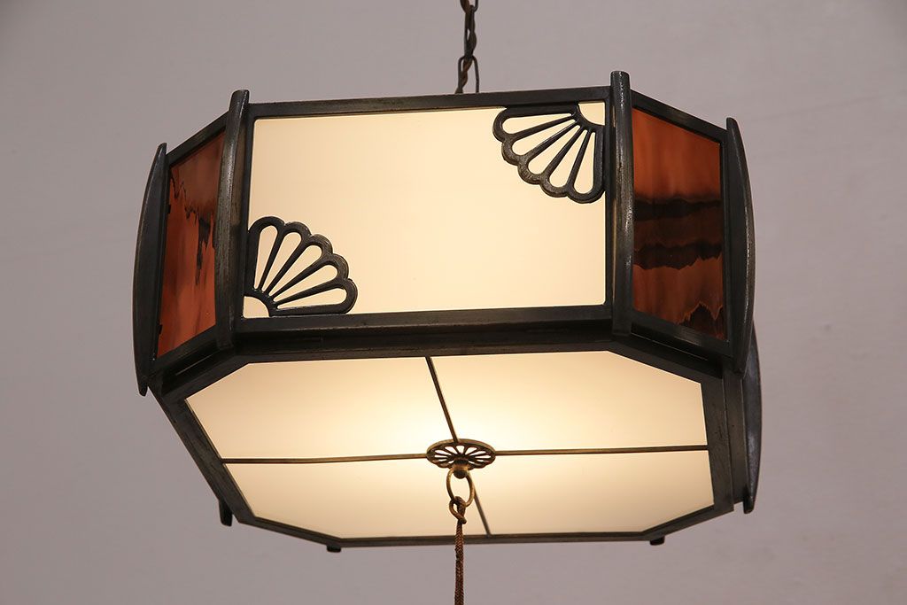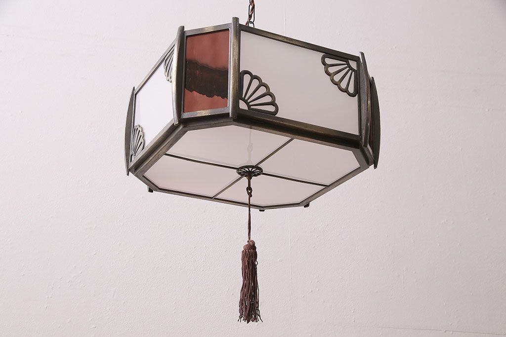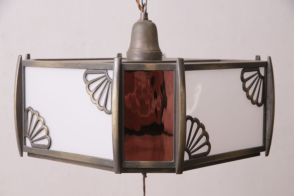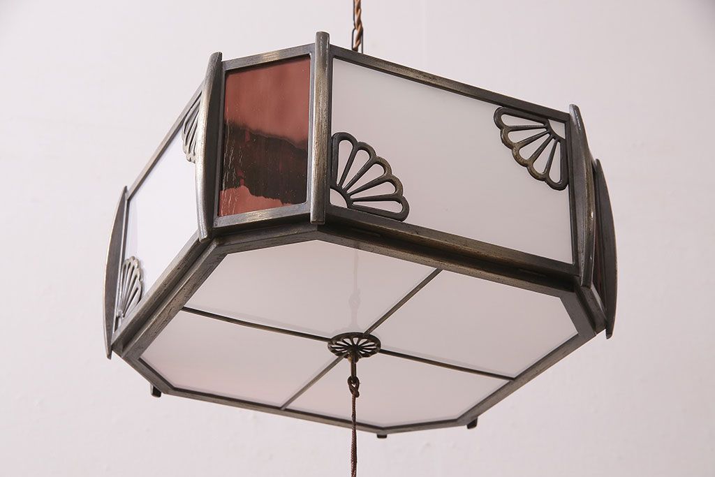 昭和レトロ 特大 レトロな空間づくりにおすすめ!色ガラス入り天井照明(吊り下げ照明、ペンダントライト)(R-048868)