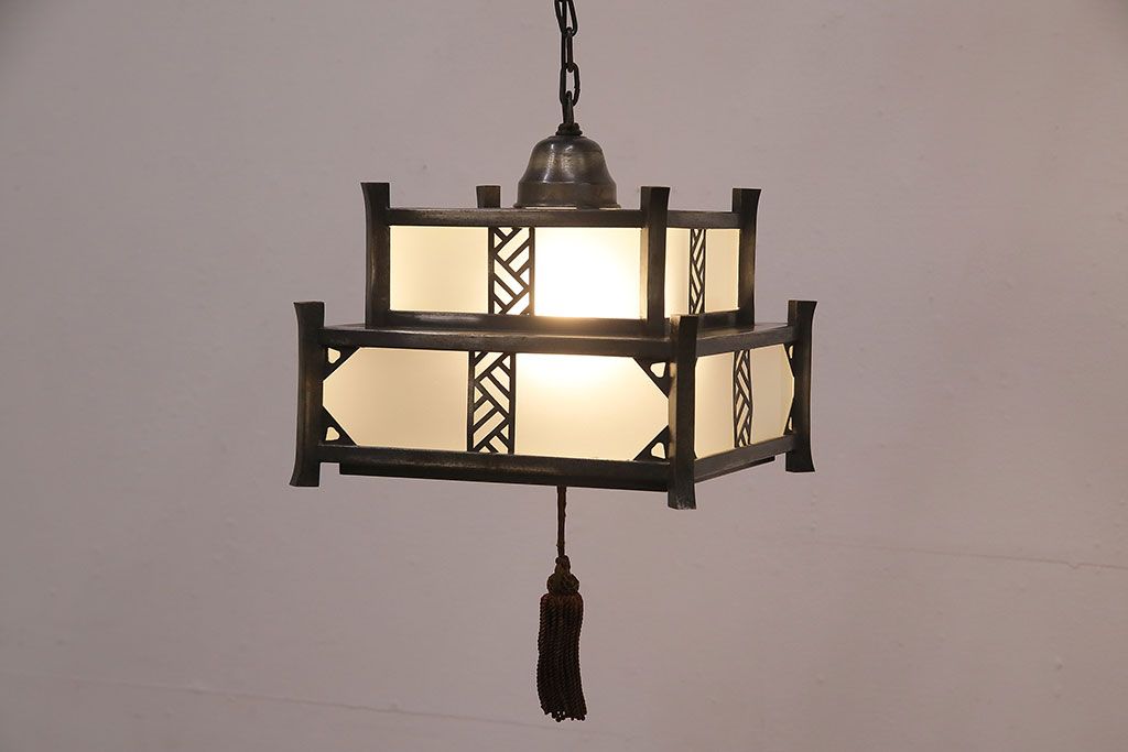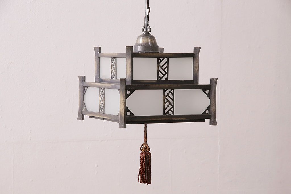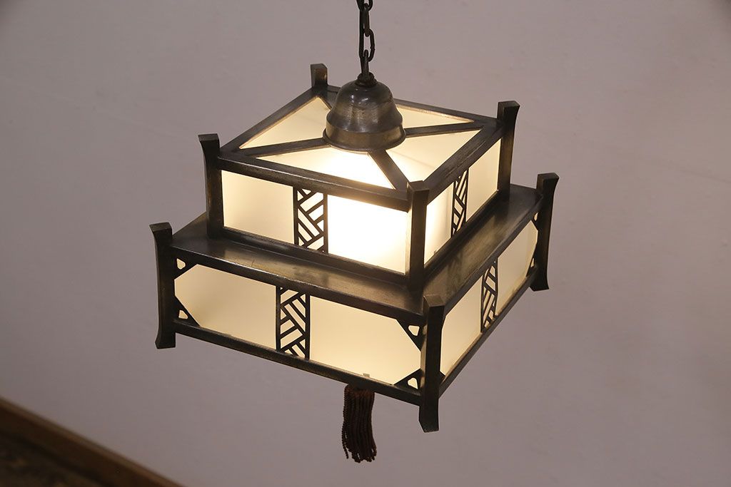 和製アンティーク 昭和初期 シャビーな質感がかっこいい!ノスタルジックな雰囲気が漂う天井照明(吊り下げ照明、ペンダントライト、シーリングライト)(R-048870)です。
