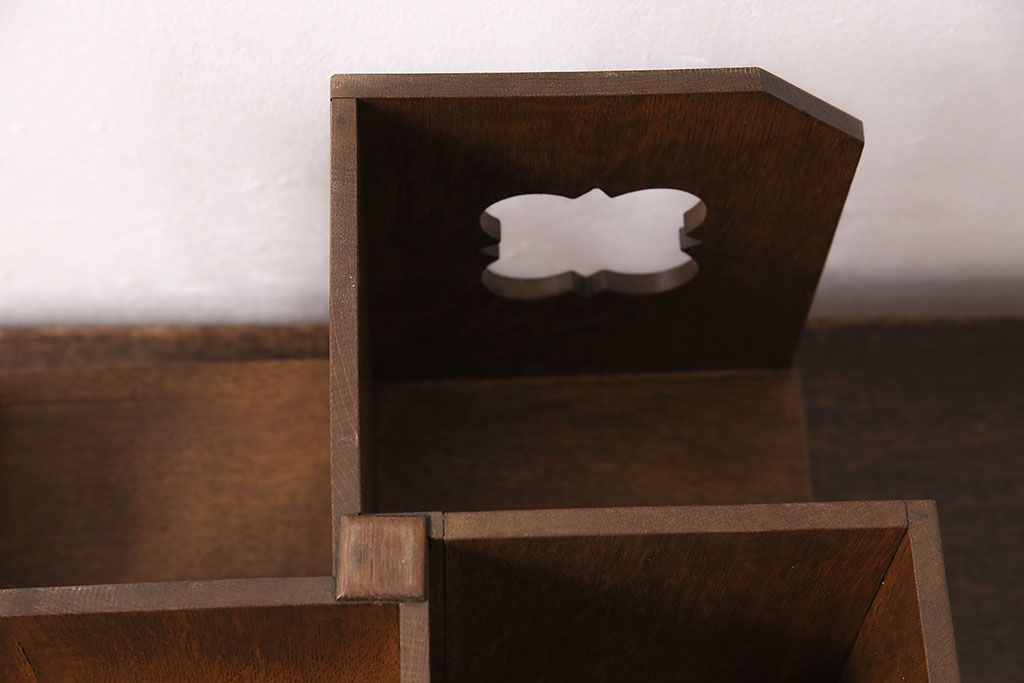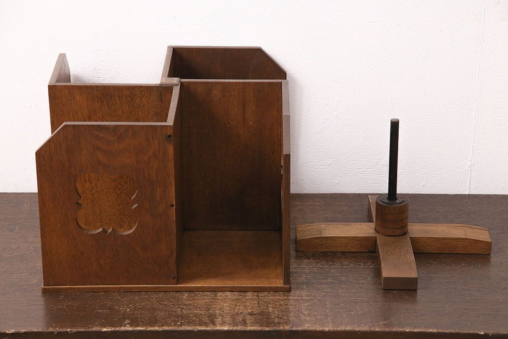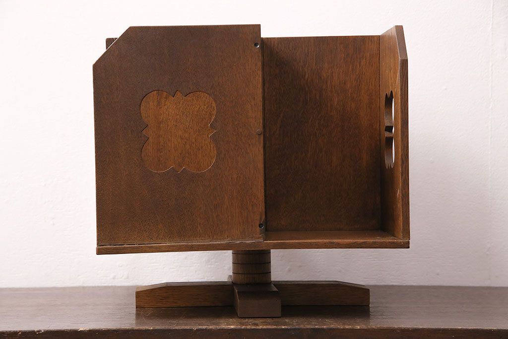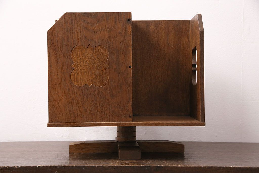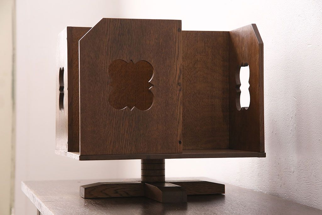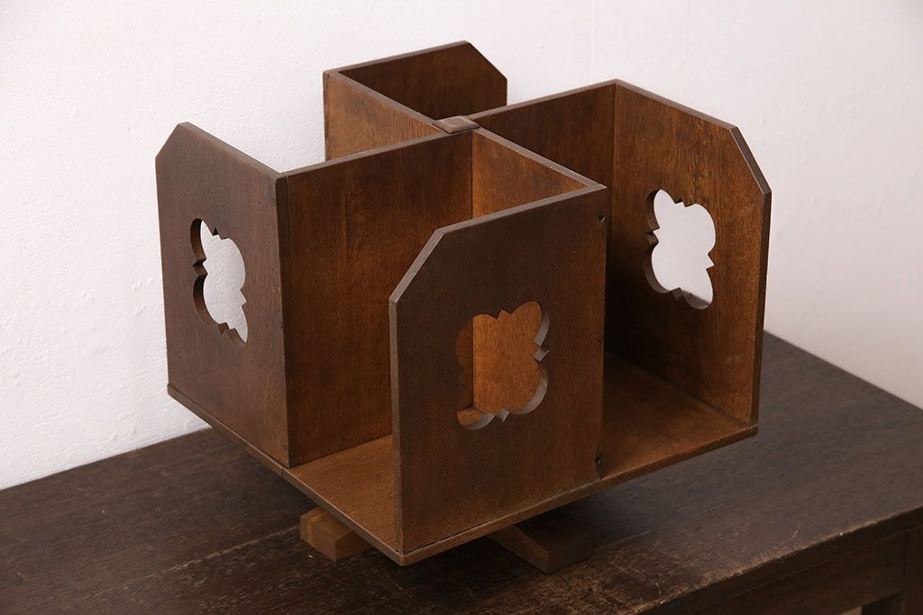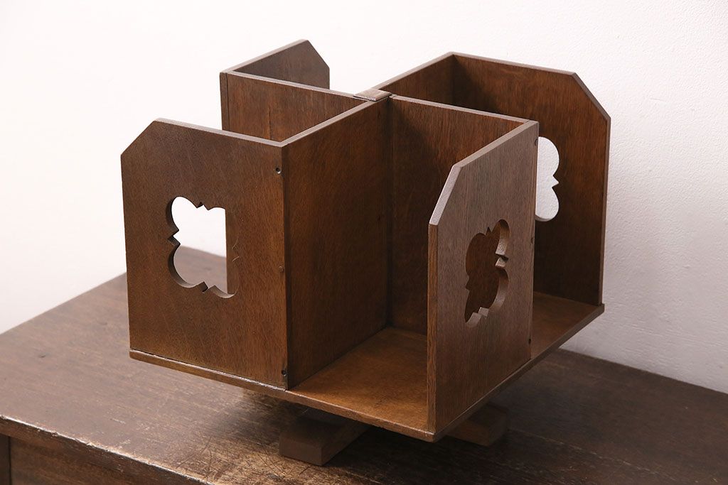 小物収納・トランク > 和製アンティーク ナラ材 激レア!可愛らしいデザインが魅力のリボルビングブックスタンド(本立て)(R-048891)