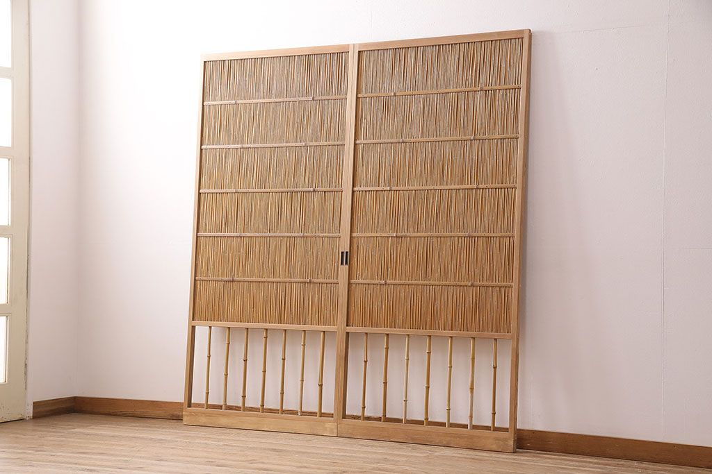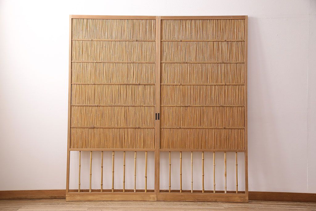 ドア・建具> 引き戸 > 昭和中期の簾戸2枚をリペア&カスタム!設置場所に合わせてリサイズ。クリアワックス仕上げ。(建具、簀戸、葭戸、夏障子、すど、葦戸)