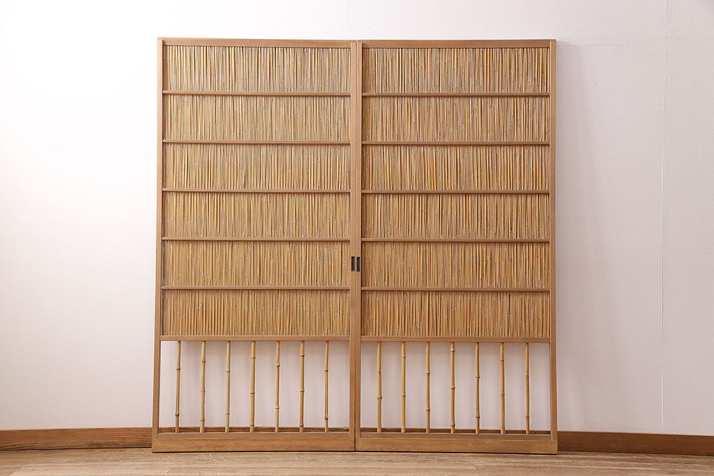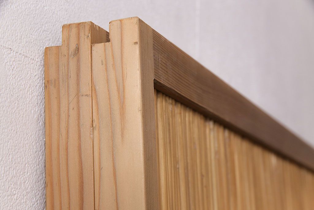 ドア・建具> 簾戸・夏戸・網戸 > 昭和中期の簾戸2枚をリペア&カスタム!設置場所に合わせてリサイズ。クリアワックス仕上げ。(建具、簀戸、葭戸、夏障子、すど、葦戸)