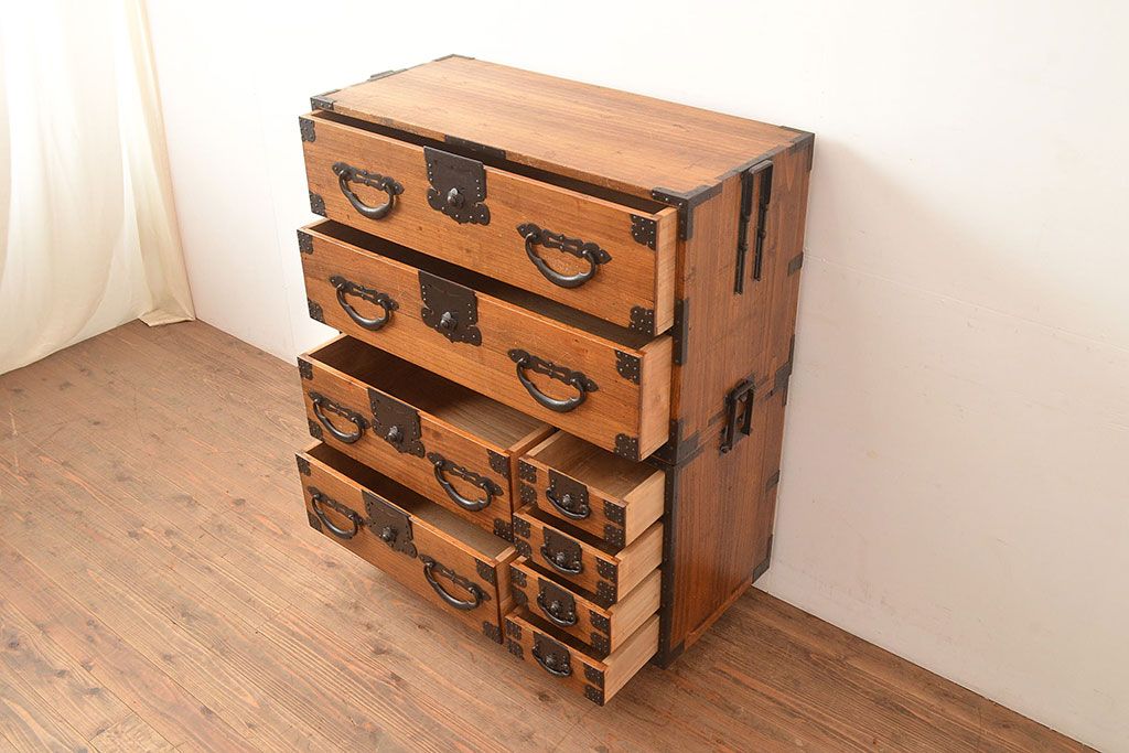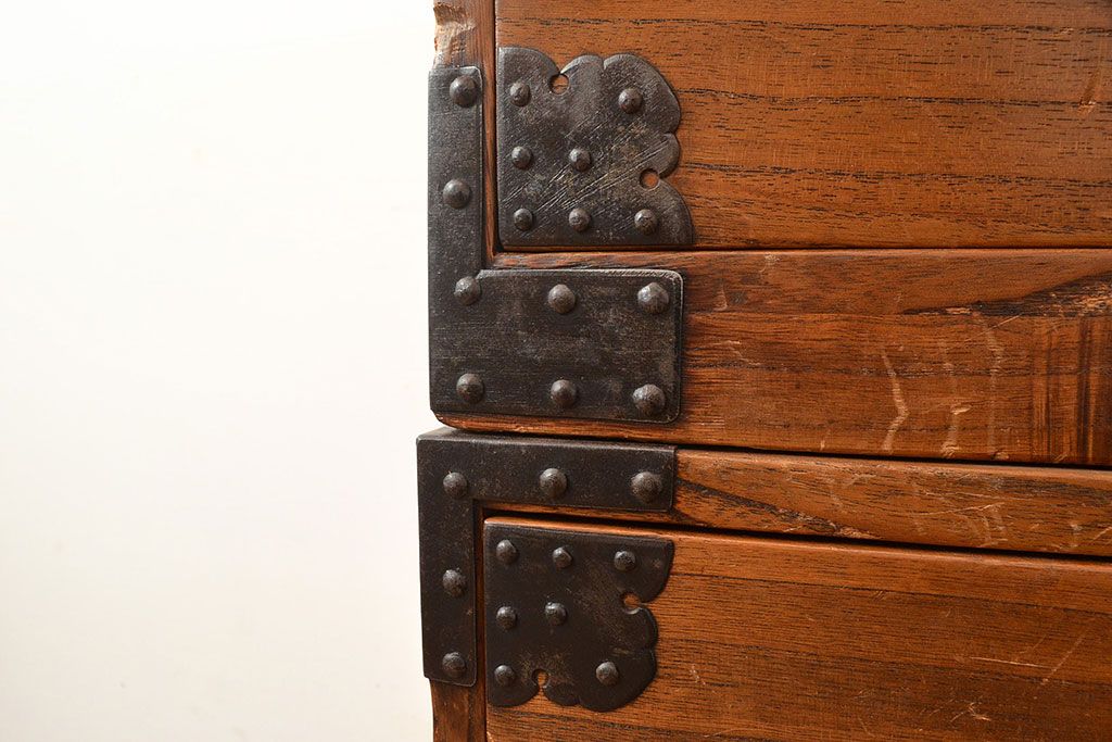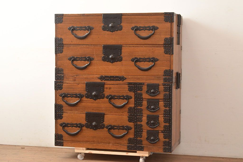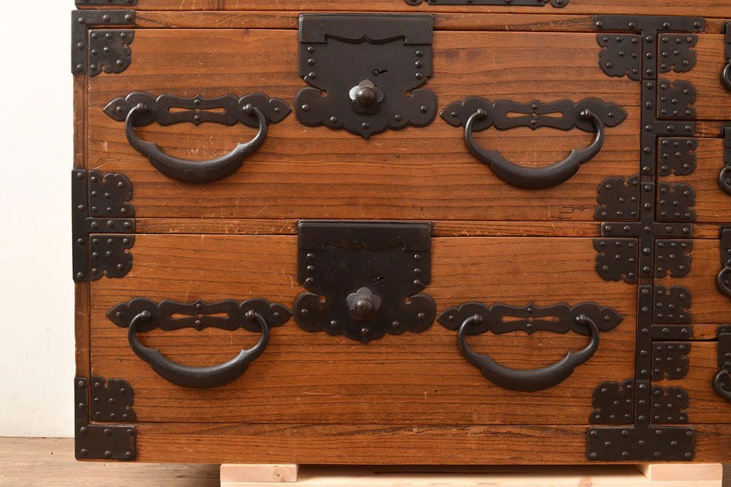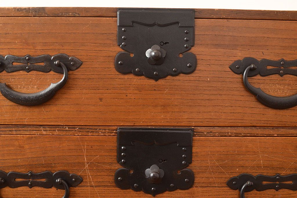 和箪笥 > 和製アンティーク 総桐材 立派な金具が目を引く上手物の重ね箪笥(衣装箪笥、時代箪笥、収納箪笥、和タンス)(R-048148)
