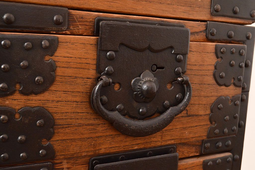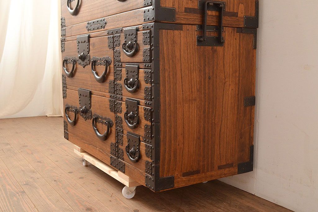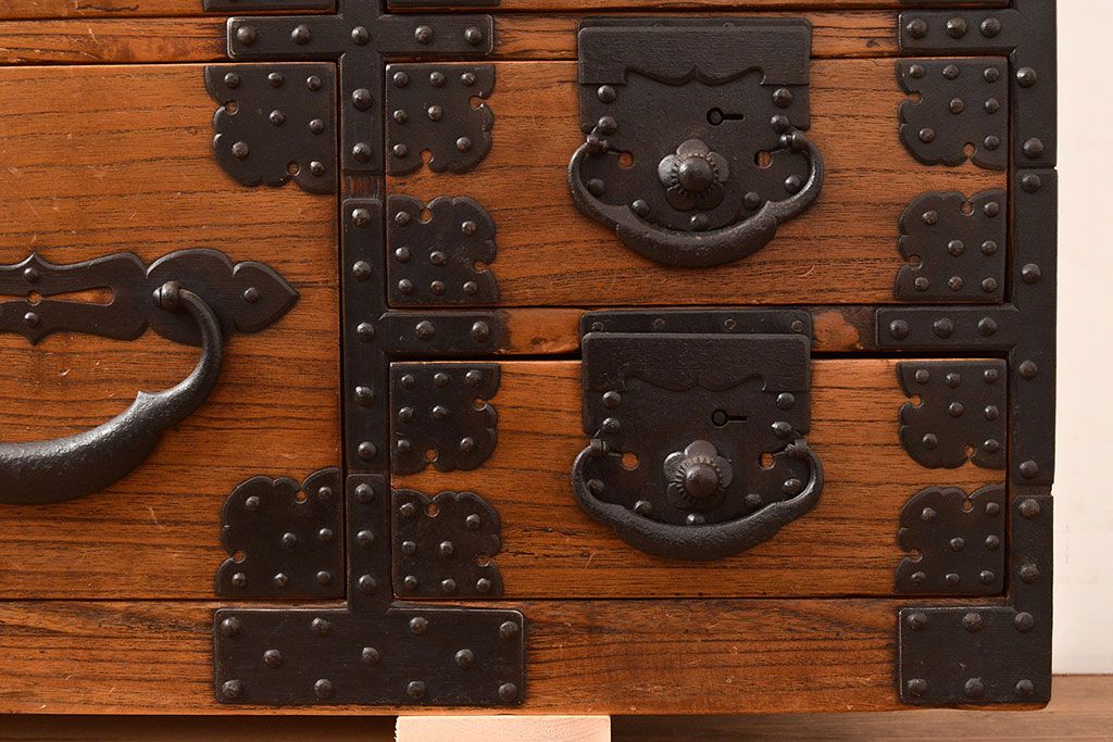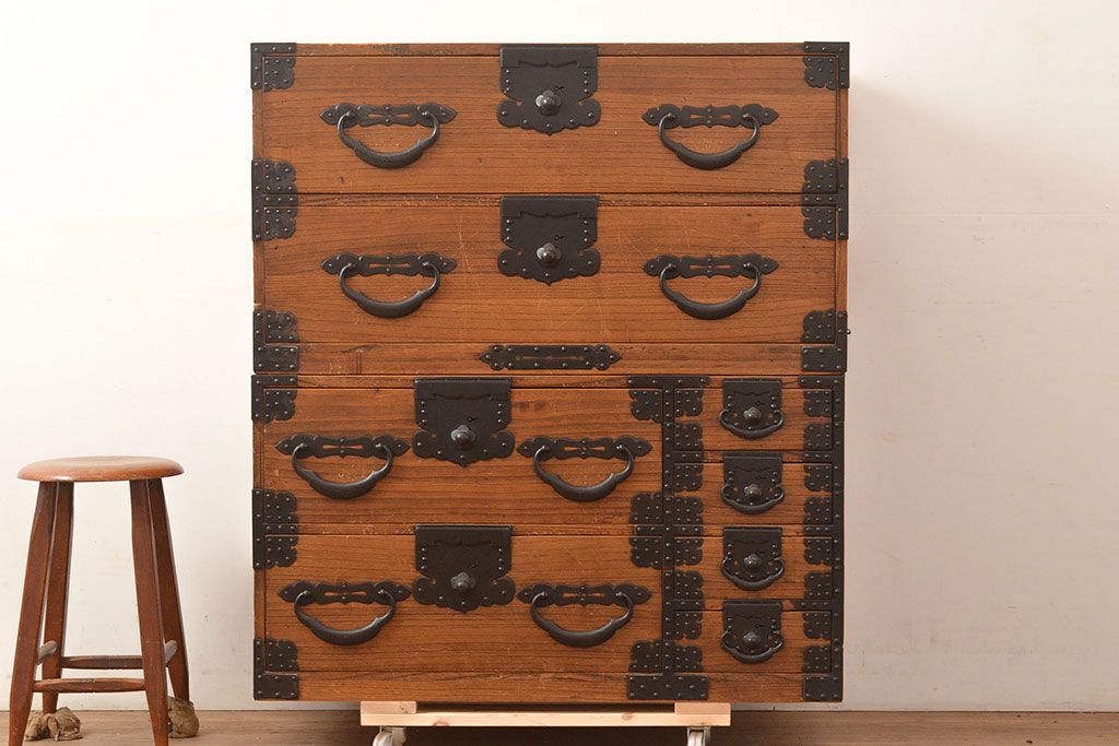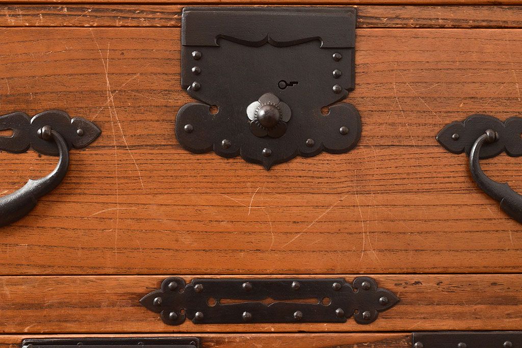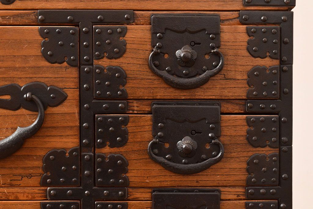 和箪笥 > 和製アンティーク 総桐材 立派な金具が目を引く上手物の重ね箪笥(衣装箪笥、時代箪笥、収納箪笥、和タンス)(R-048148)