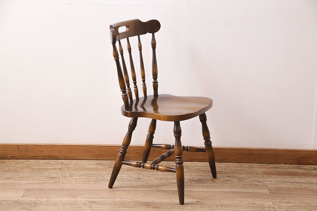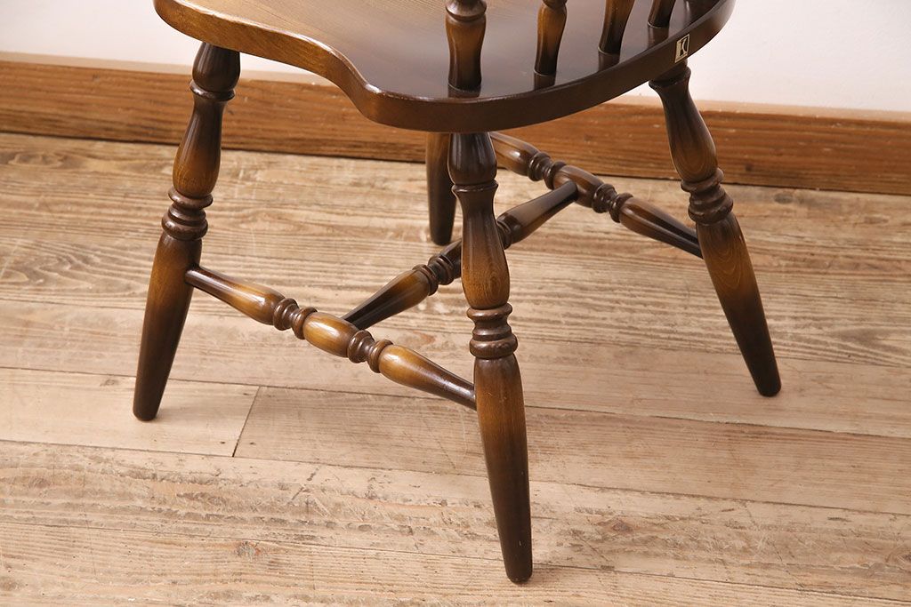 ヴィンテージ家具 飛騨産業 キツツキ 挽き物の意匠が上品な雰囲気漂うウィンザーチェア(椅子、ダイニングチェア、ビンテージ、ウインザーチェア)(R-048946)