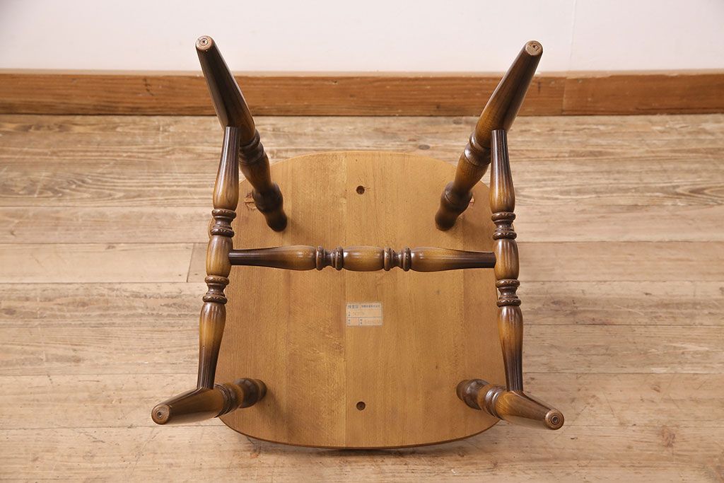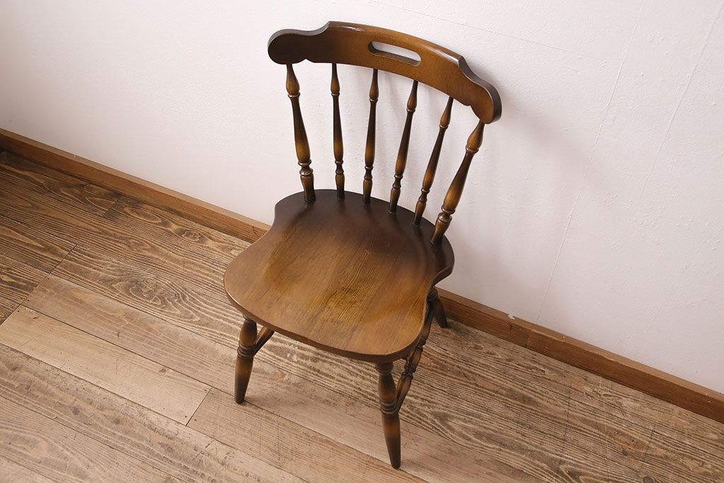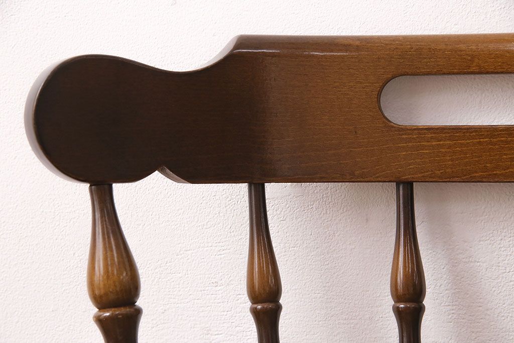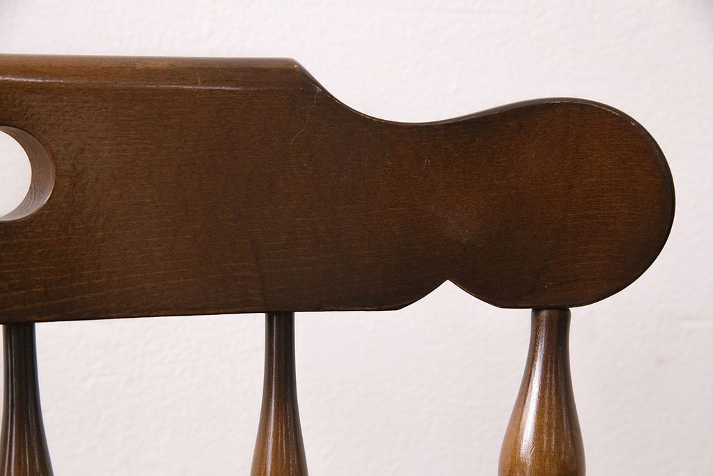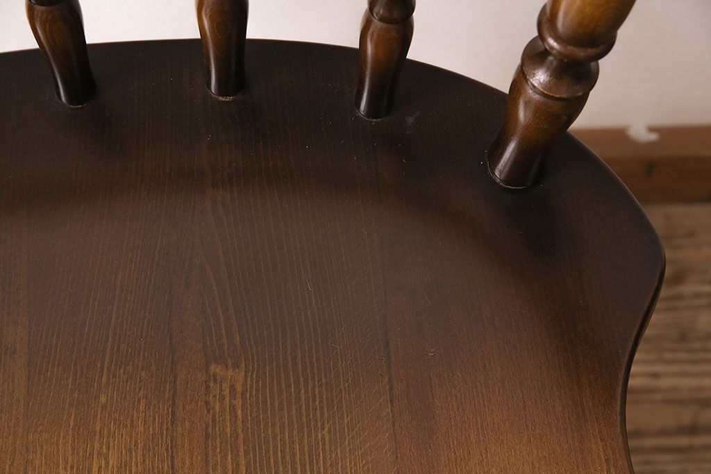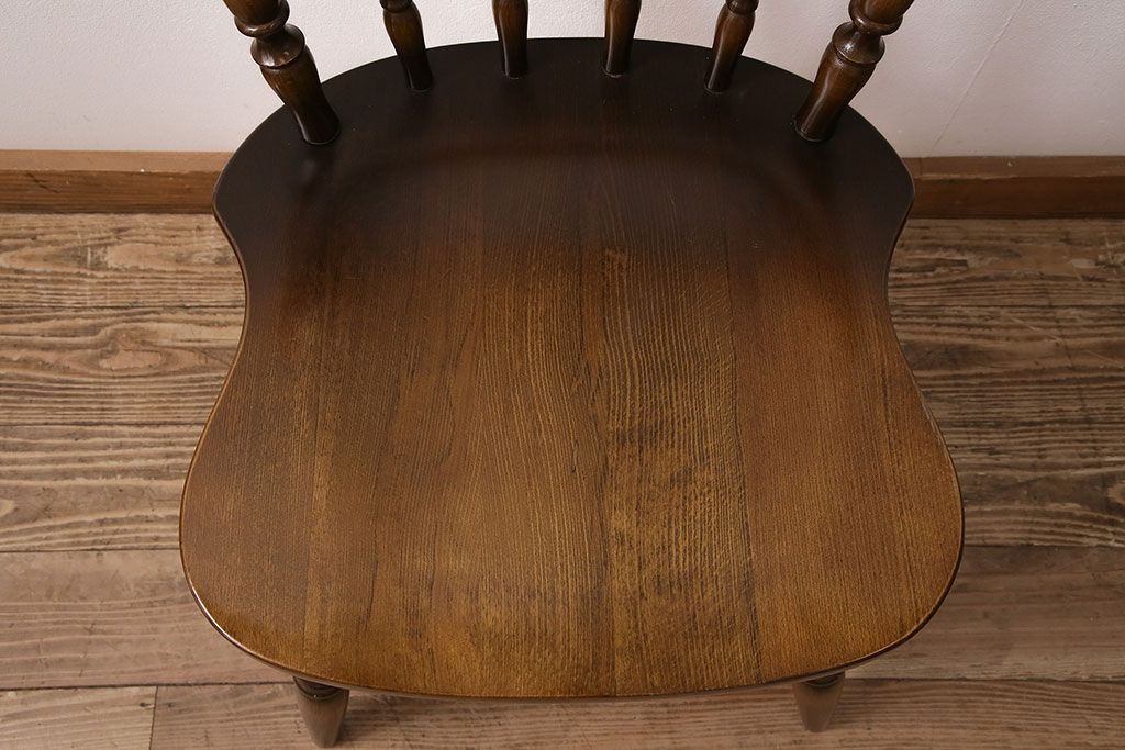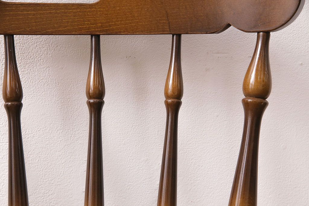 椅子・ベンチ> ウィンザーチェア > ヴィンテージ家具 飛騨産業 キツツキ 挽き物の意匠が上品な雰囲気漂うウィンザーチェア(椅子、ダイニングチェア、ビンテージ、ウインザーチェア)(R-048946)
