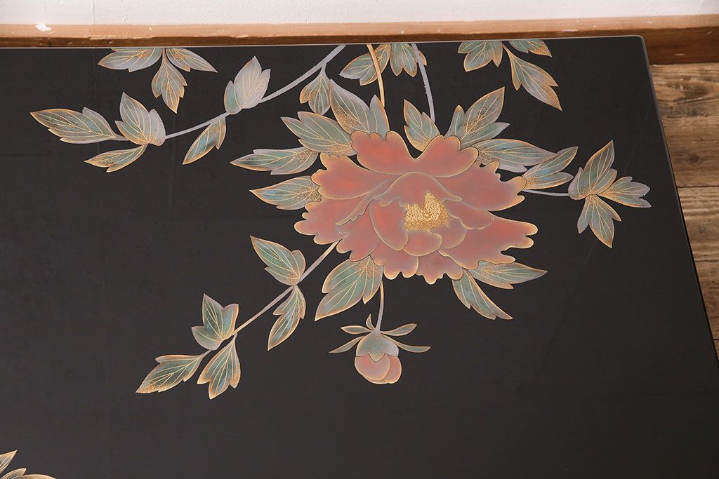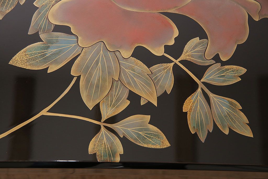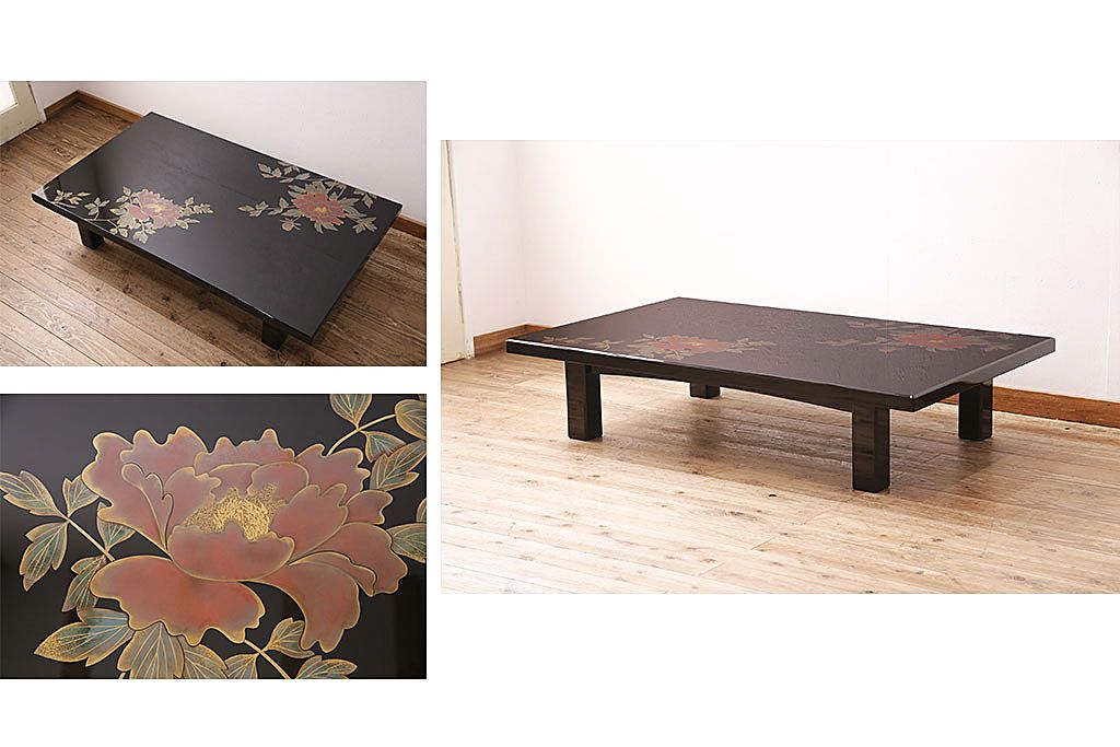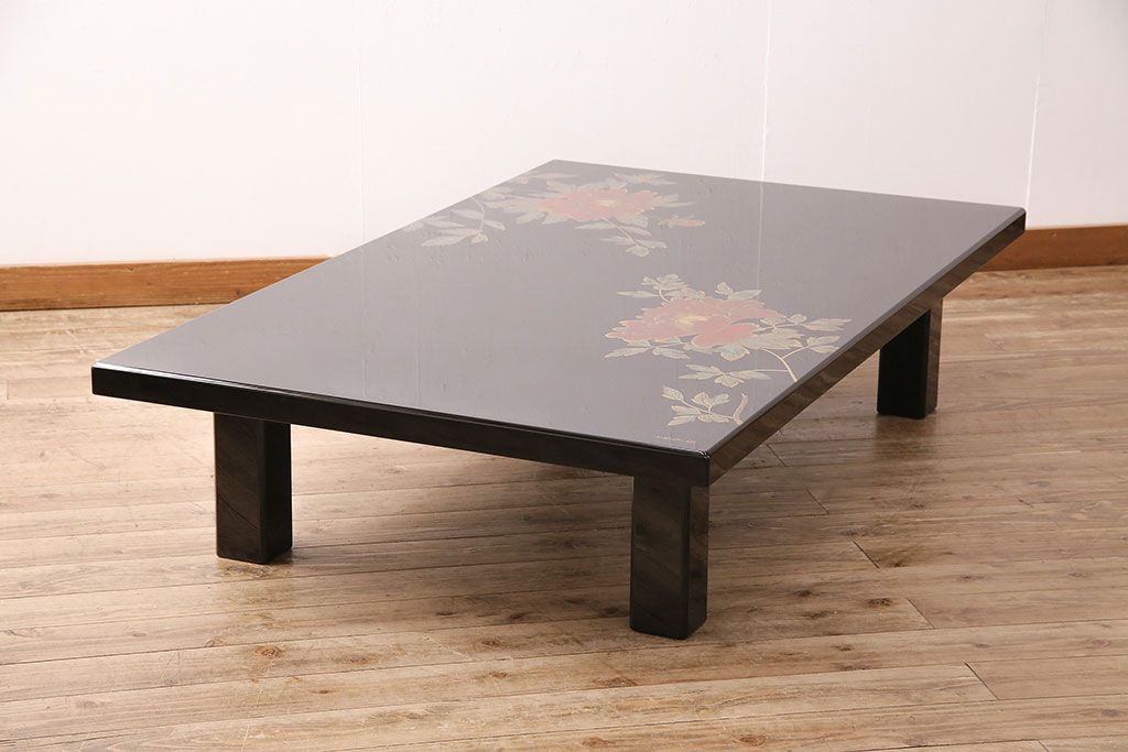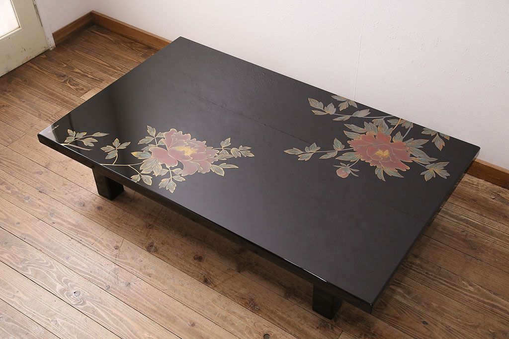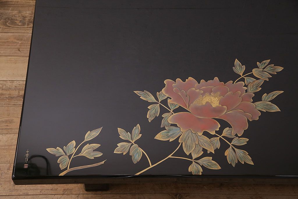 中古 伝統工芸 宗斎作 輪島塗 大輪の牡丹が優雅で気品溢れる座卓(ローテーブル)