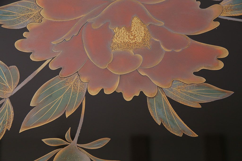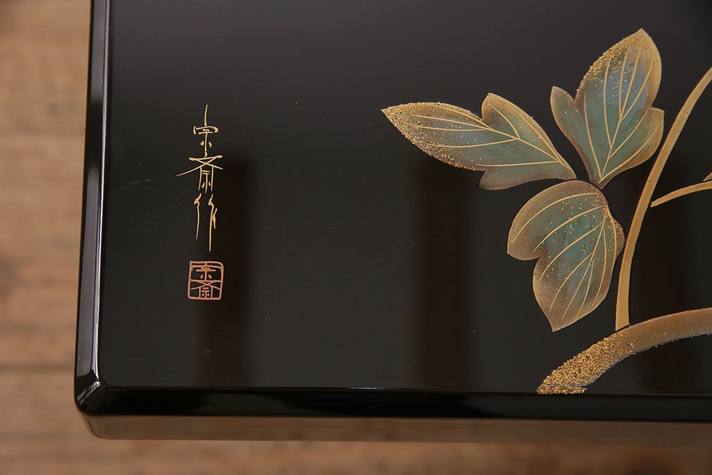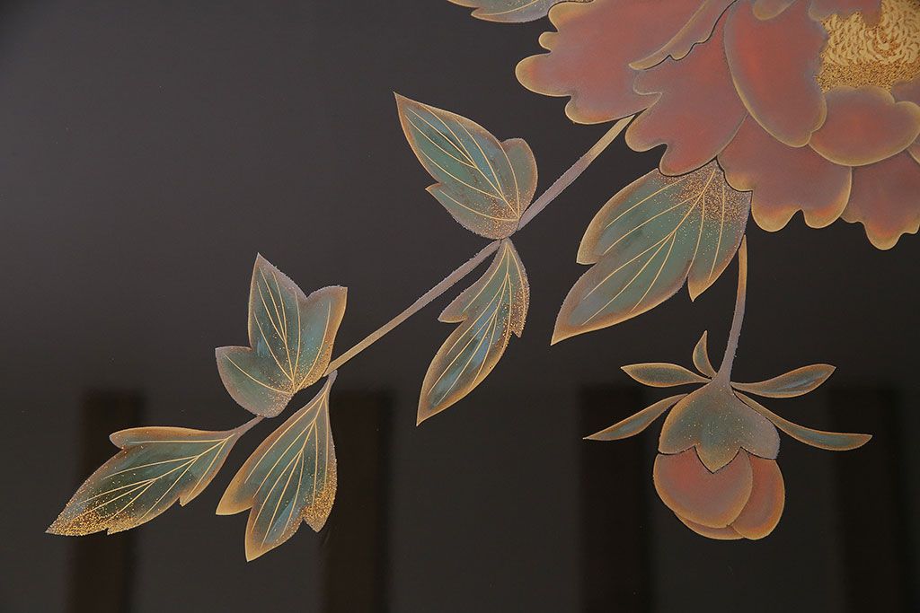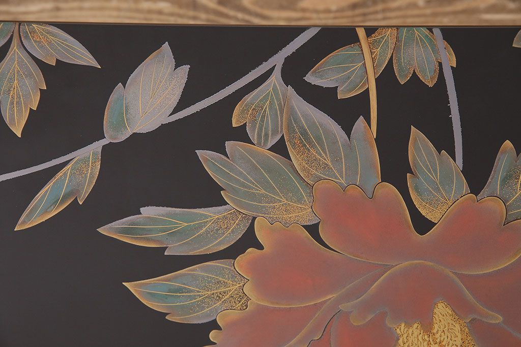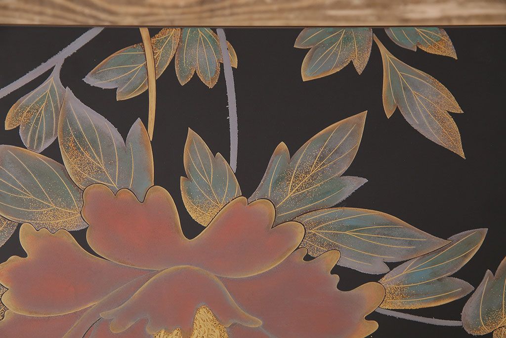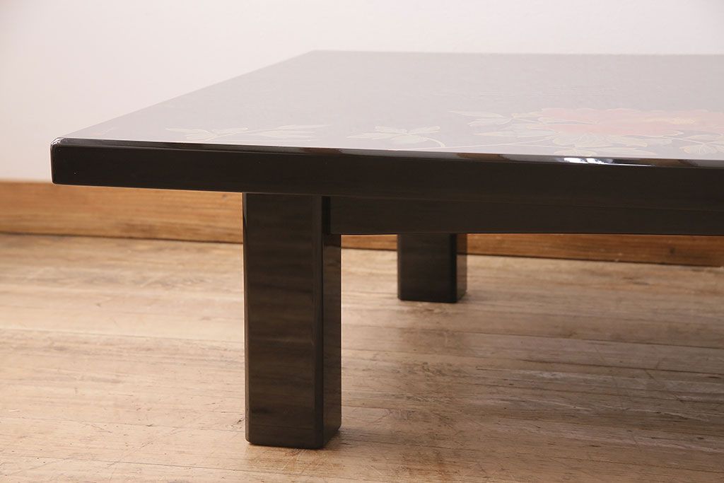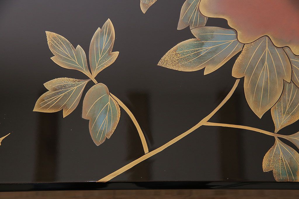 中古 伝統工芸 宗斎作 輪島塗 大輪の牡丹が優雅で気品溢れる座卓(ローテーブル)