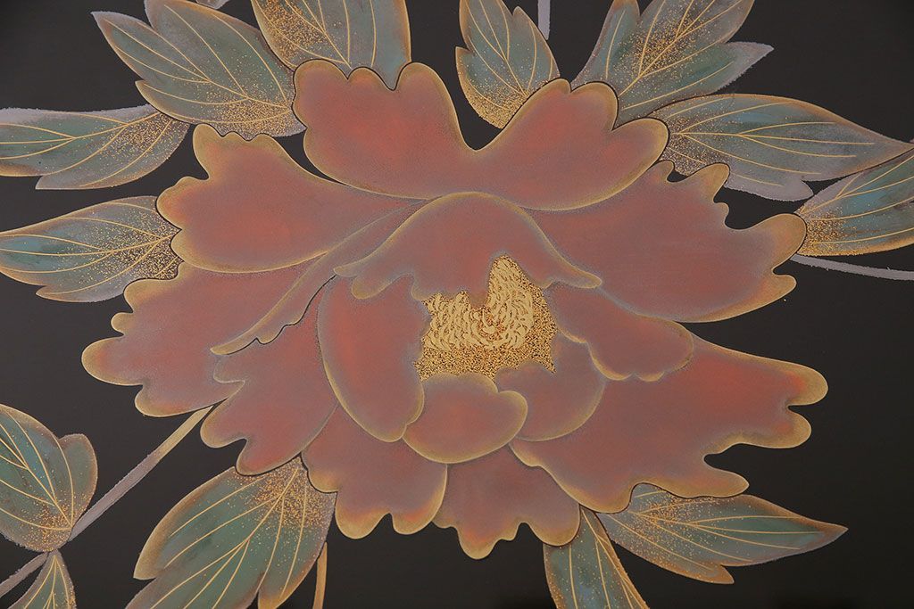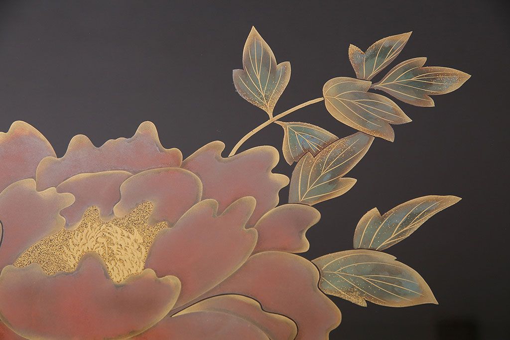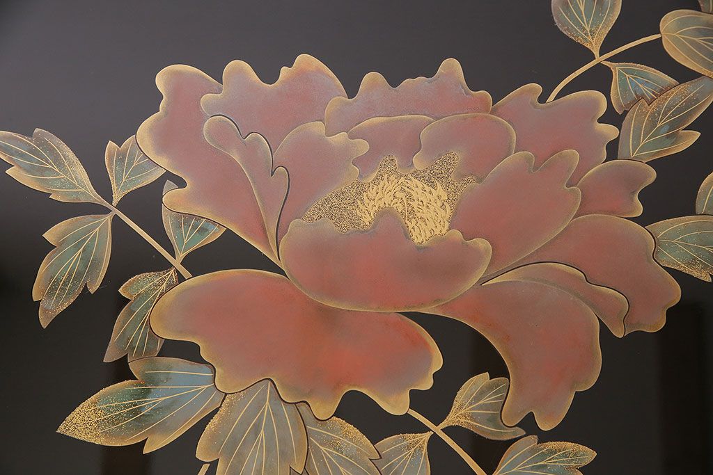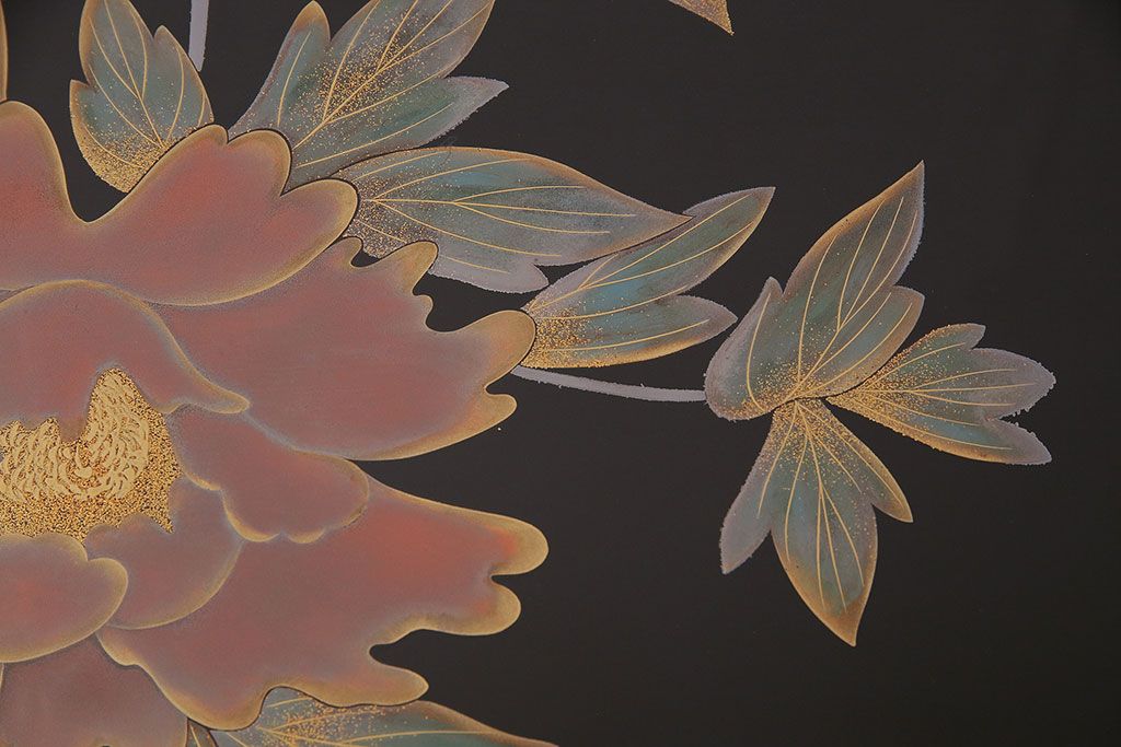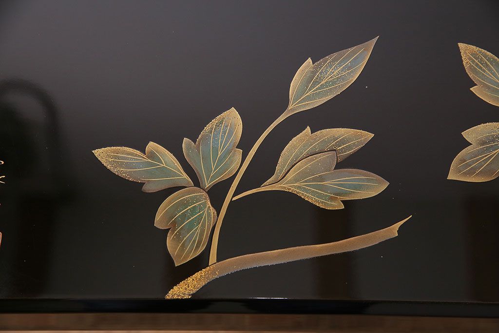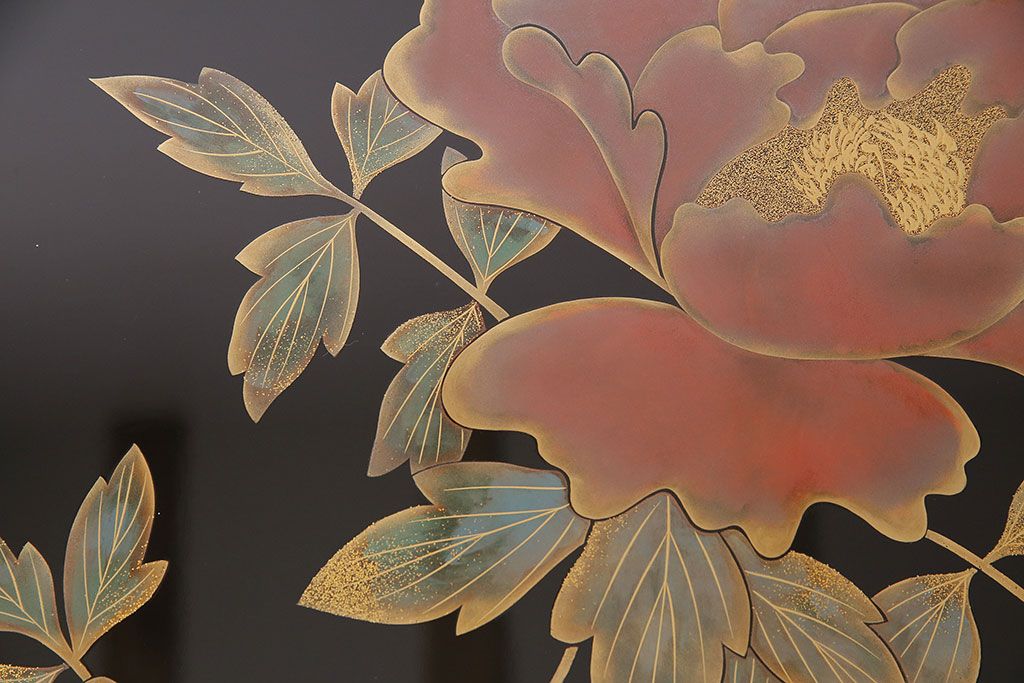 中古 伝統工芸 宗斎作 輪島塗 大輪の牡丹が優雅で気品溢れる座卓(ローテーブル)