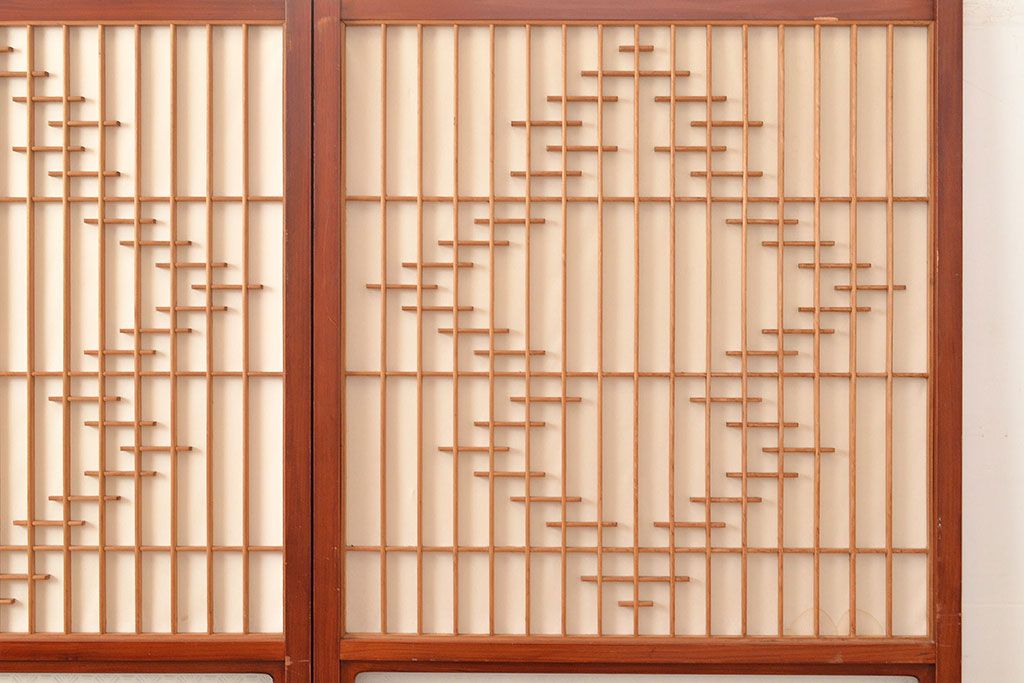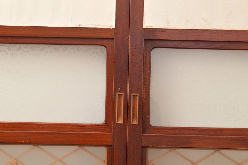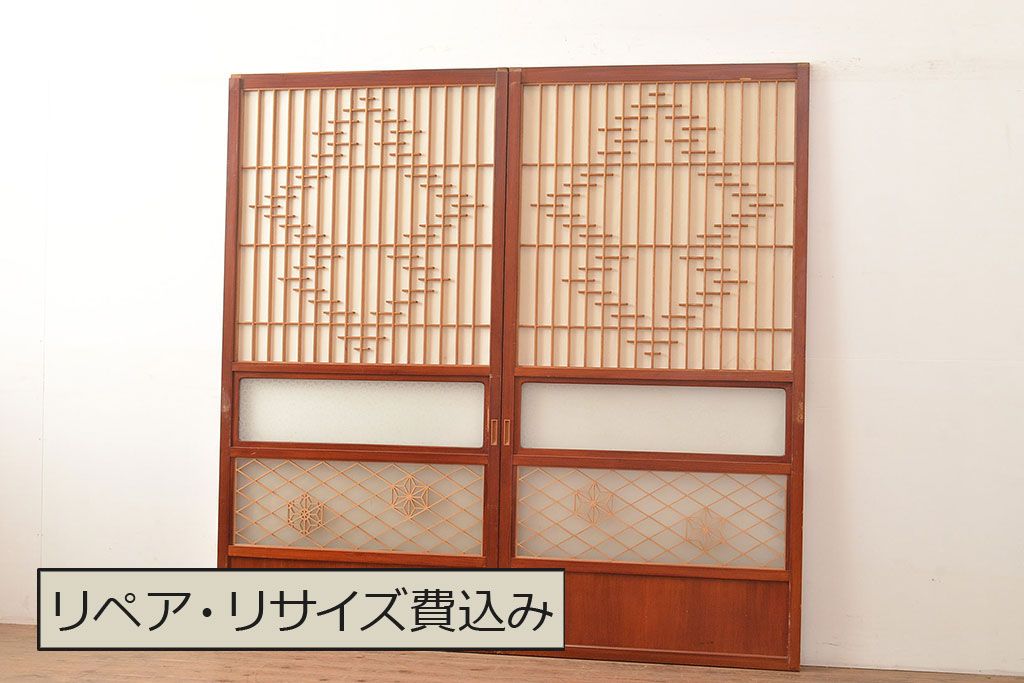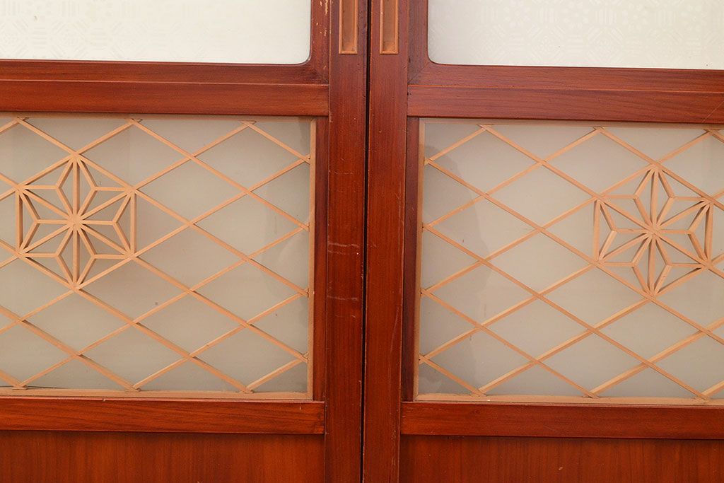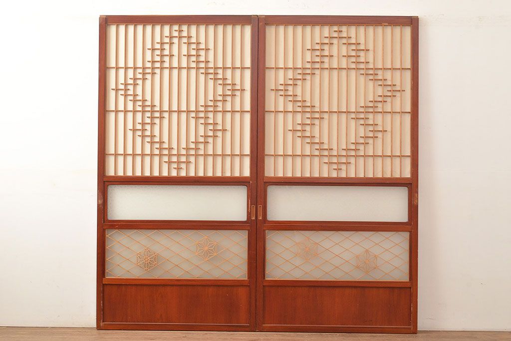 アンティーク建具 組子細工がお洒落な、和の風情たっぷりの障子戸2枚セット(引き戸、建具)(R-048379)