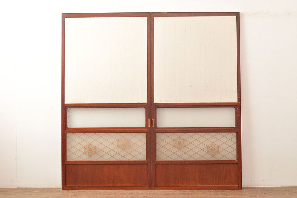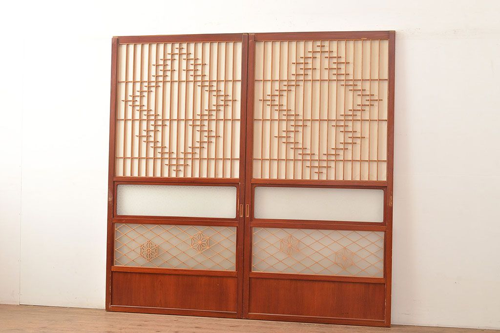 アンティーク建具 組子細工がお洒落な、和の風情たっぷりの障子戸2枚セット(引き戸、建具)(R-048379)です。