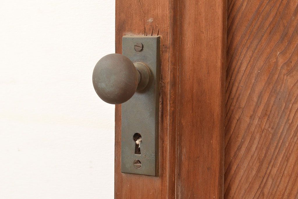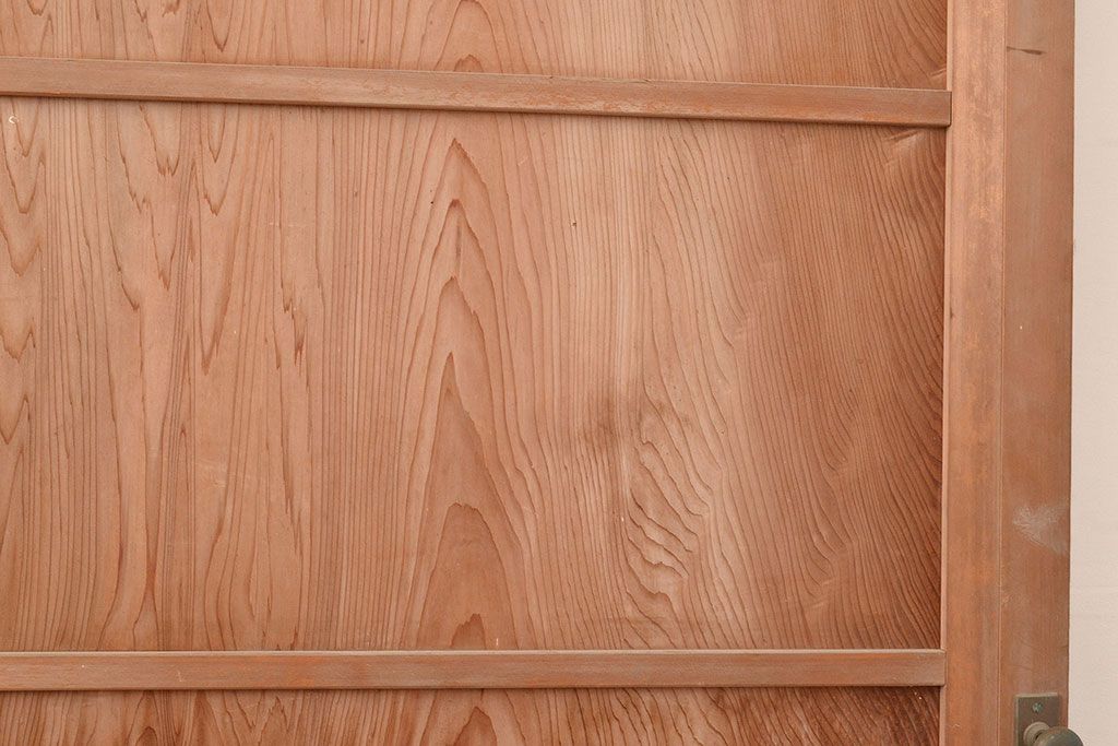 状態が気になる方には現状販売はおすすめできませんので、慎重なご検討をお願いいたします。アンティーク建具 秋田杉の一枚板を使った、趣深い扉(ドア、建具)(R-048381)です。