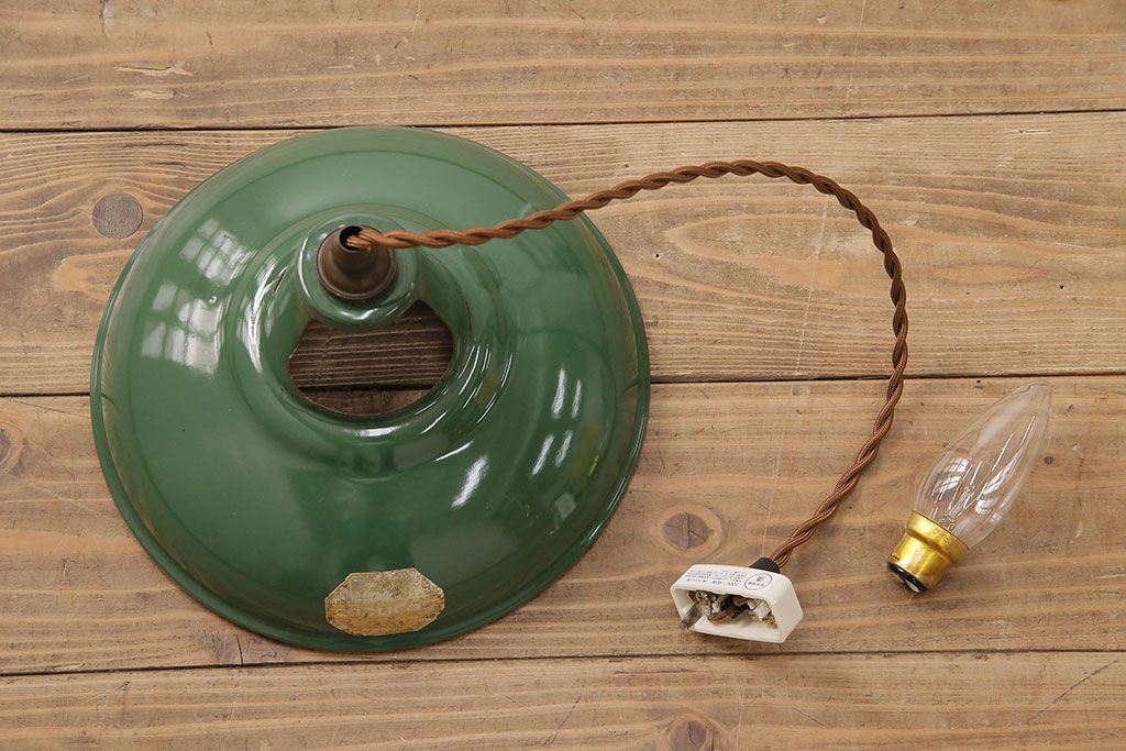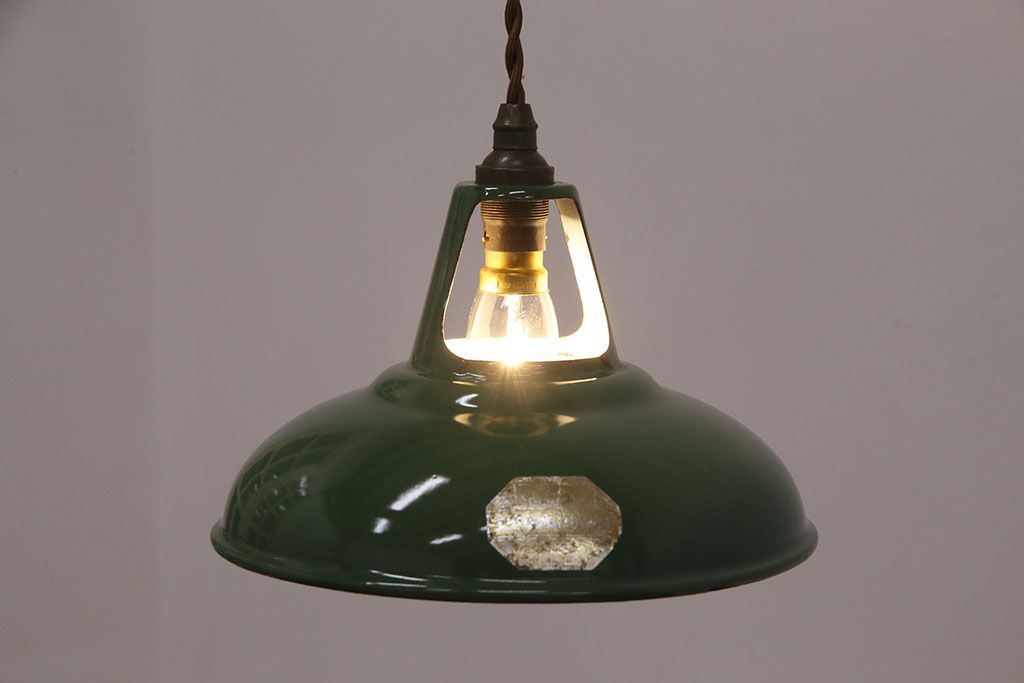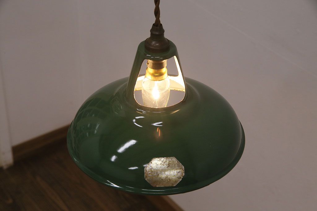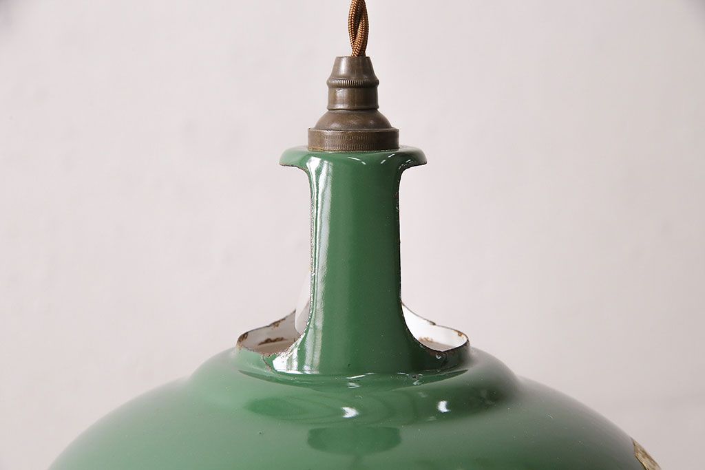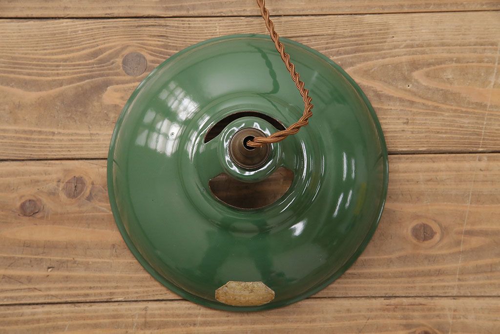 照明・ランプ> ペンダントライト > アンティーク照明 昭和レトロ グリーンカラーが空間のアクセントになるホーロー製天井照明(ペンダントライト、吊り下げ照明、琺瑯)(R-048938)