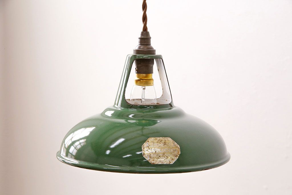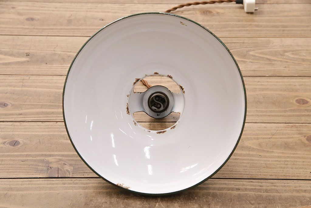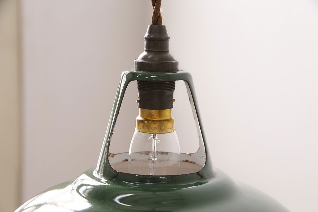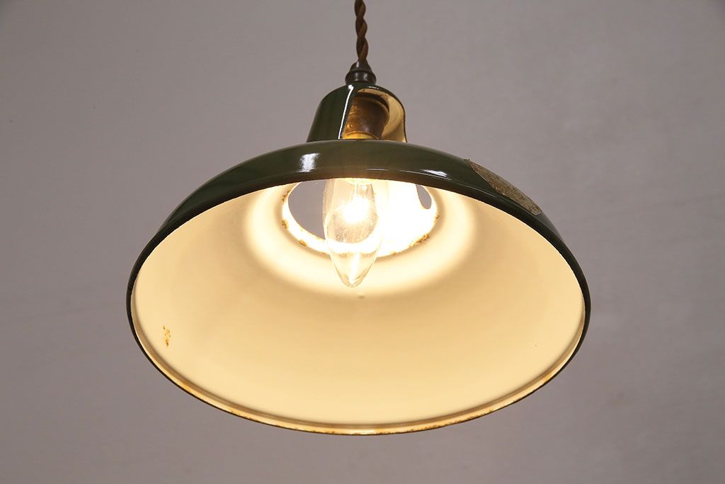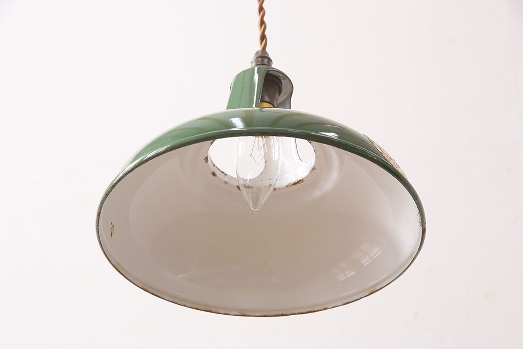 照明・ランプ> ペンダントライト > アンティーク照明 昭和レトロ グリーンカラーが空間のアクセントになるホーロー製天井照明(ペンダントライト、吊り下げ照明、琺瑯)(R-048938)