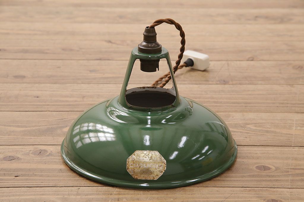 アンティーク照明 昭和レトロ グリーンカラーが空間のアクセントになるホーロー製天井照明(ペンダントライト、吊り下げ照明、琺瑯)(R-048938)