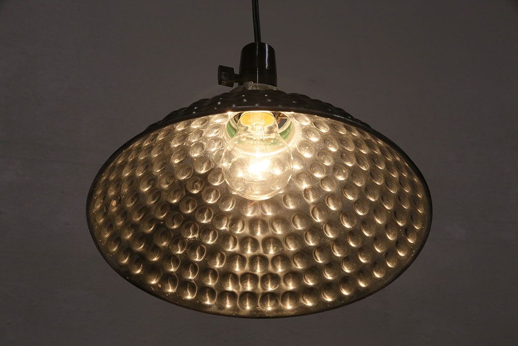 昭和レトロ 個性的な佇まいが目を引く、アルミ製のペンダントライト(天井照明、吊り下げ照明)(R-048973)