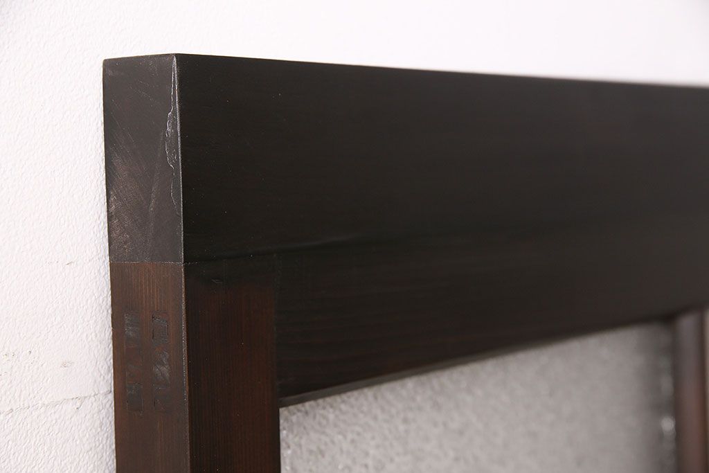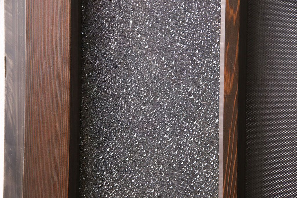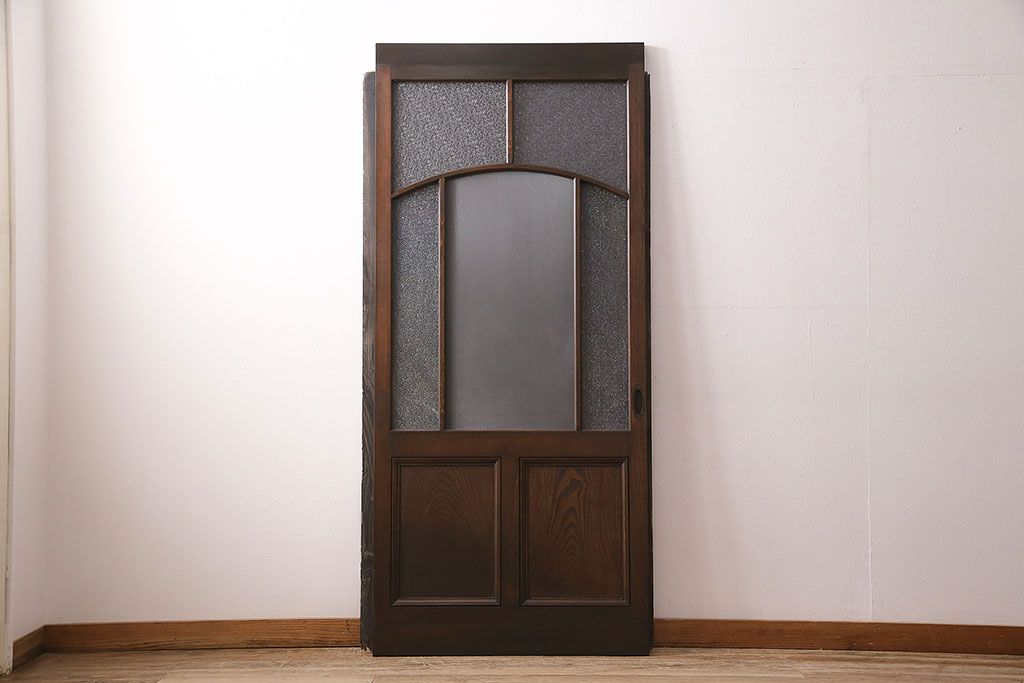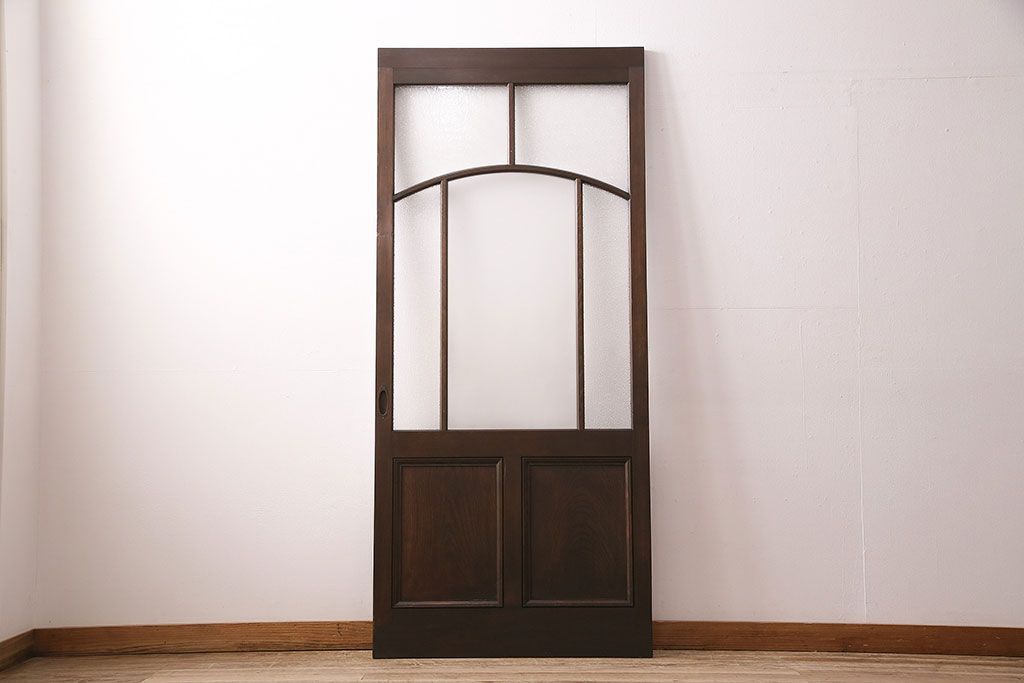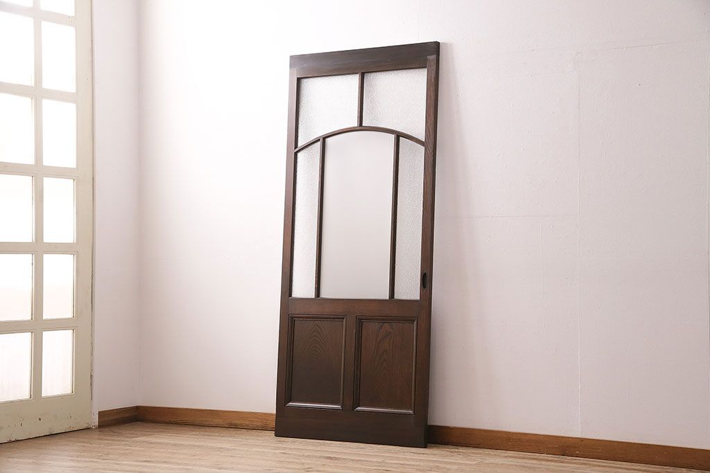 大正昭和初期のガラス戸をリペア&カスタム!設置場所に合わせてリサイズ。引き手を取り付け。ガラスの欠損箇所にダイヤガラスを組み入れ。吊り戸仕様に加工。チェスナットで着色し仕上げ。(引き戸、建具)