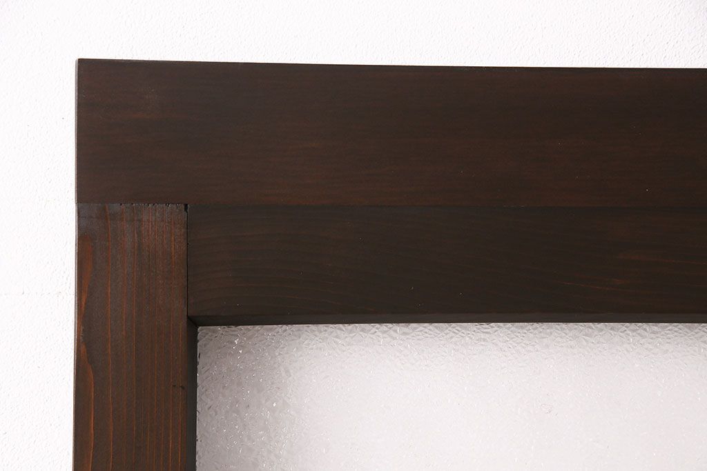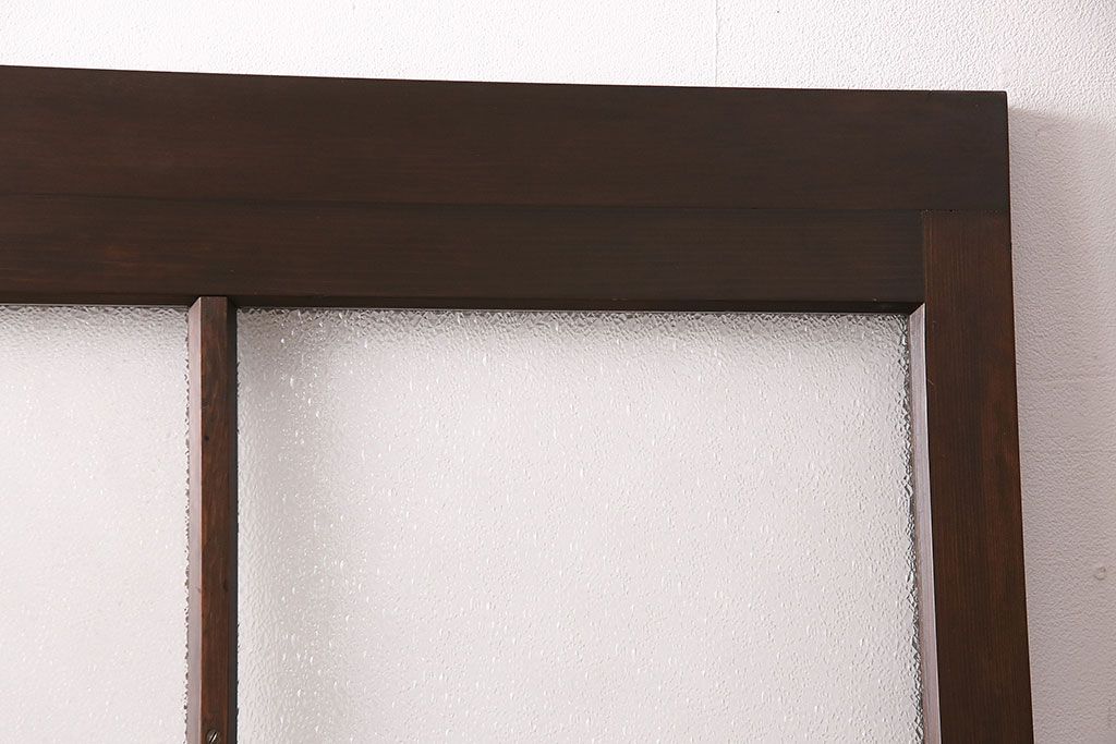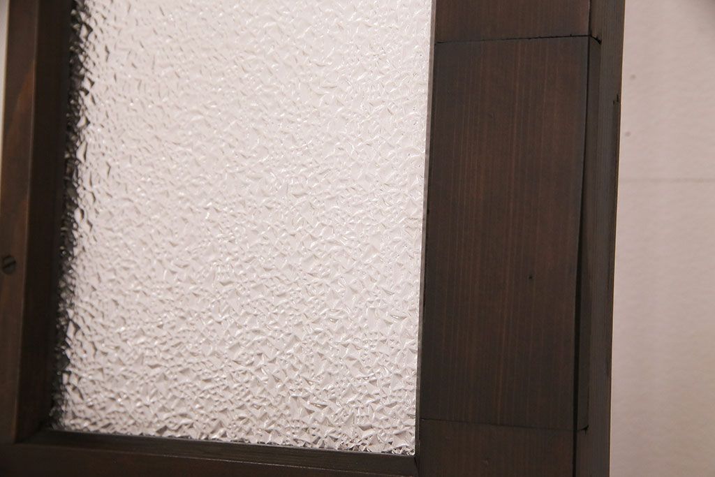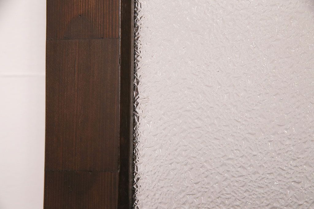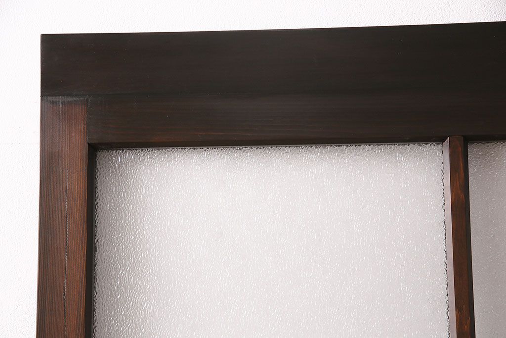 ドア・建具> ガラス戸 > 大正昭和初期のガラス戸をリペア&カスタム!設置場所に合わせてリサイズ。引き手を取り付け。ガラスの欠損箇所にダイヤガラスを組み入れ。吊り戸仕様に加工。チェスナットで着色し仕上げ。(引き戸、建具)