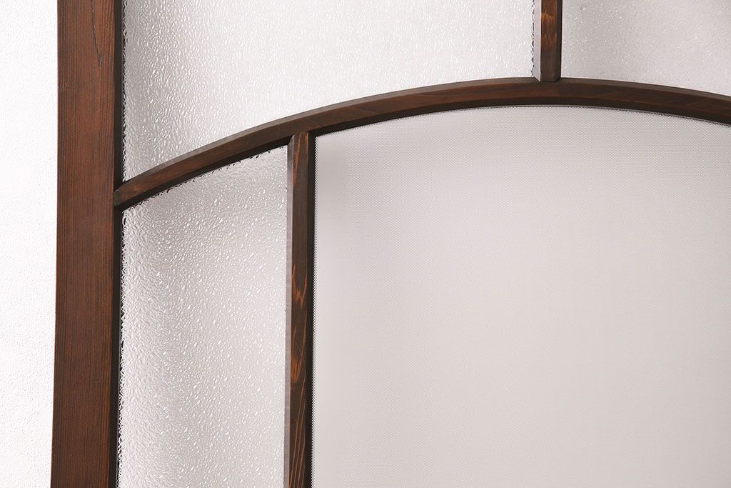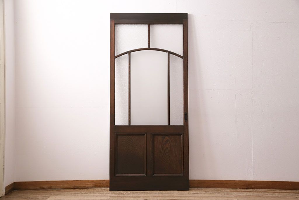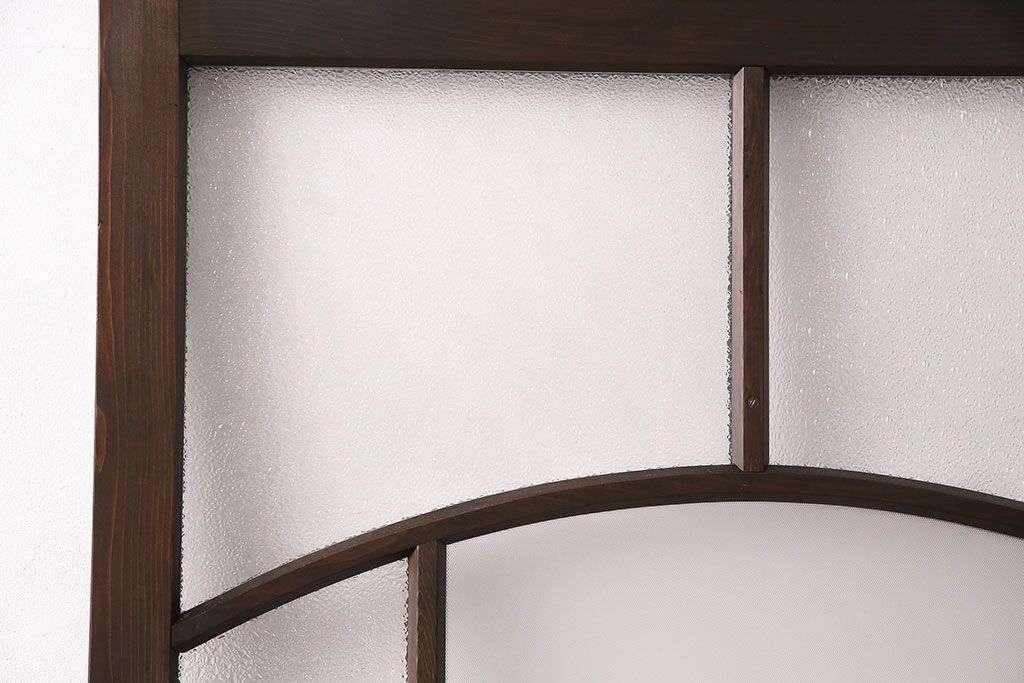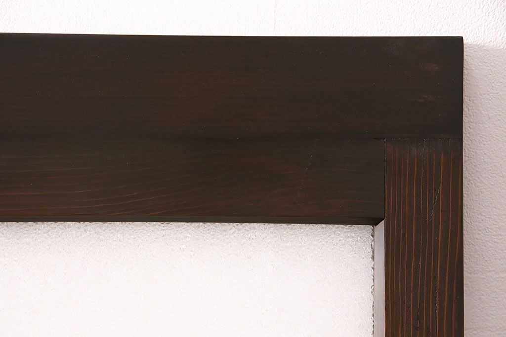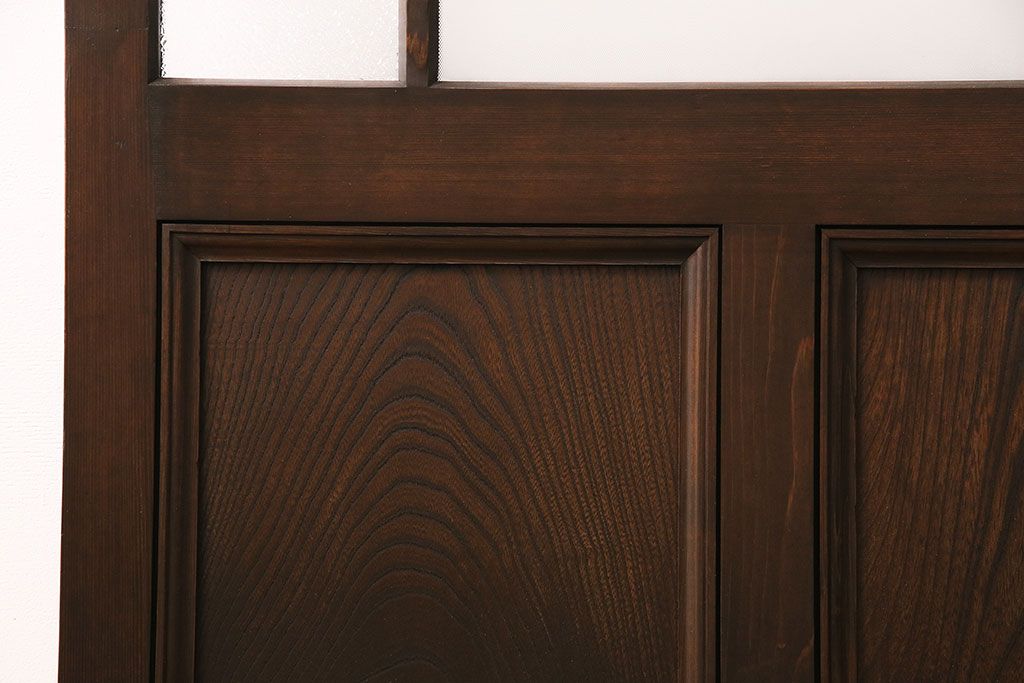 ドア・建具> ガラス戸 > 大正昭和初期のガラス戸をリペア&カスタム!設置場所に合わせてリサイズ。引き手を取り付け。ガラスの欠損箇所にダイヤガラスを組み入れ。吊り戸仕様に加工。チェスナットで着色し仕上げ。(引き戸、建具)