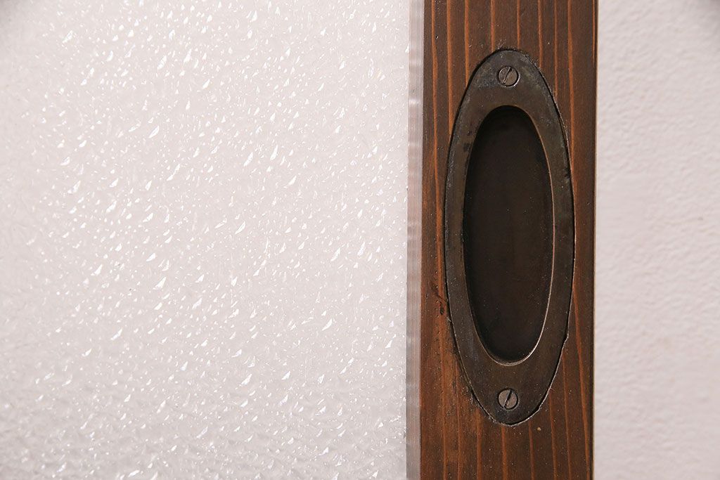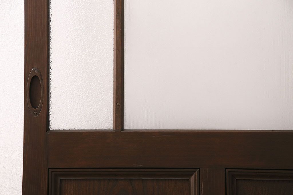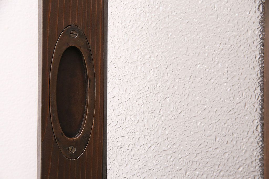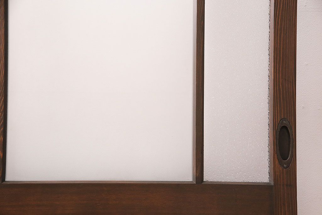 ドア・建具> 引き戸 > 大正昭和初期のガラス戸をリペア&カスタム!設置場所に合わせてリサイズ。引き手を取り付け。ガラスの欠損箇所にダイヤガラスを組み入れ。吊り戸仕様に加工。チェスナットで着色し仕上げ。(引き戸、建具)