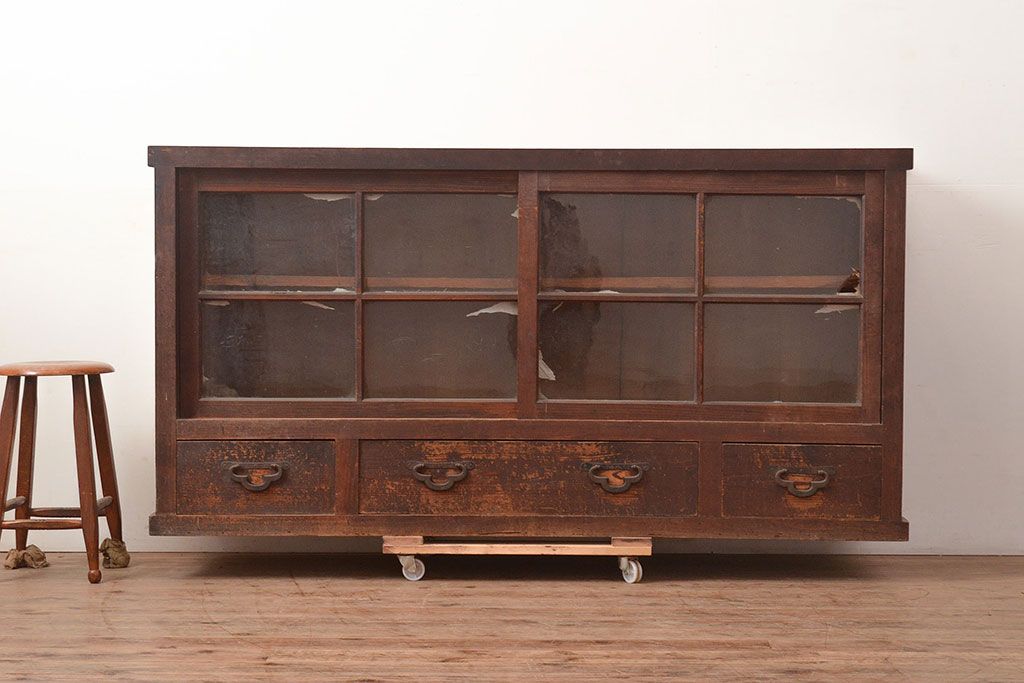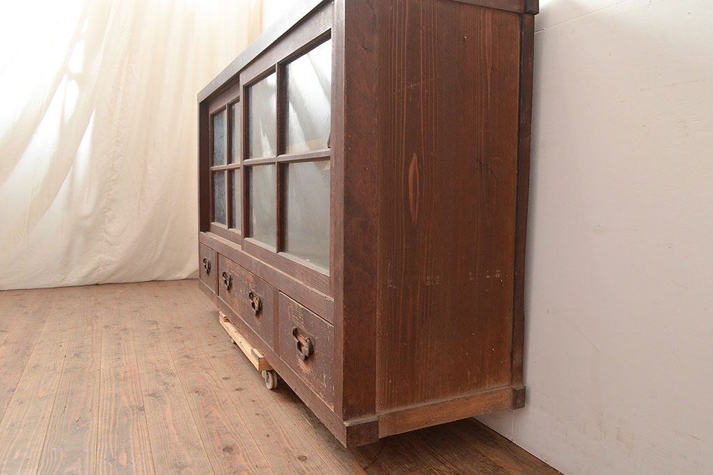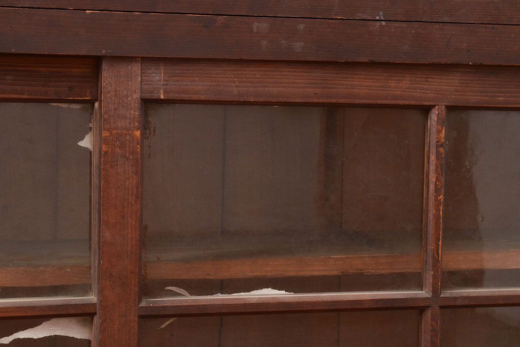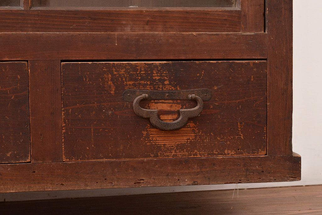 和製アンティーク 前面ヒノキ 使い込まれた木の風合いと引手が味わい深い戸棚(ガラス戸棚、キャビネット、収納棚、食器棚)(R-048050)