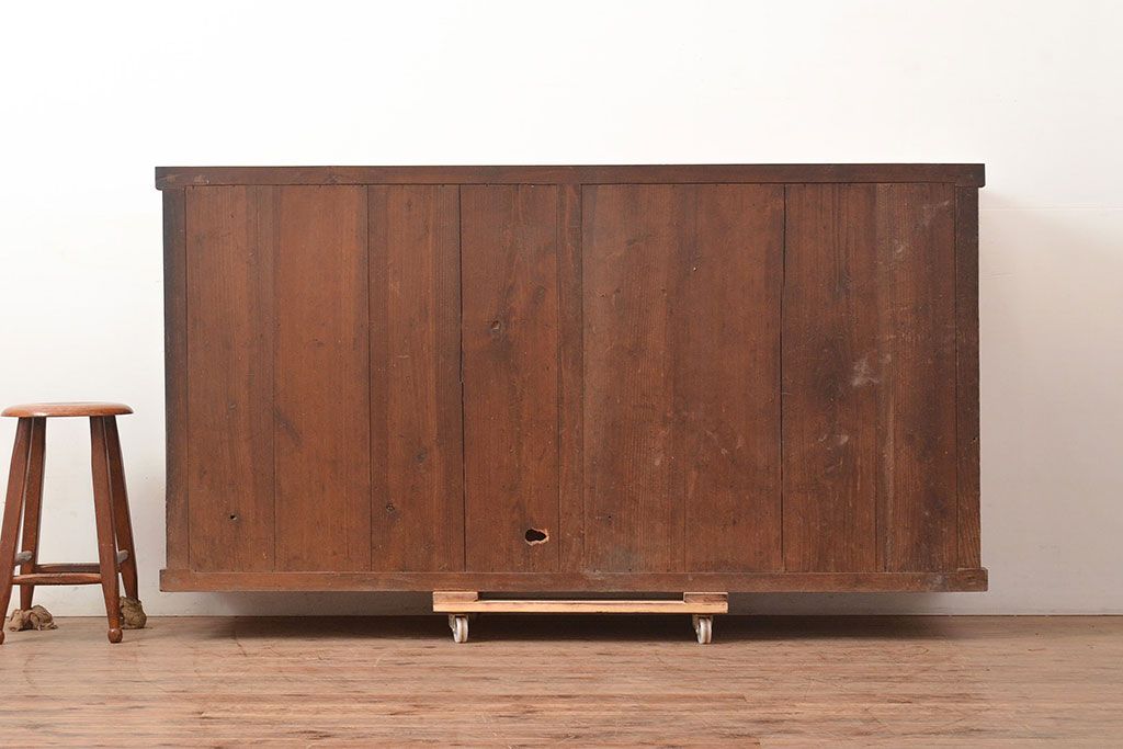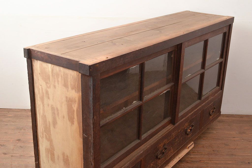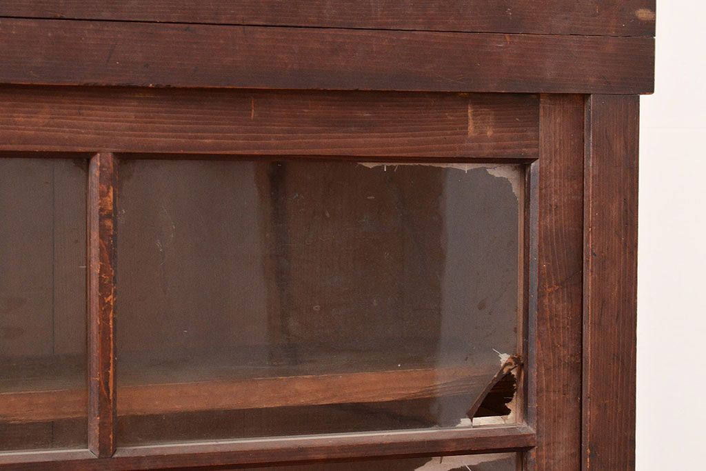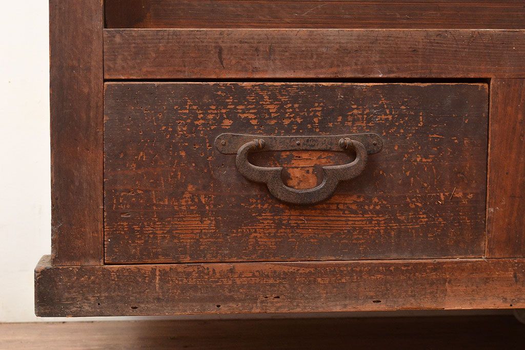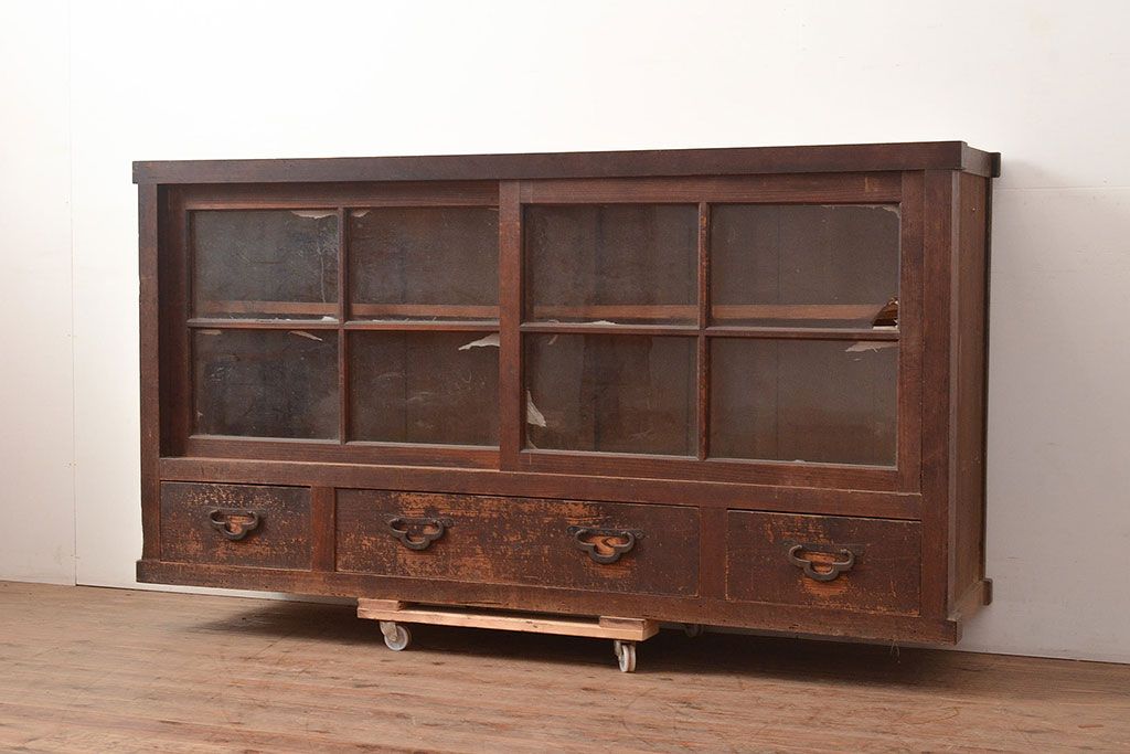 和製アンティーク 前面ヒノキ 使い込まれた木の風合いと引手が味わい深い戸棚(ガラス戸棚、キャビネット、収納棚、食器棚)(R-048050)