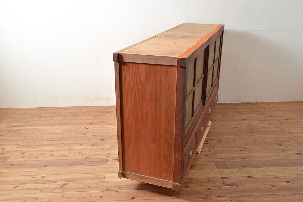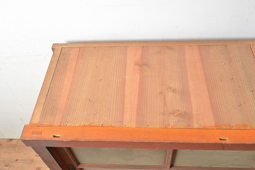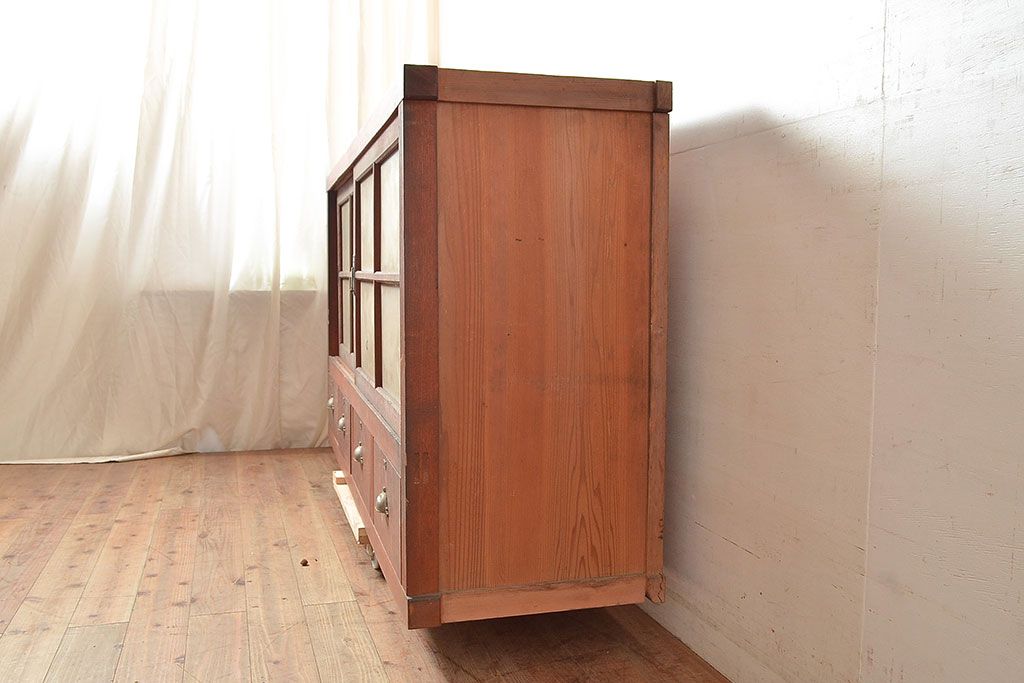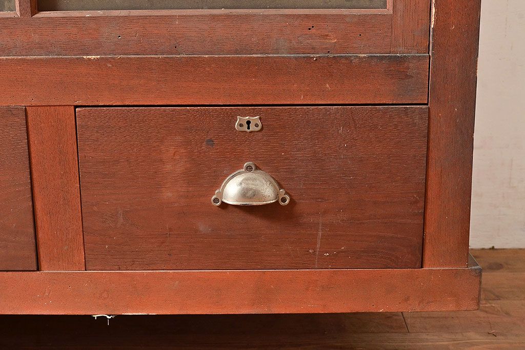 和製アンティーク 前面ケヤキ材 赤みがかった木色が目を引く上手物の戸棚(収納棚、食器棚、キャビネット、ガラス戸棚)(R-047949)