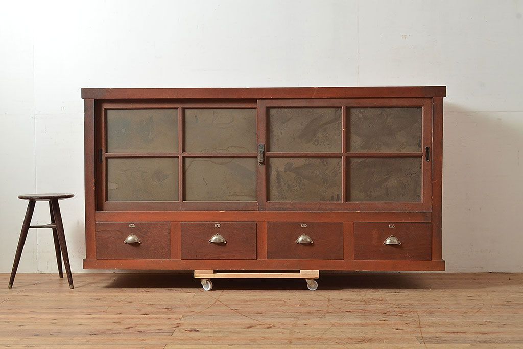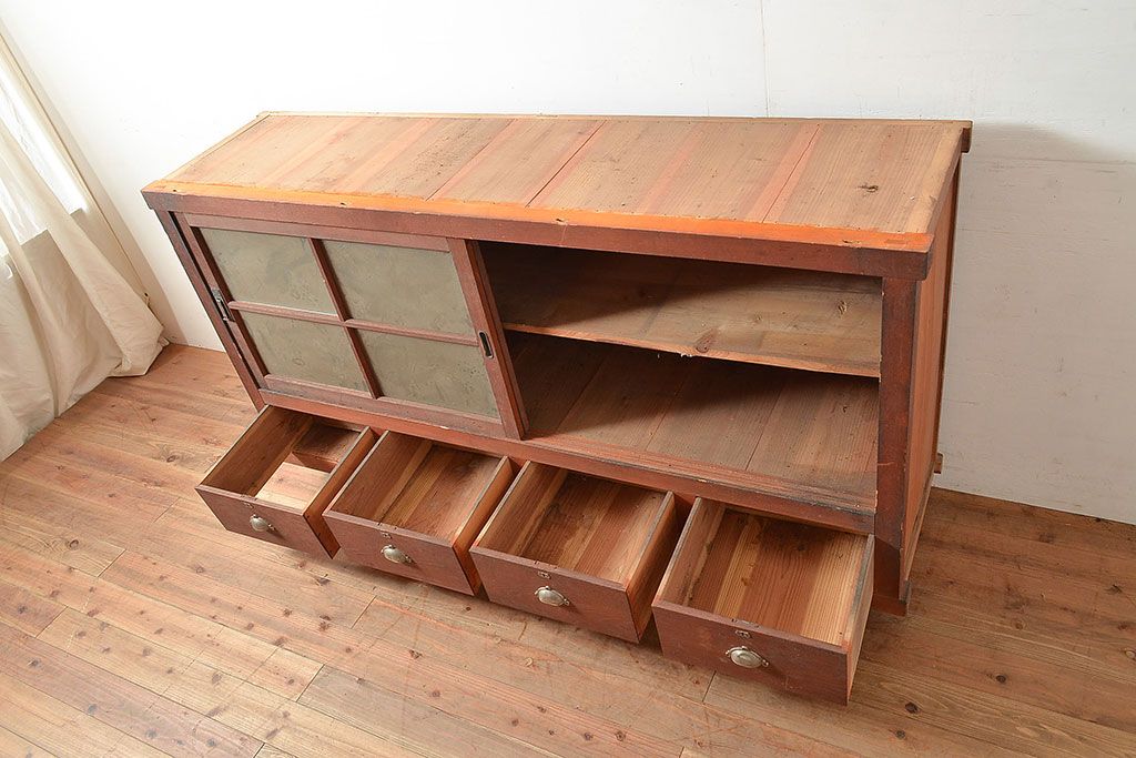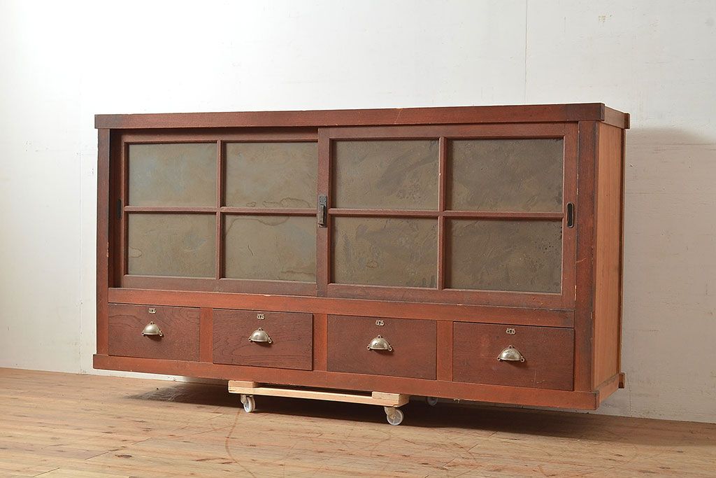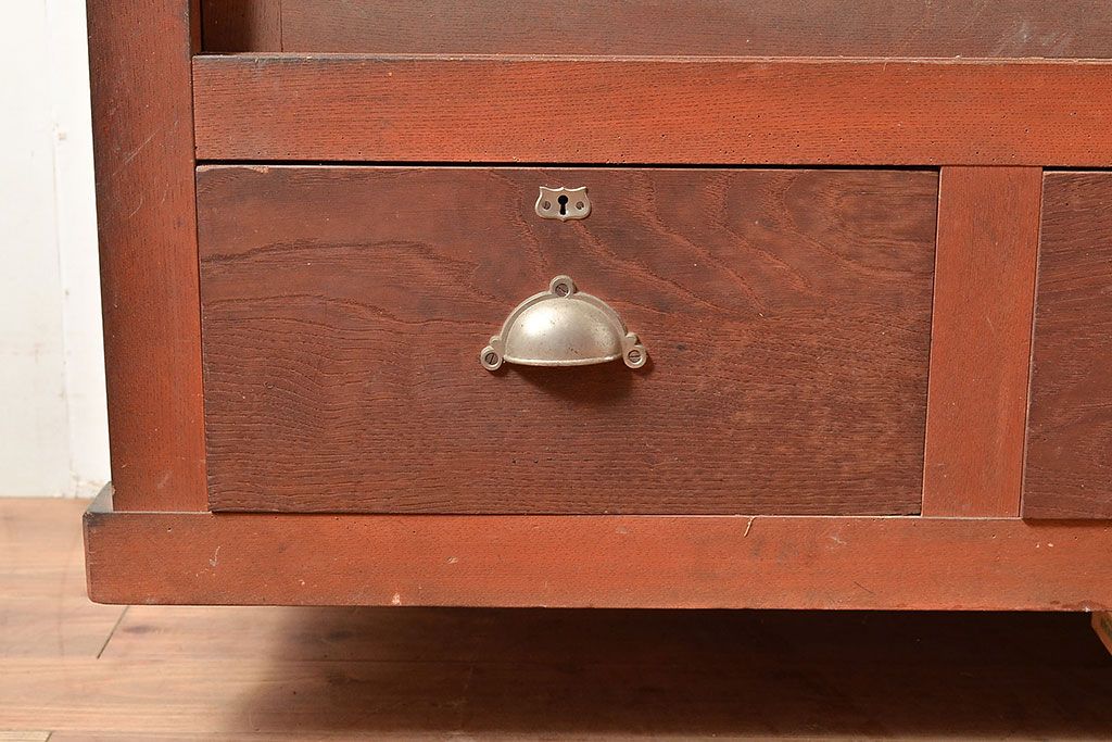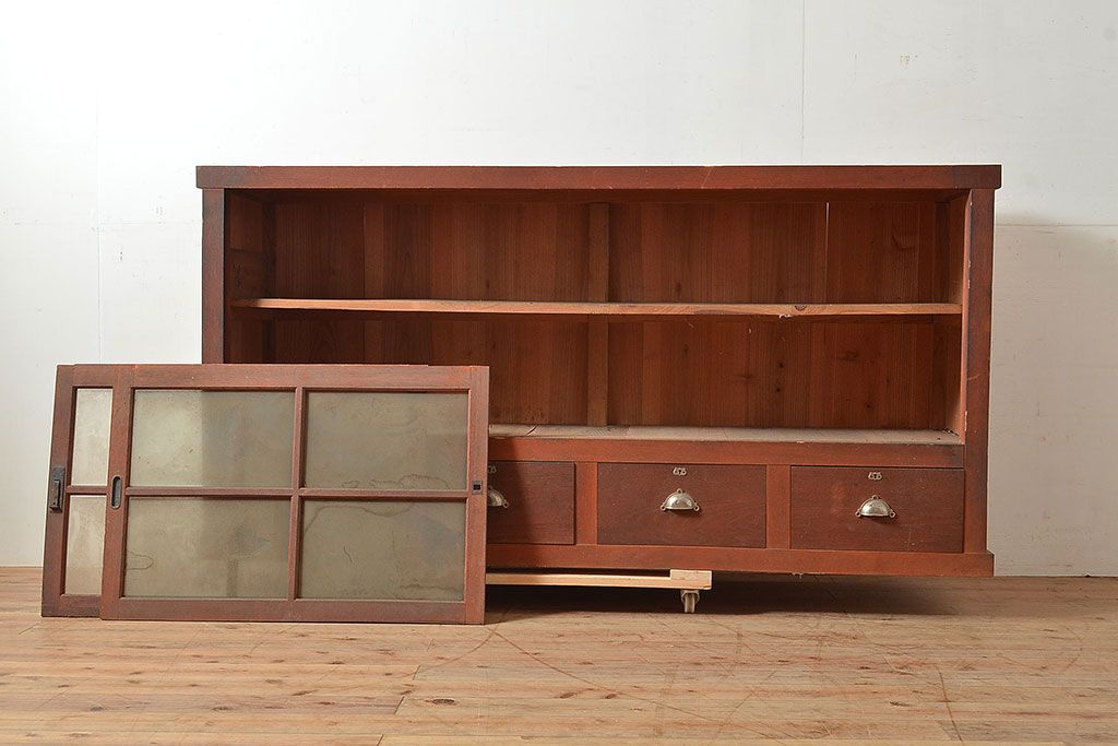 和製アンティーク 前面ケヤキ材 赤みがかった木色が目を引く上手物の戸棚(収納棚、食器棚、キャビネット、ガラス戸棚)(R-047949)