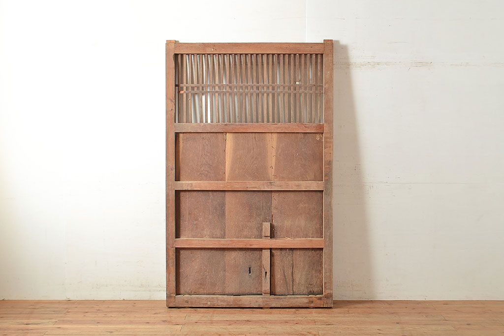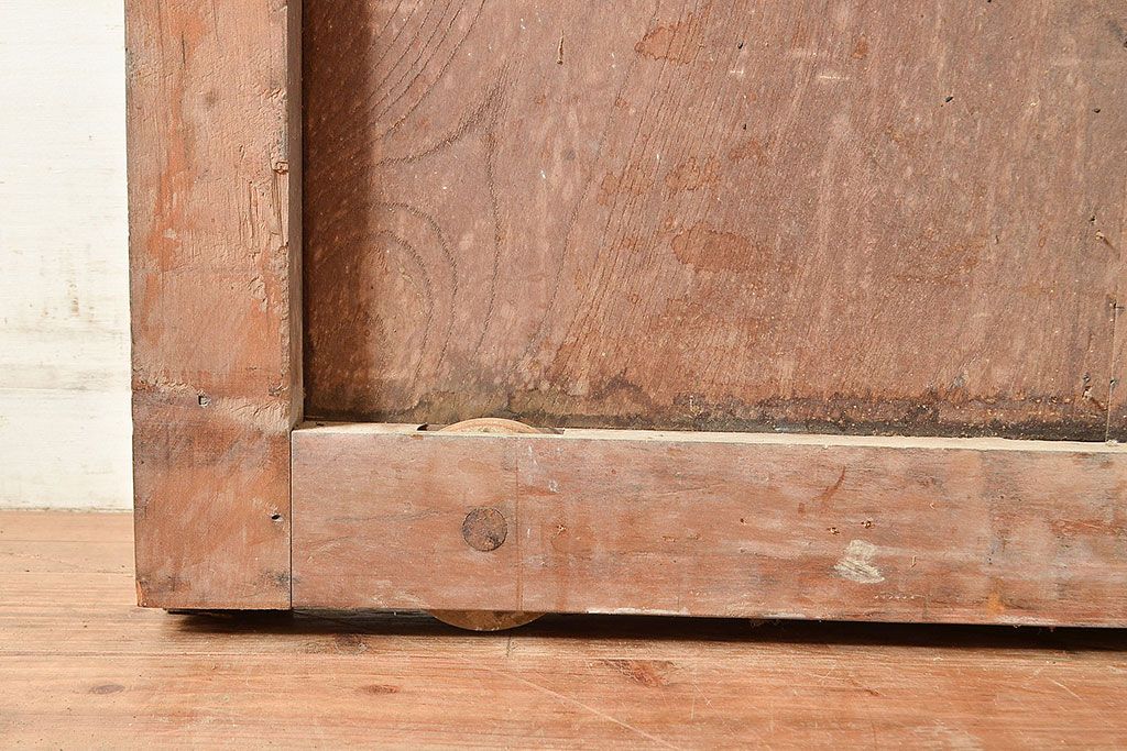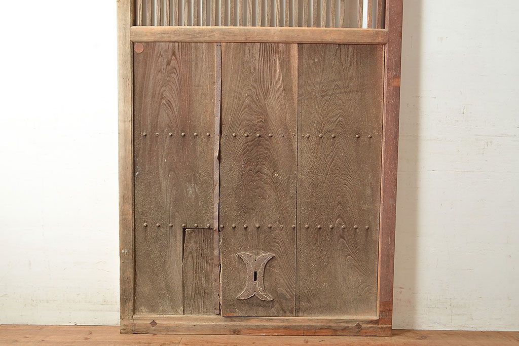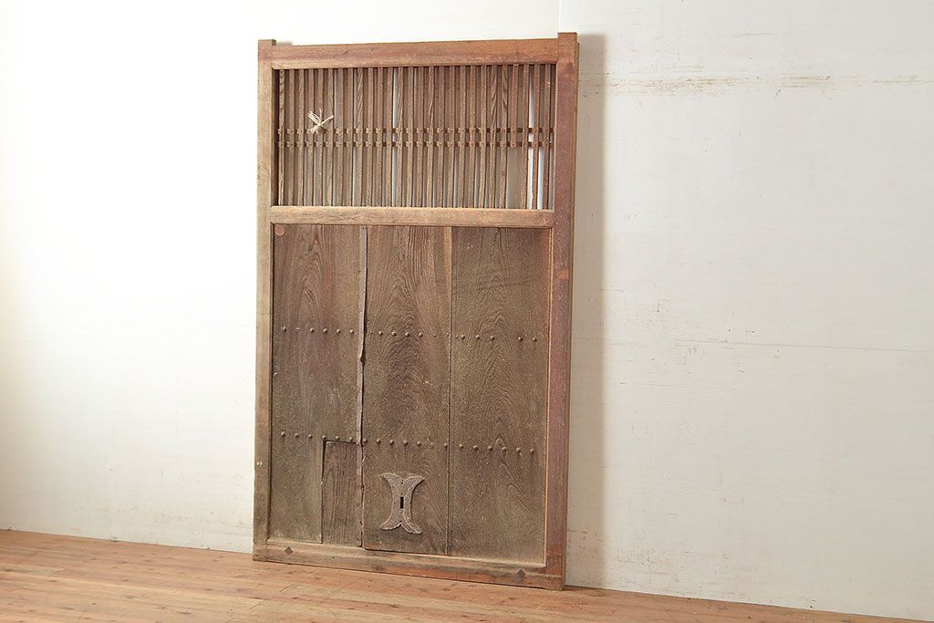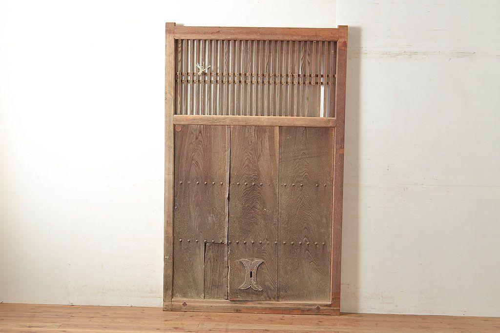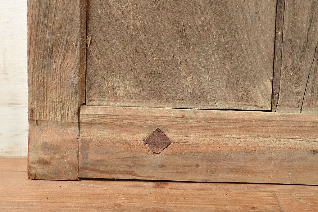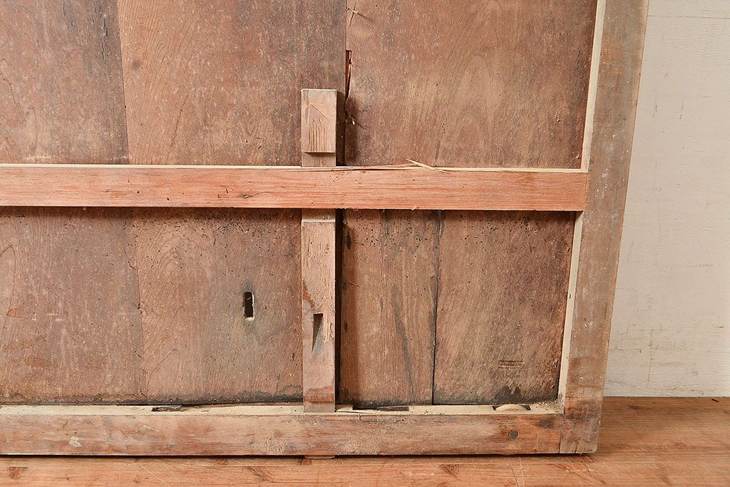 状態が気になる方には現状販売はおすすめできませんので、慎重なご検討をお願いいたします。アンティーク建具 ヒノキ材・栗材 時を重ねた木の味わいが魅力的な蔵戸(玄関戸、引き戸、建具)(R-048570)です。