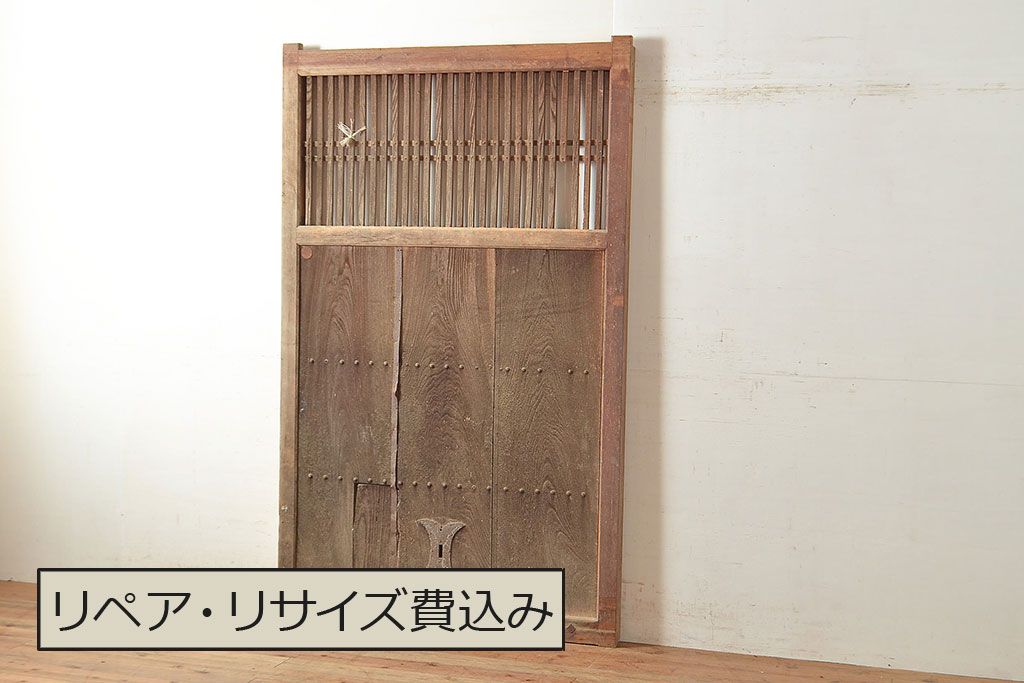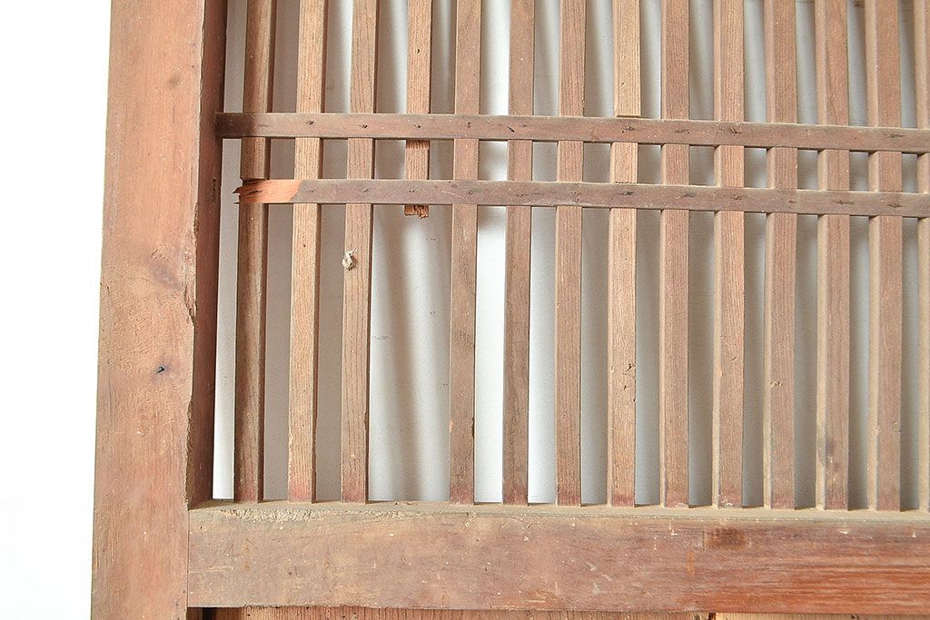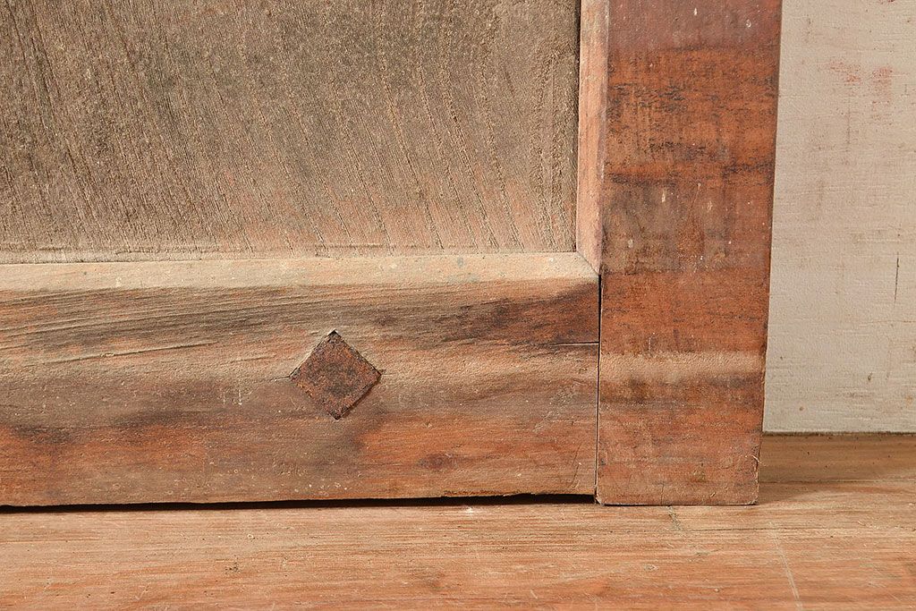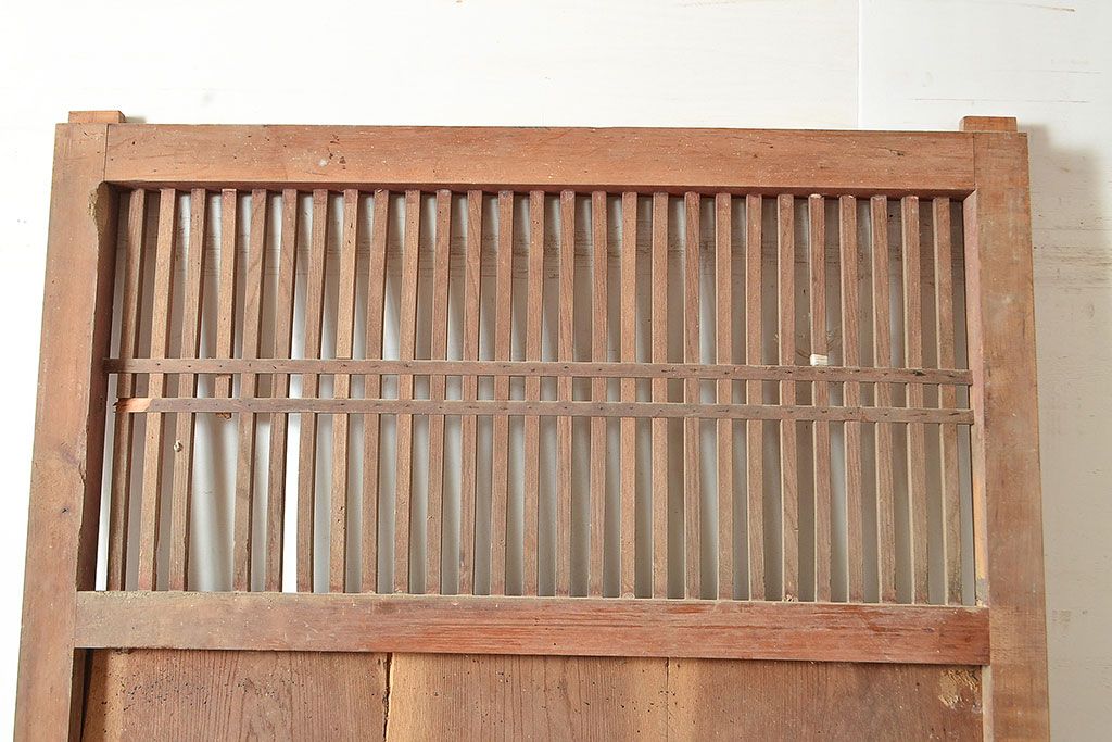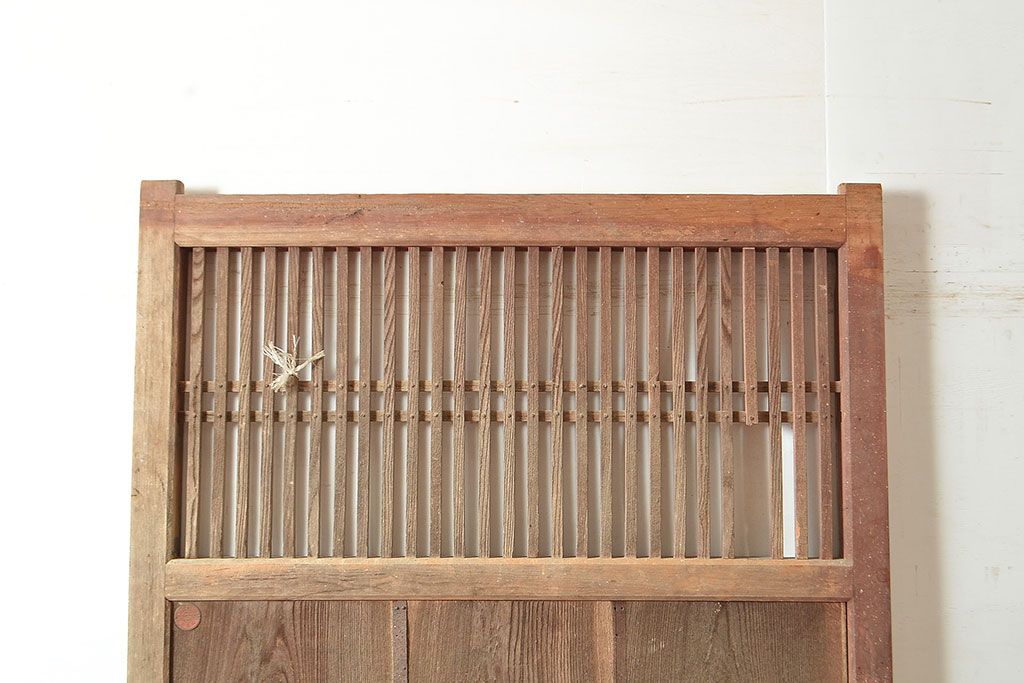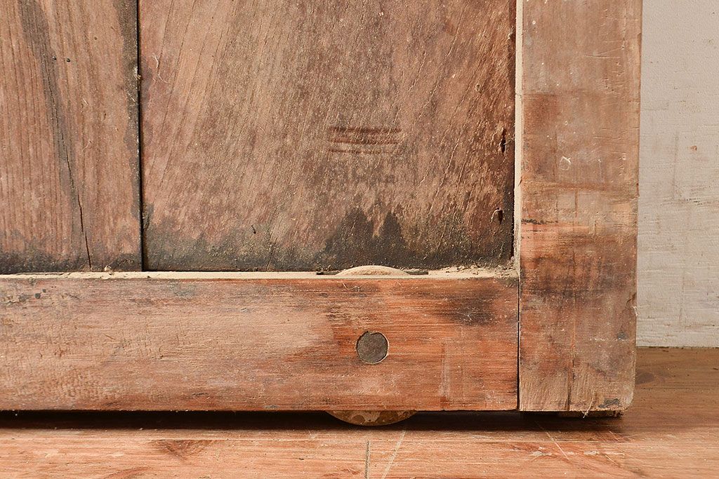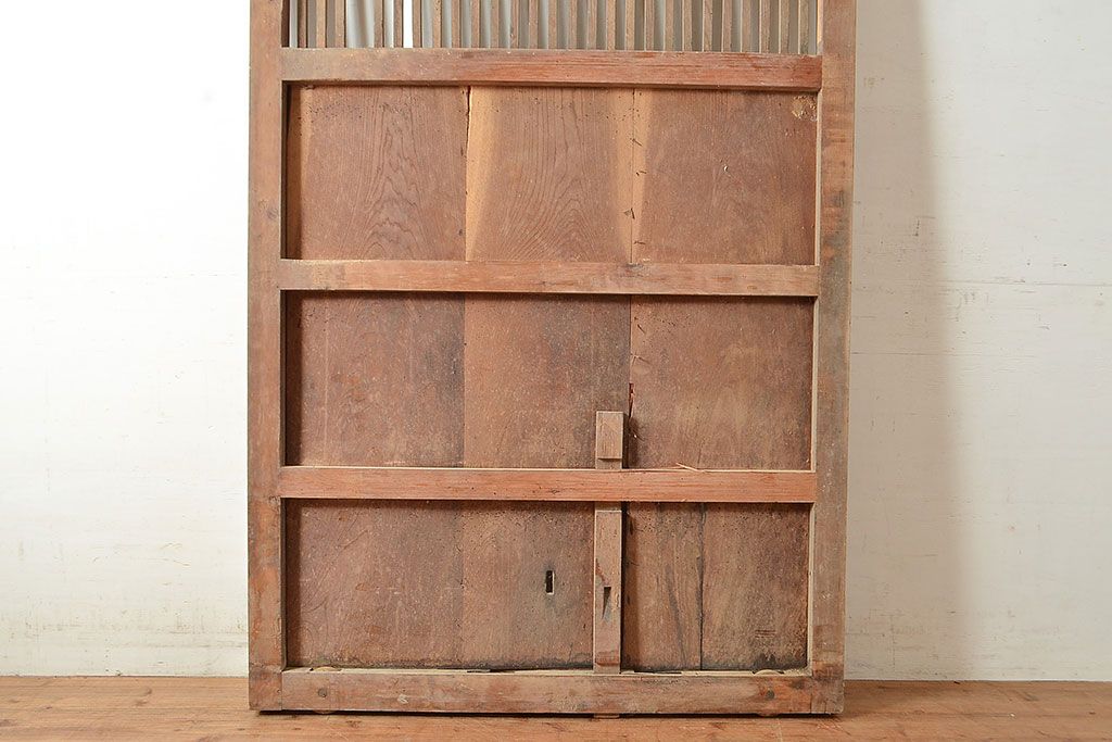 状態が気になる方には現状販売はおすすめできませんので、慎重なご検討をお願いいたします。アンティーク建具 ヒノキ材・栗材 時を重ねた木の味わいが魅力的な蔵戸(玄関戸、引き戸、建具)(R-048570)です。