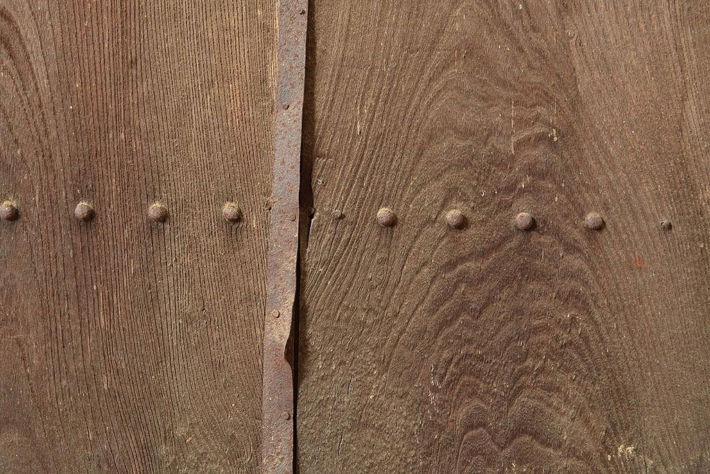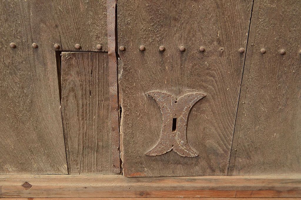 整然と並ぶ縦桟と錆びた金具は目を引き、