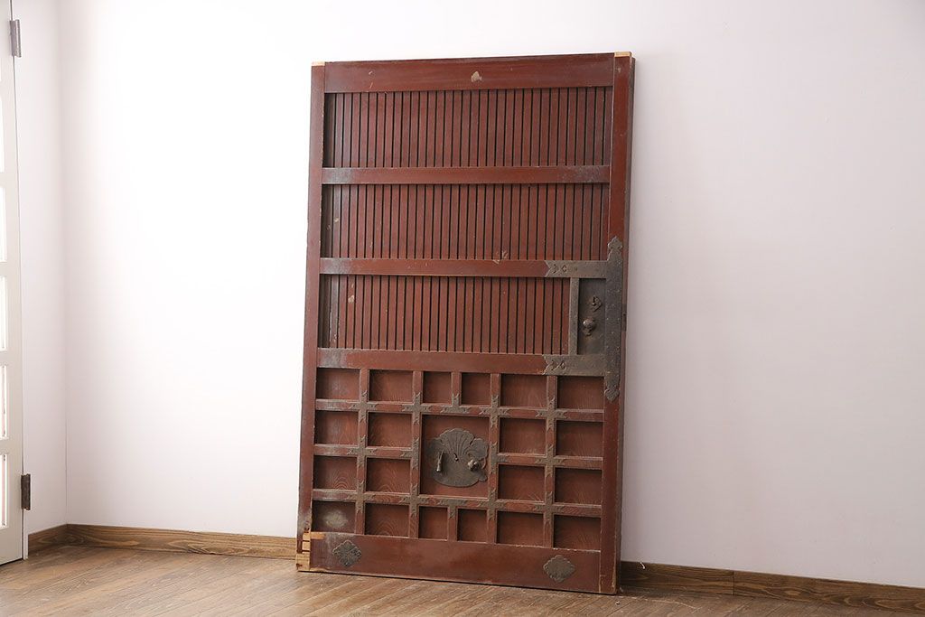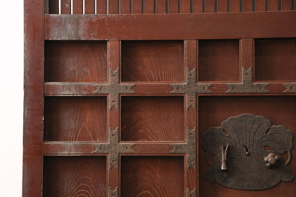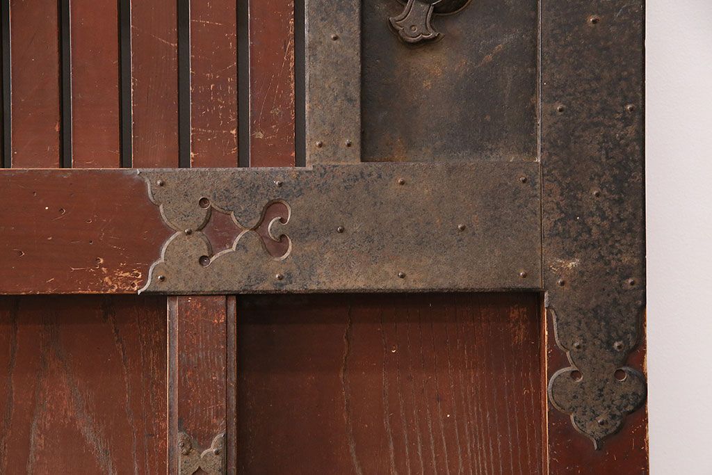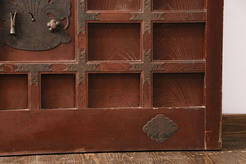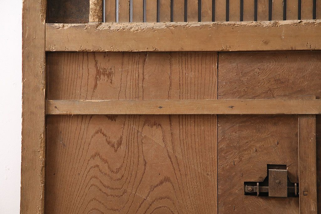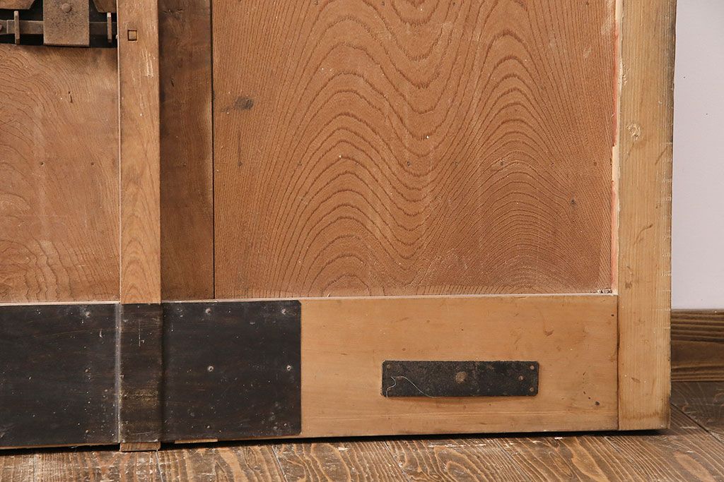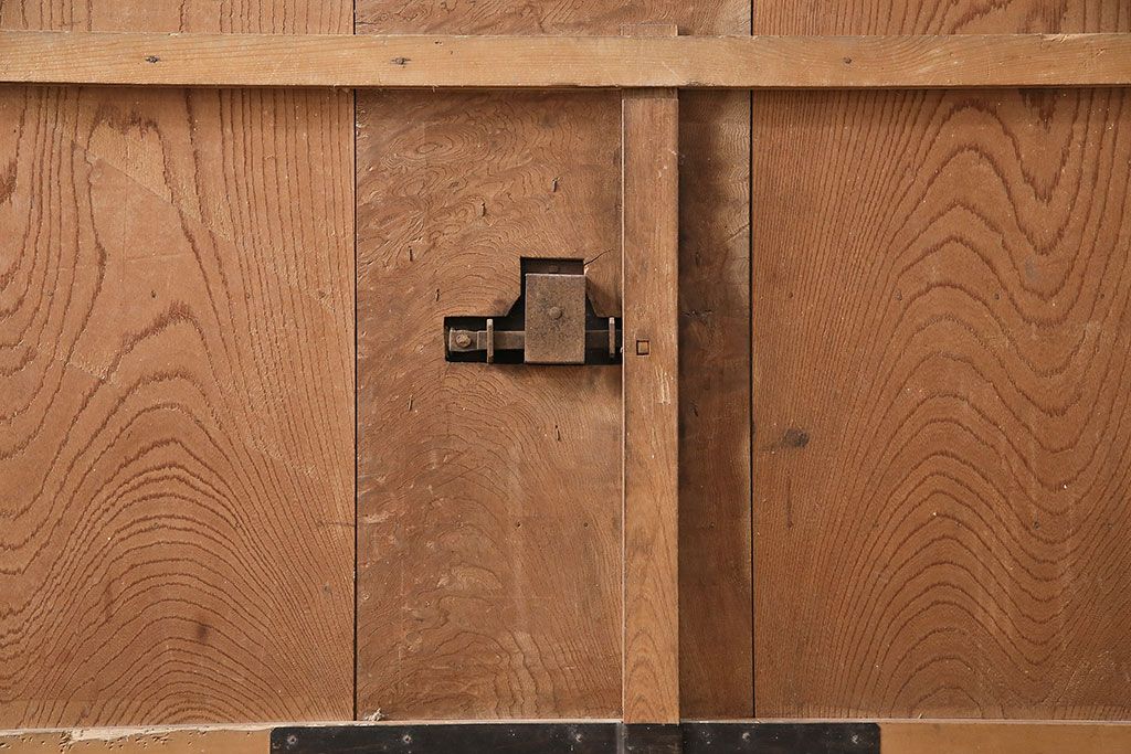 ドア・建具> 蔵戸 > アンティーク建具 石川県産 ヒノキ材・腰板ケヤキ材 巾着金具付き!高級感と品が漂う蔵戸(引き戸、玄関戸)(R-048586)