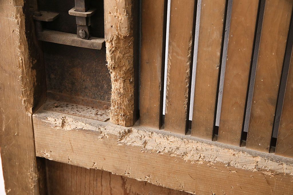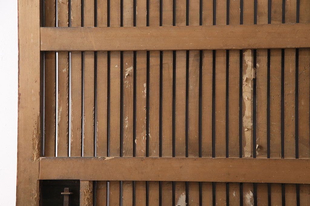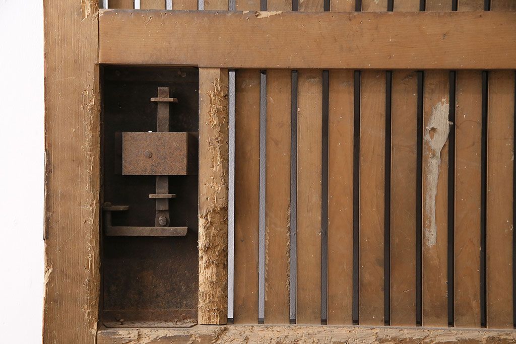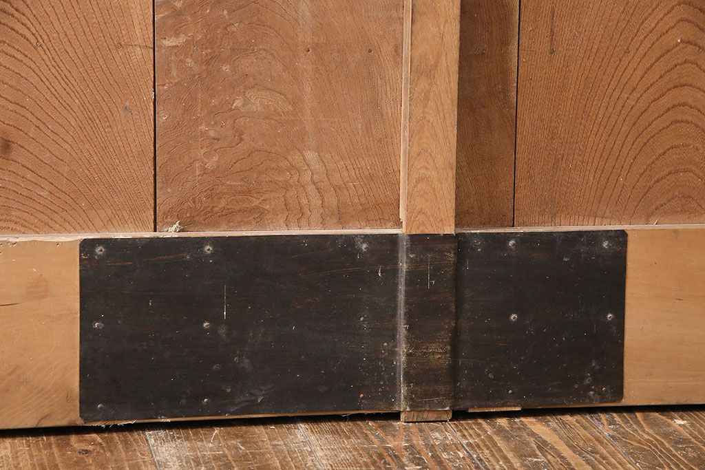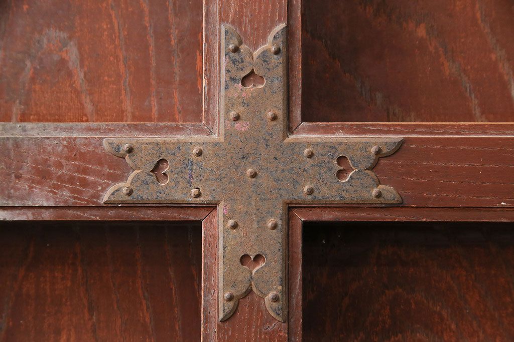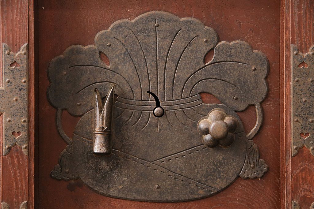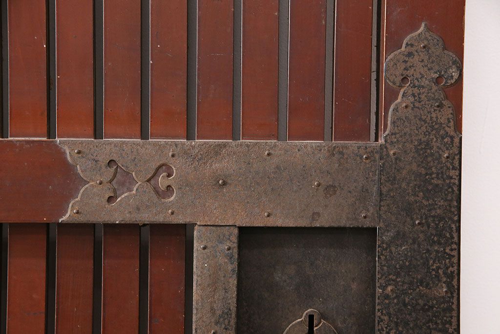 ドア・建具> 蔵戸 > アンティーク建具 石川県産 ヒノキ材・腰板ケヤキ材 巾着金具付き!高級感と品が漂う蔵戸(引き戸、玄関戸)(R-048586)