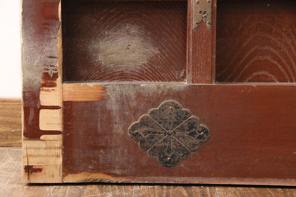 ドア・建具> 玄関ドア・玄関戸 > アンティーク建具 石川県産 ヒノキ材・腰板ケヤキ材 巾着金具付き!高級感と品が漂う蔵戸(引き戸、玄関戸)(R-048586)