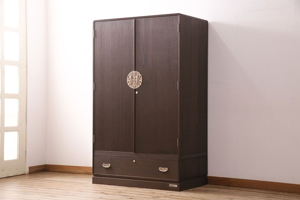 ワードローブ・ロッカー> ワードローブ > 中古 村田家具オリジナル かくし付き 気品を漂わせる国産の総桐箪笥(並厚、桐たんす)(ワードローブ、衣装箪笥、和タンス、桐たんす)(R-049017)