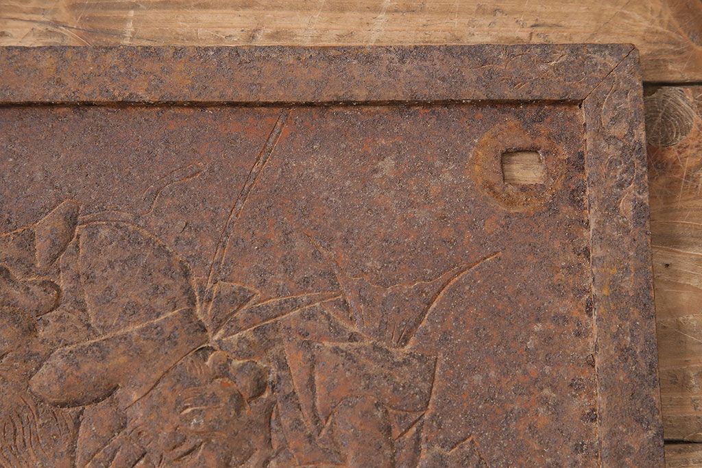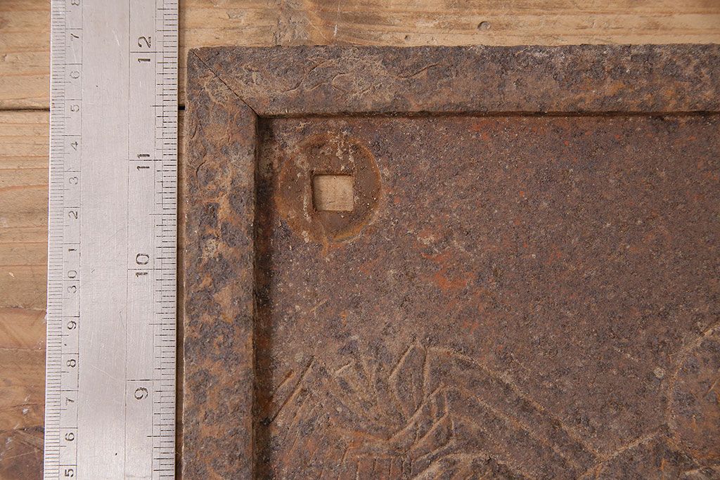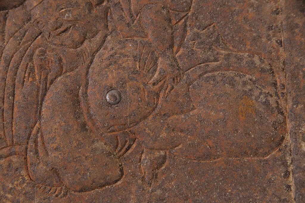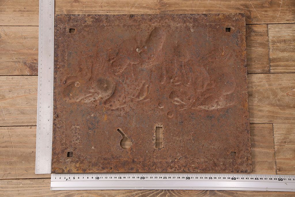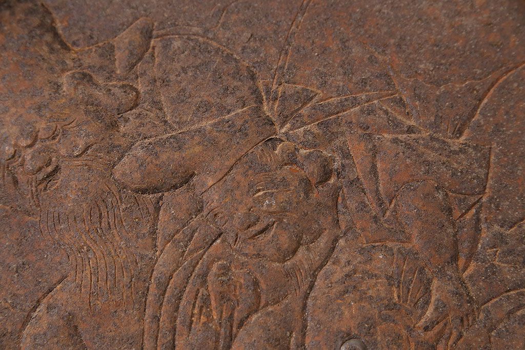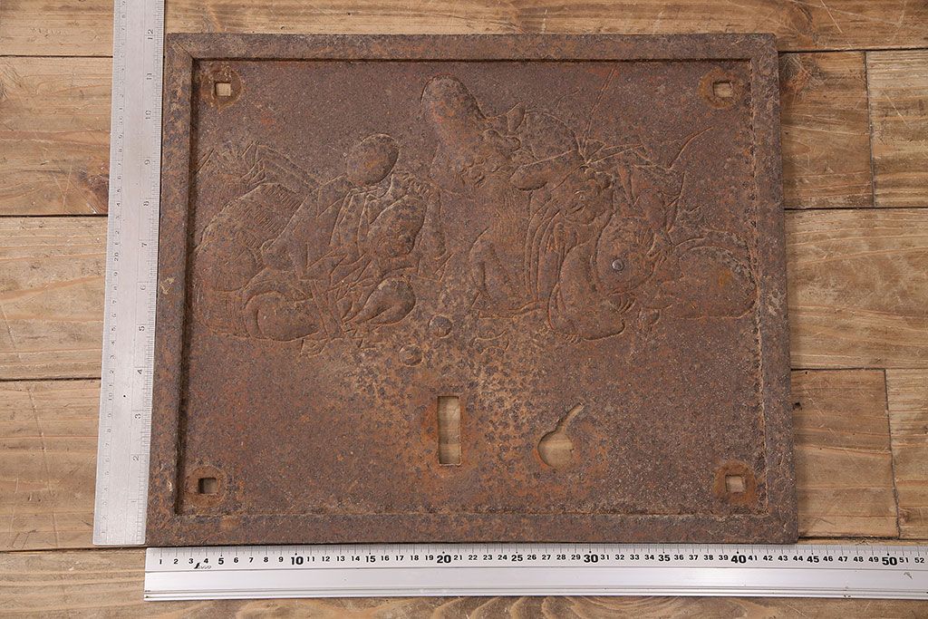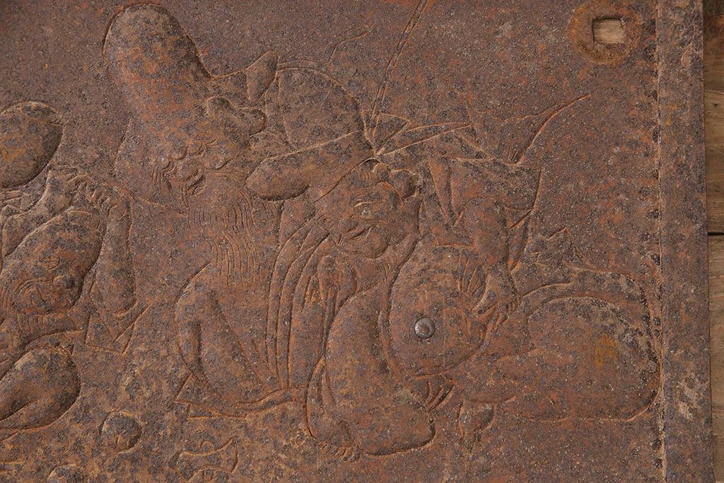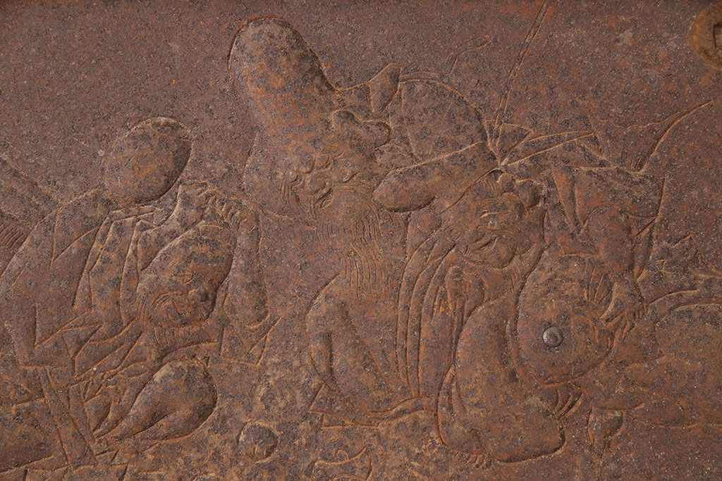 アンティーク雑貨 大黒天・福禄寿・恵比寿 福を呼び込む神様が印象的な蔵戸の飾り金具(ディスプレイ雑貨、蔵戸パーツ)(R-047654)