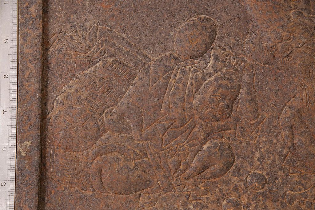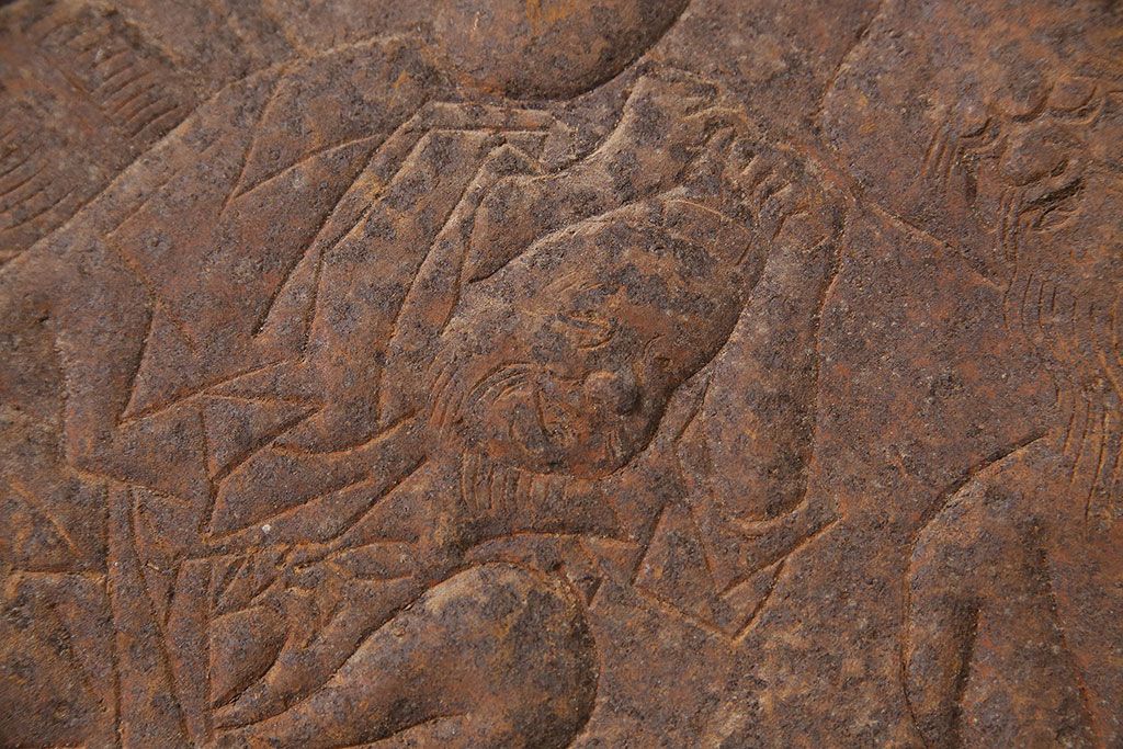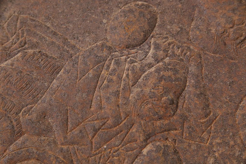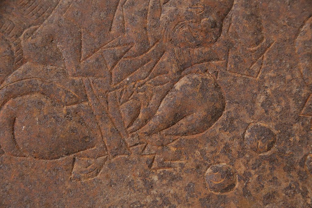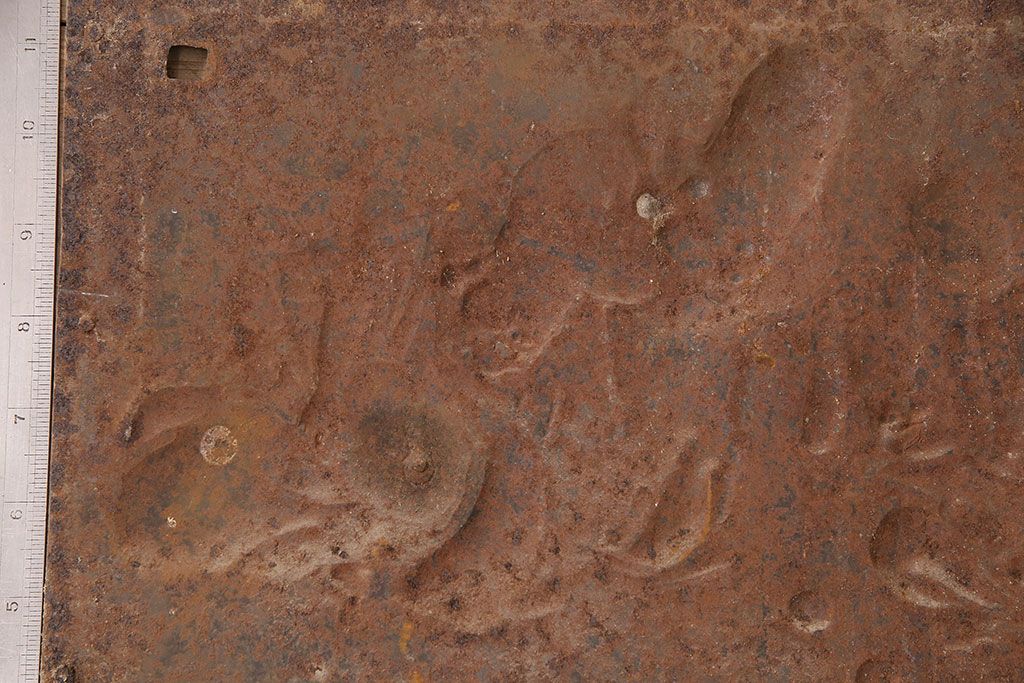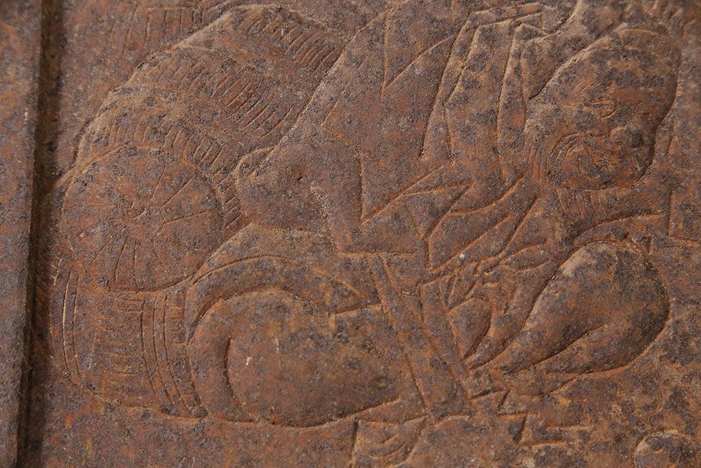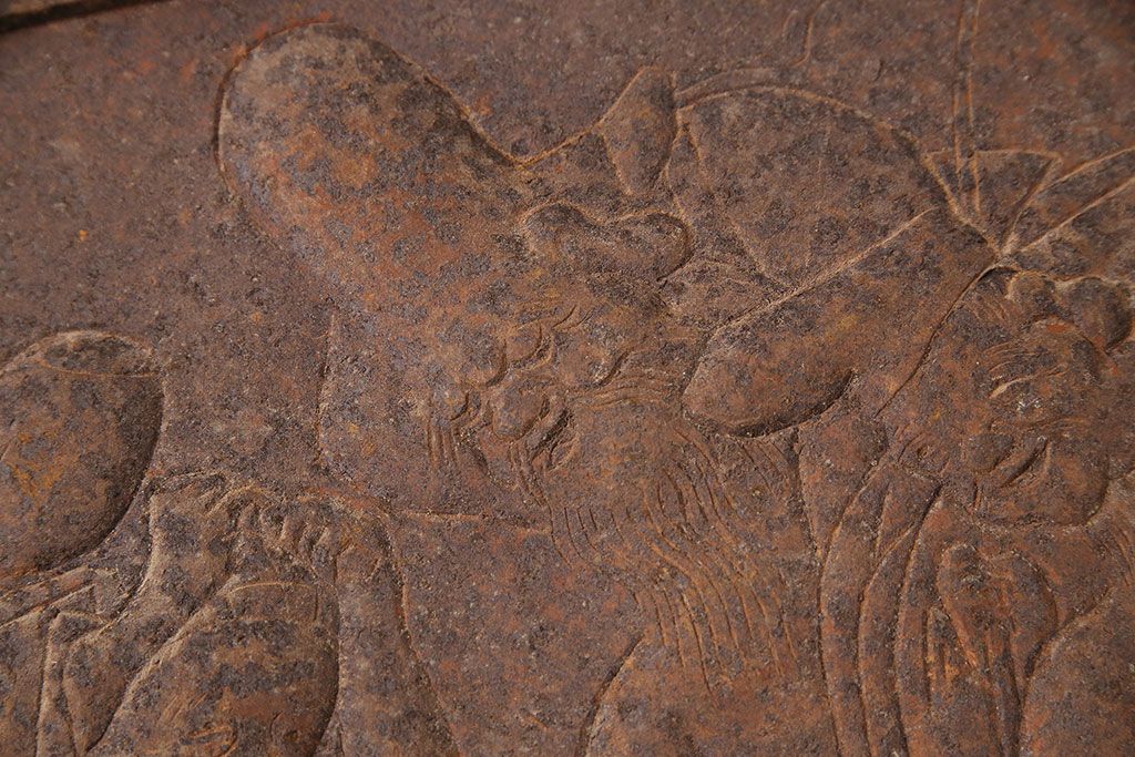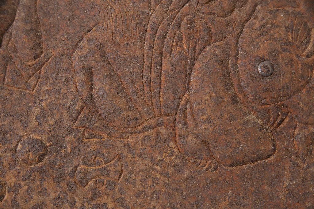 アンティーク雑貨 大黒天・福禄寿・恵比寿 福を呼び込む神様が印象的な蔵戸の飾り金具(ディスプレイ雑貨、蔵戸パーツ)(R-047654)