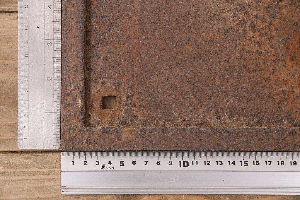 ラフジュ工房> パーツ> 古金具 > アンティーク雑貨 大黒天・福禄寿・恵比寿 福を呼び込む神様が印象的な蔵戸の飾り金具(ディスプレイ雑貨、蔵戸パーツ)(R-047654)