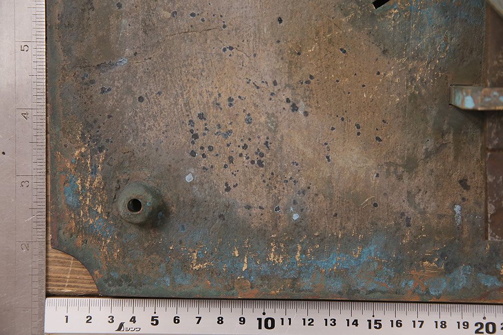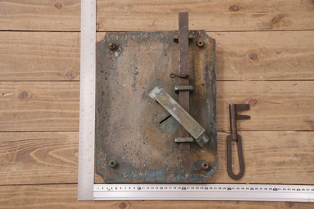 ラフジュ工房> パーツ> 古金具 > アンティーク雑貨 鶴と亀 銅ならではの風合いが魅力的な蔵戸の錠前金具(ディスプレイ雑貨、蔵戸パーツ)(R-048759)
