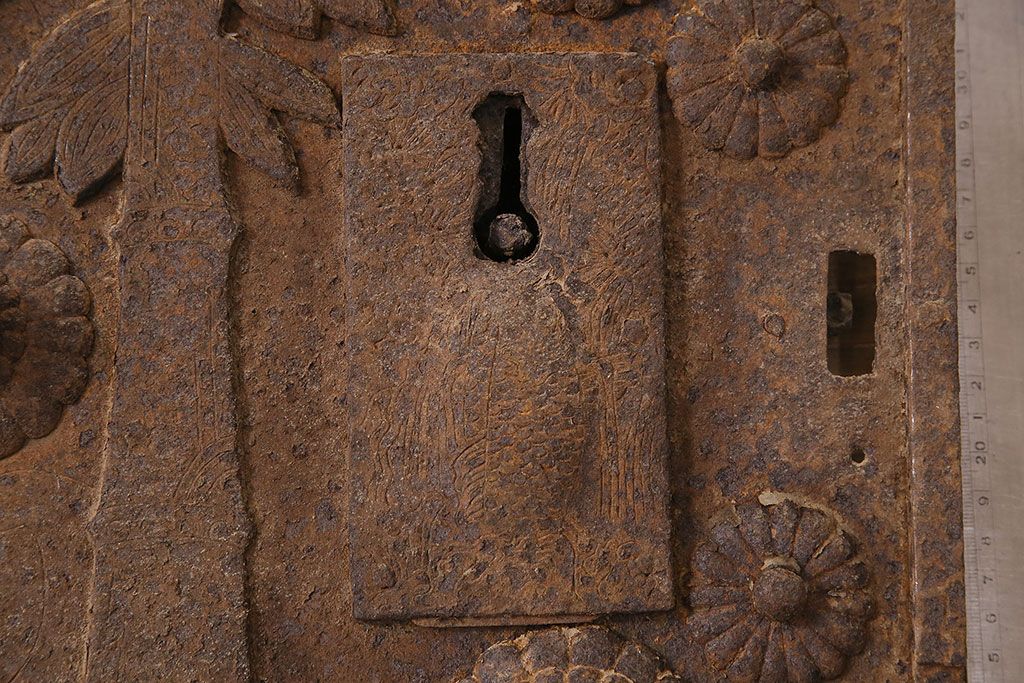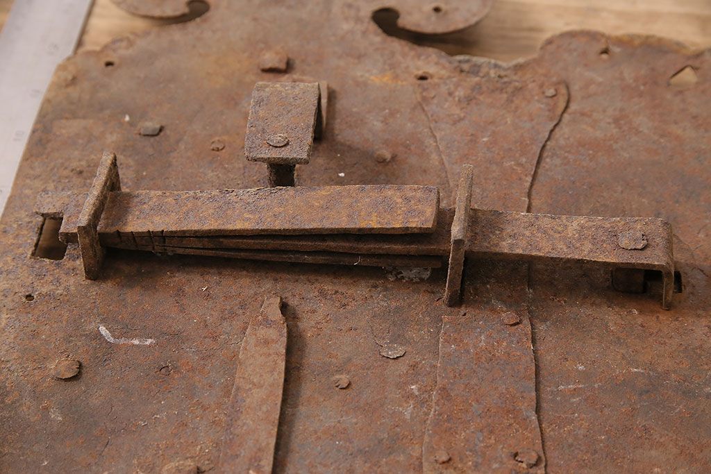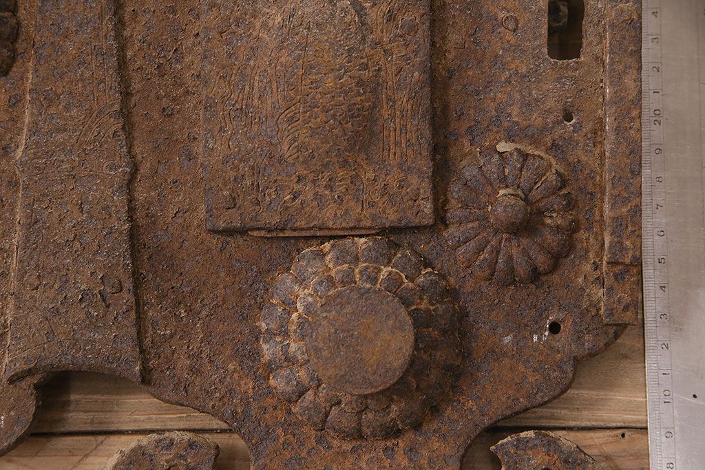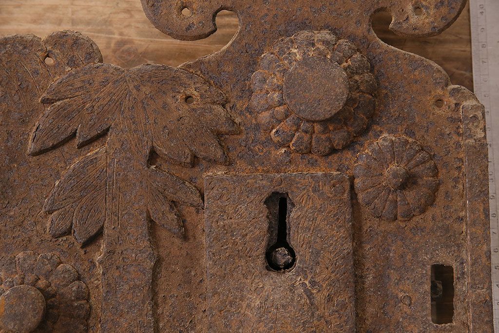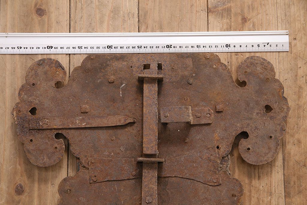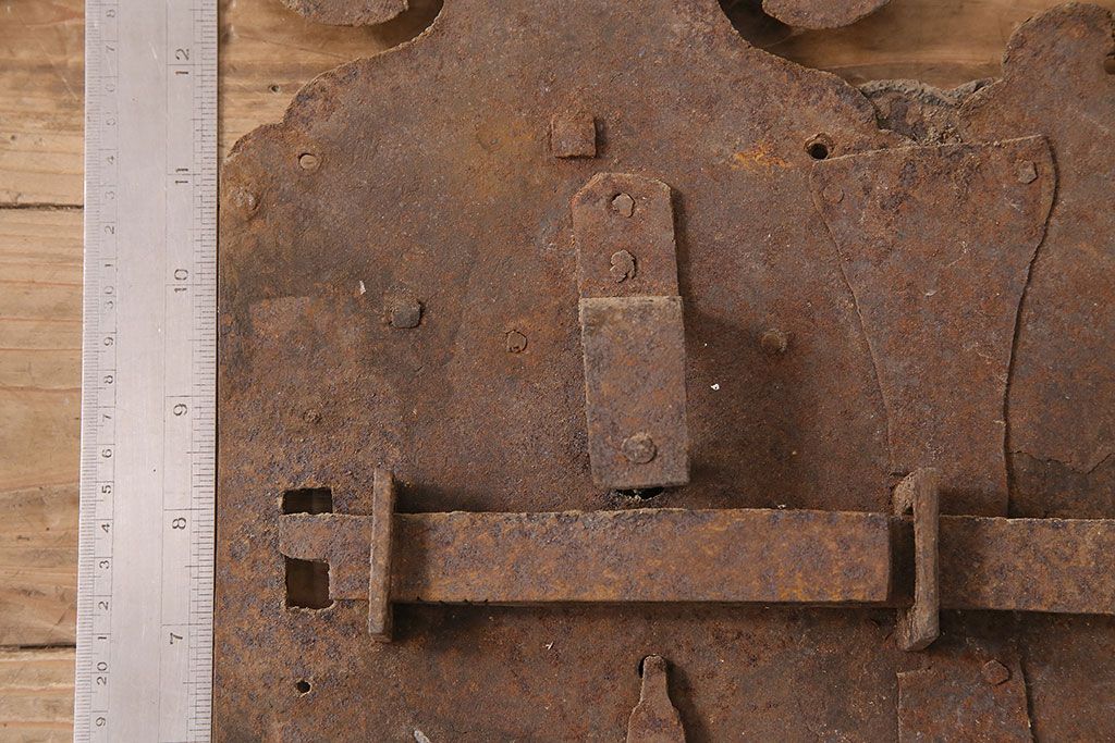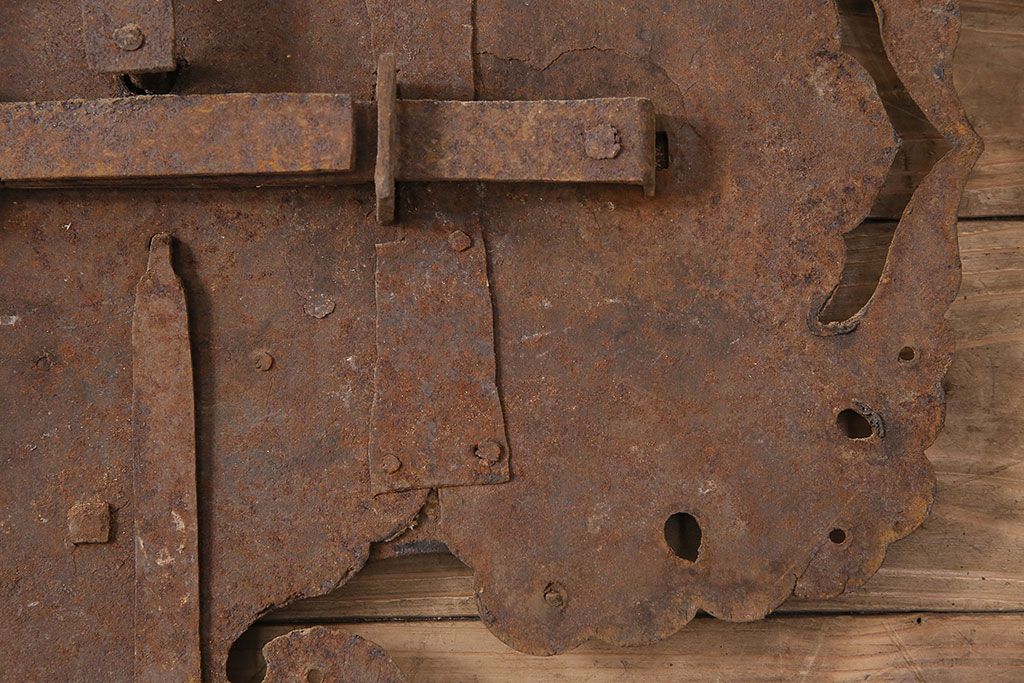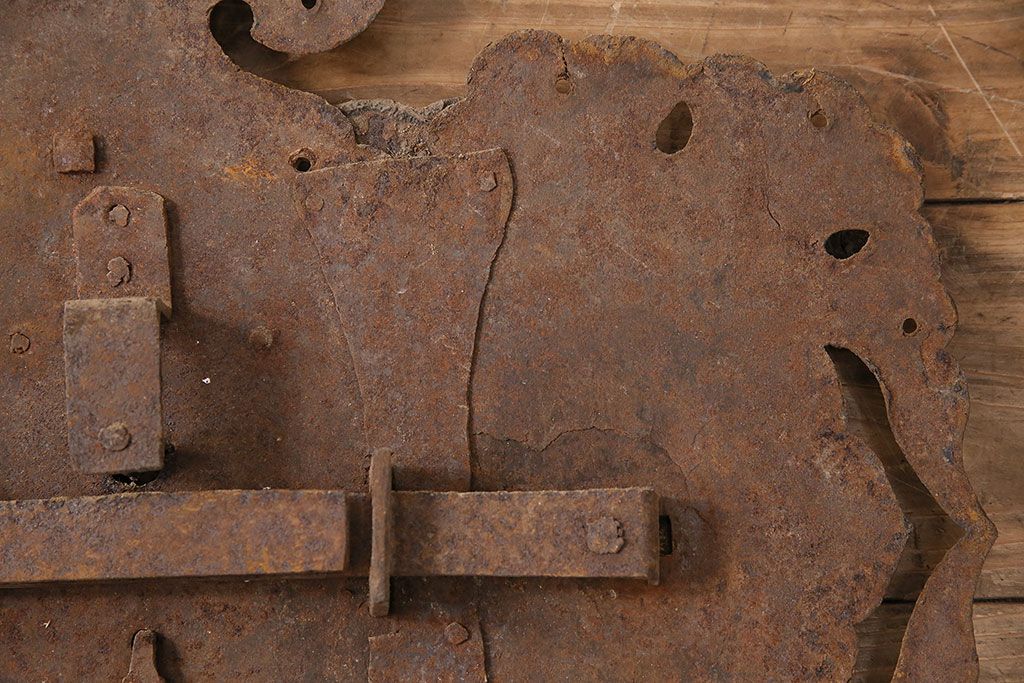 アンティーク雑貨 古く錆びた風合いが良い味を醸し出す蔵戸の錠前金具(ディスプレイ雑貨、蔵戸パーツ)(R-047660)