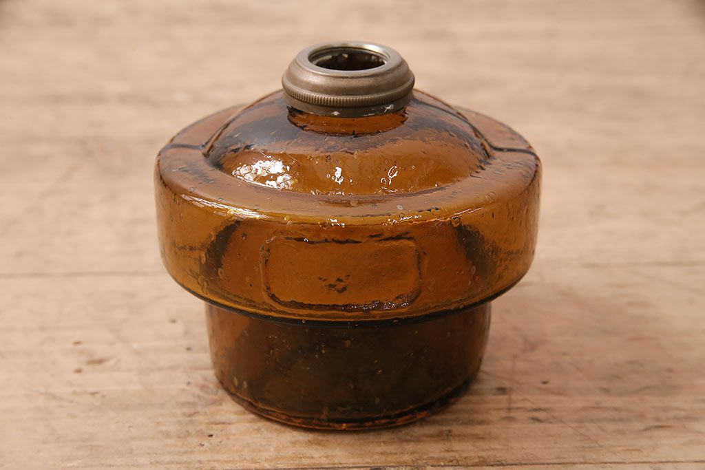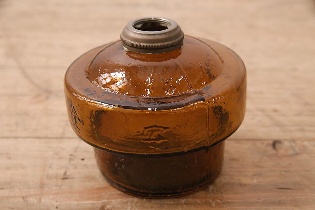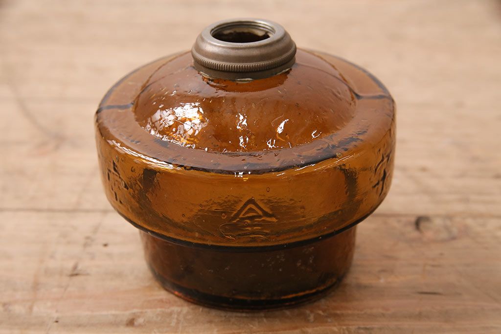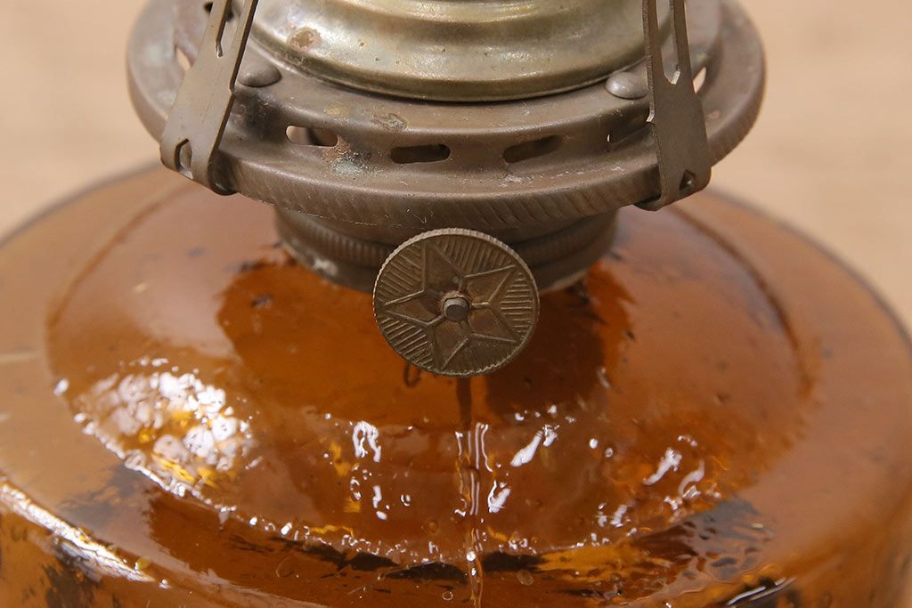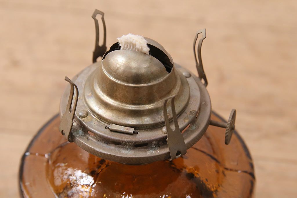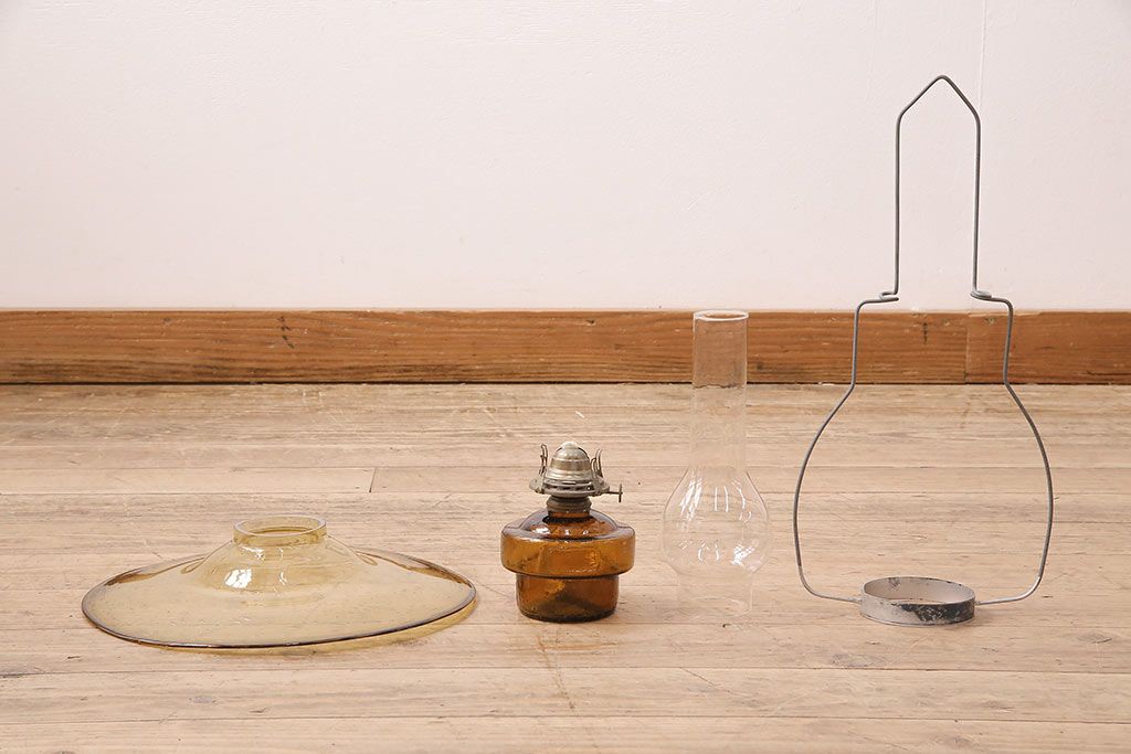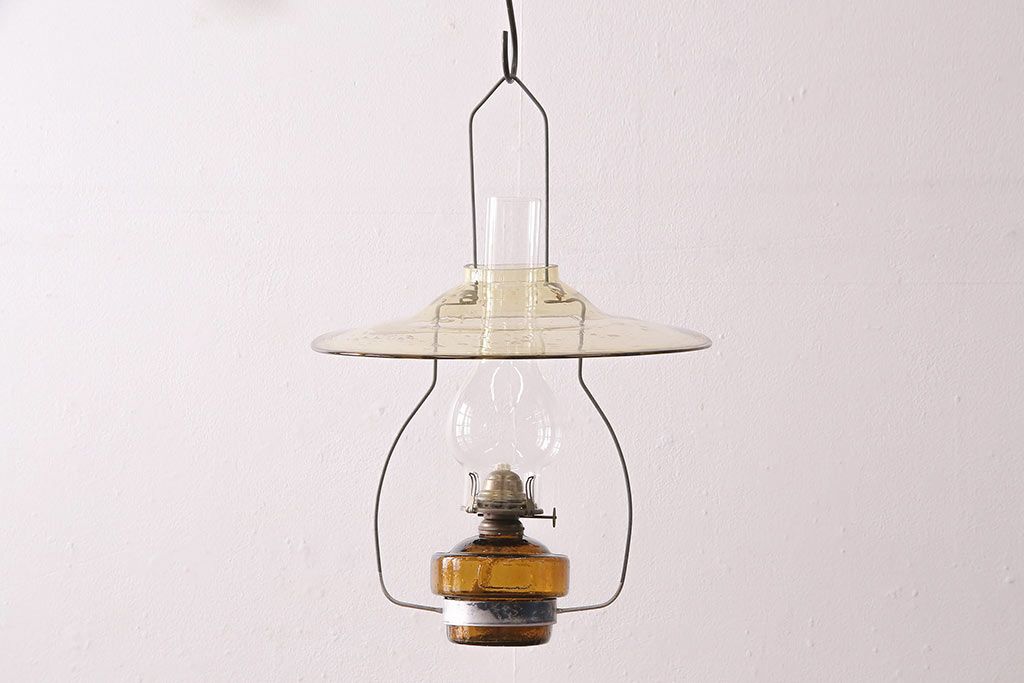 昭和レトロ 色ガラスがレトロな雰囲気を高めるビンテージオイルランプ(石油ランプ、洋燈、吊り下げランプ)(R-048727)です。