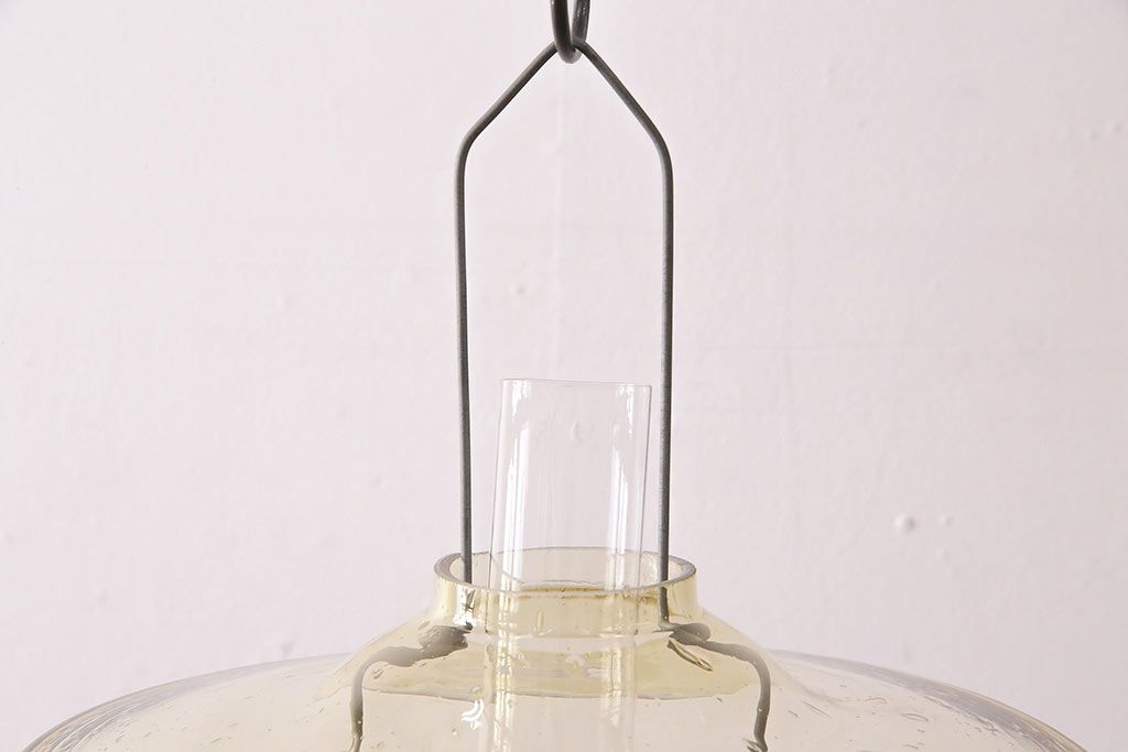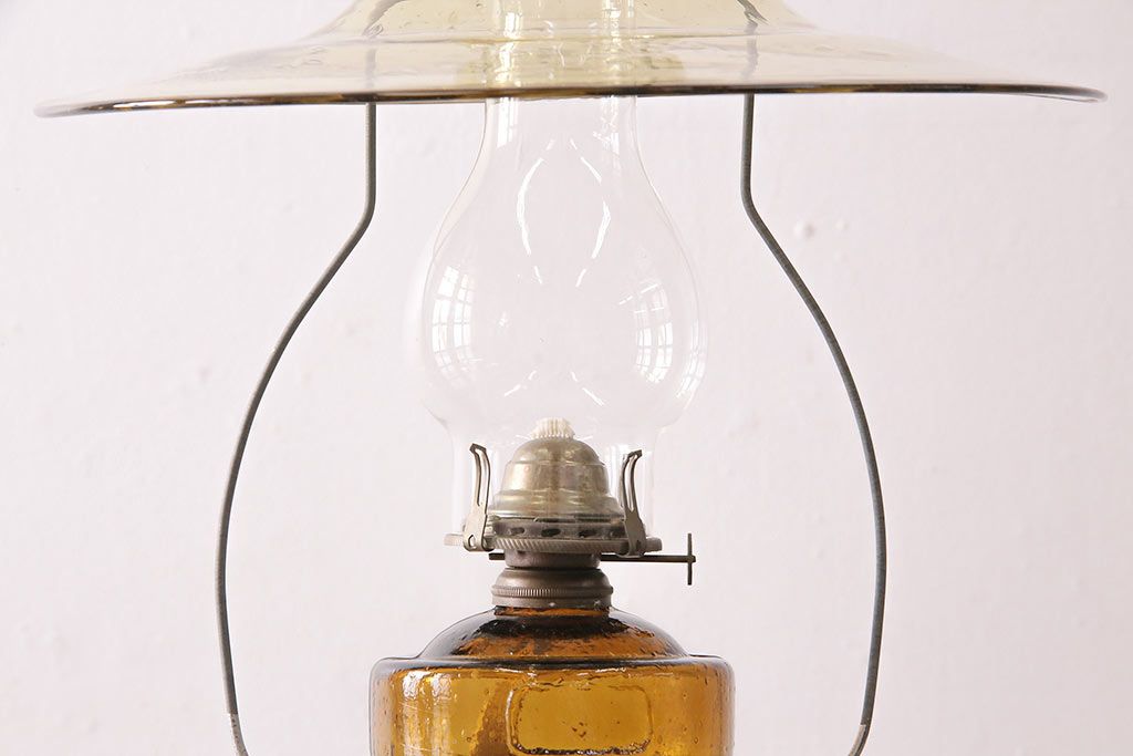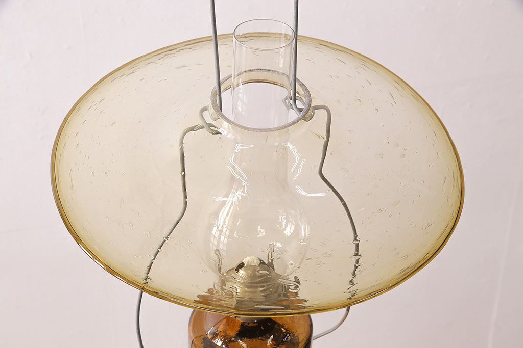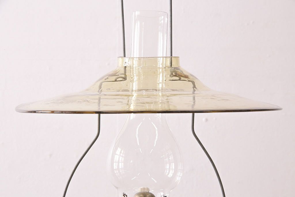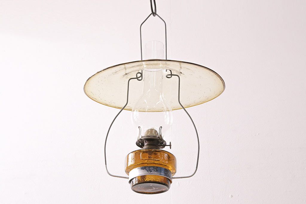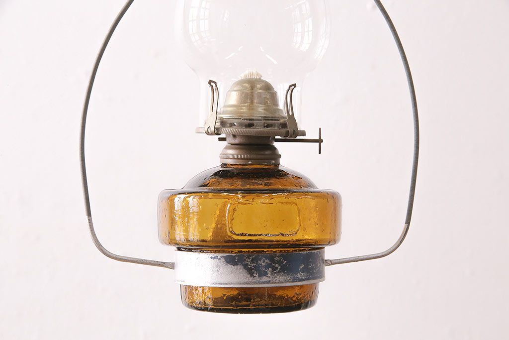 昭和レトロ 色ガラスがレトロな雰囲気を高めるビンテージオイルランプ(石油ランプ、洋燈、吊り下げランプ)(R-048727)