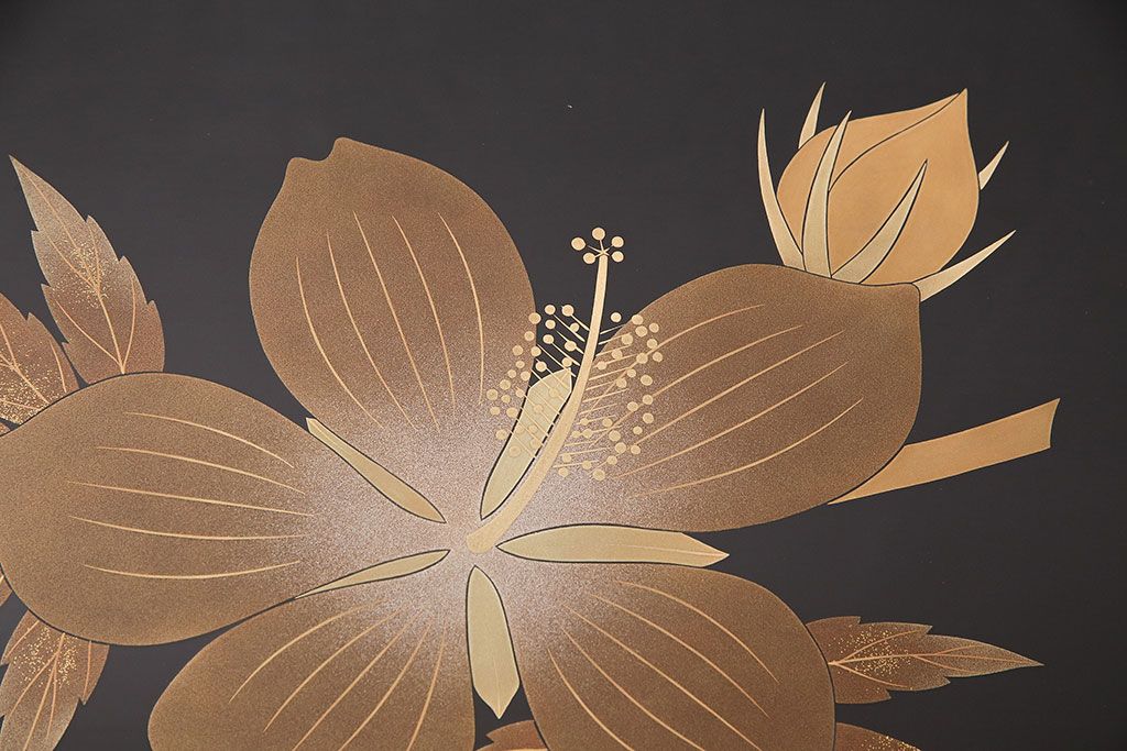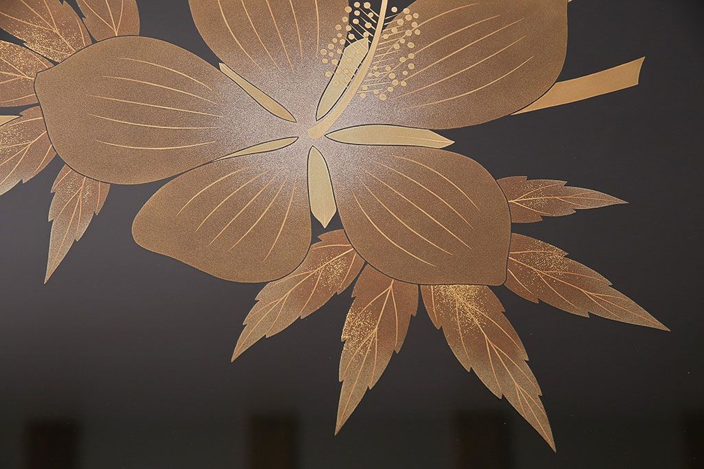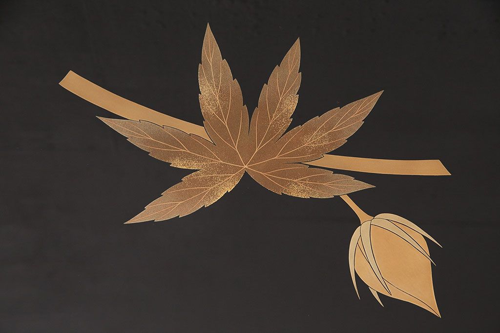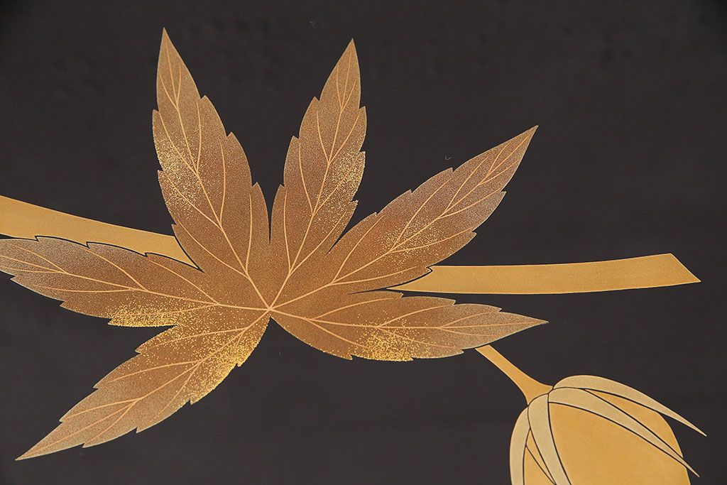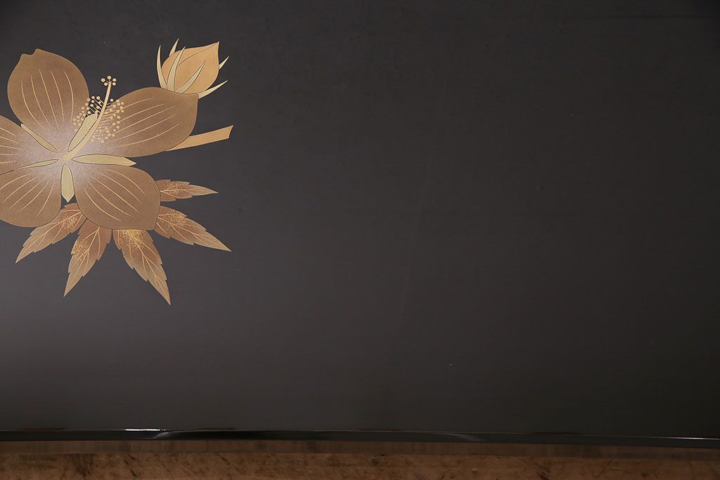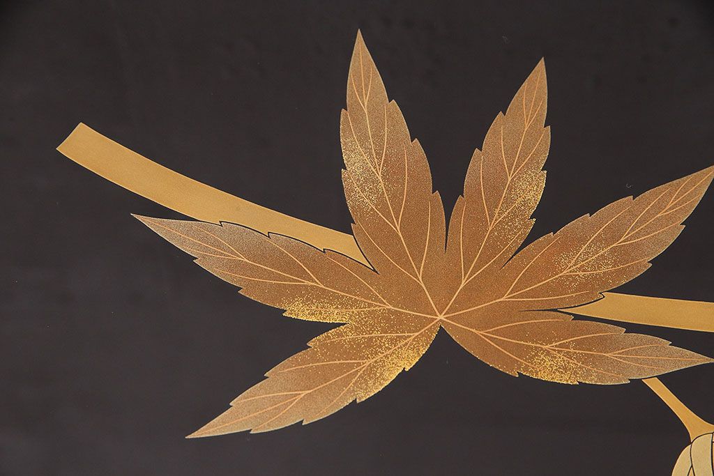 民芸家具 > 中古 輪島塗 加賀蒔絵 井波唯志作 上品な佇まいが魅力的なガラス天板付きの金蒔絵座卓(ローテーブル)(定価約350万円)(R-048385)